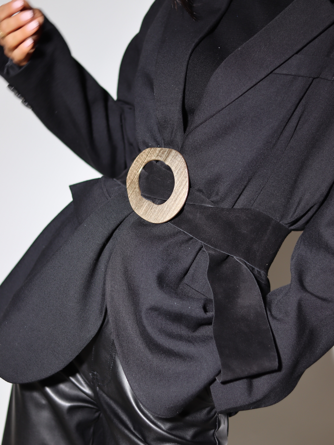 Melna zamšādas josta ar masīvu zelta krāsas sprādzi – 13689