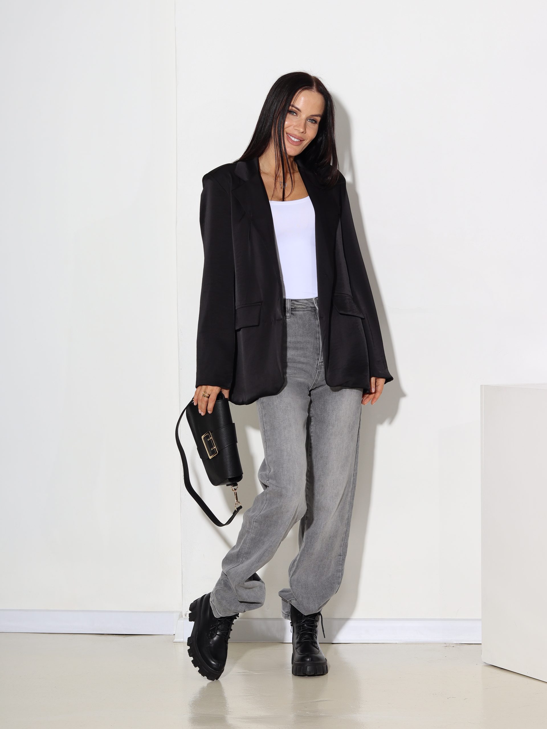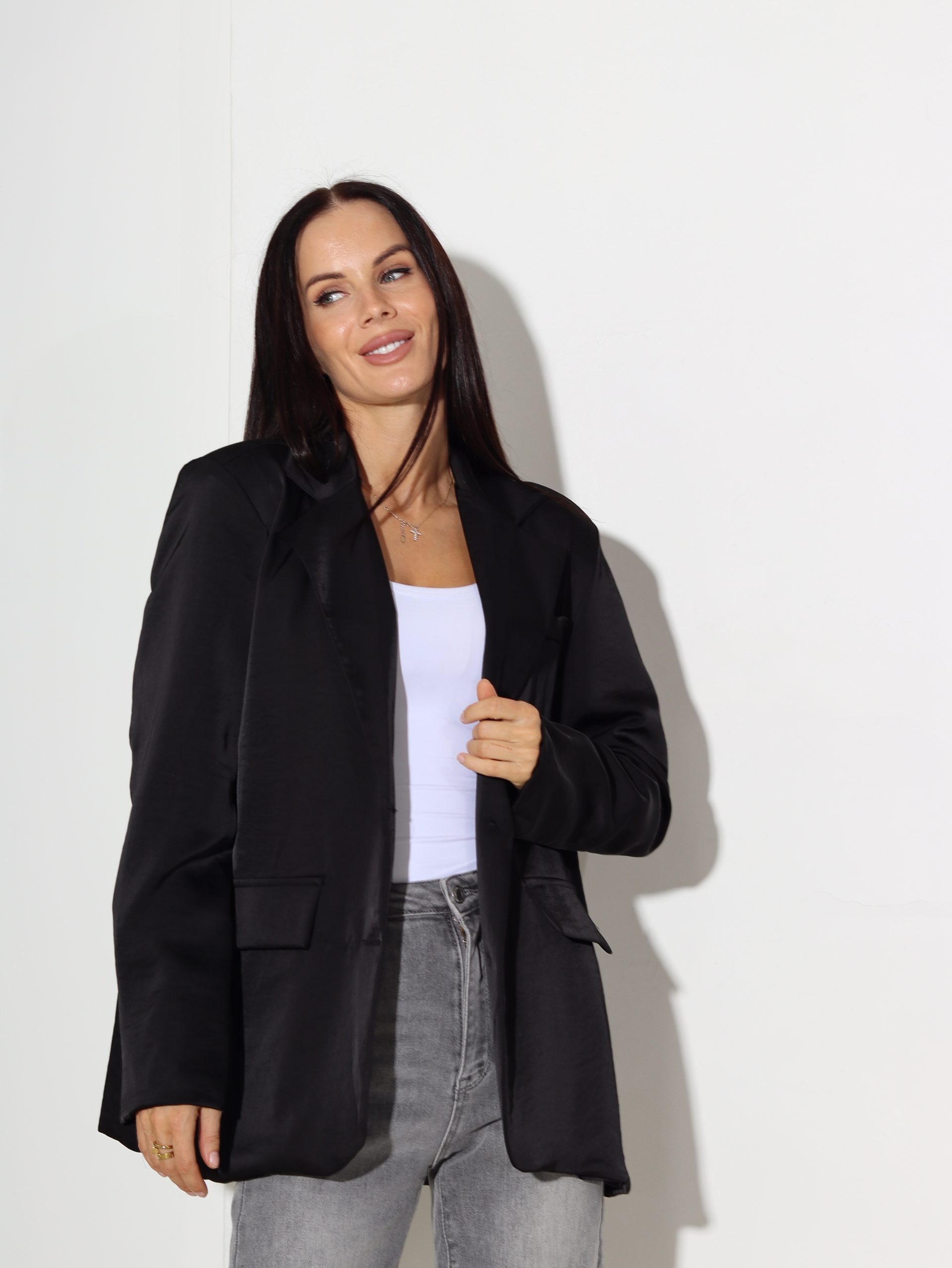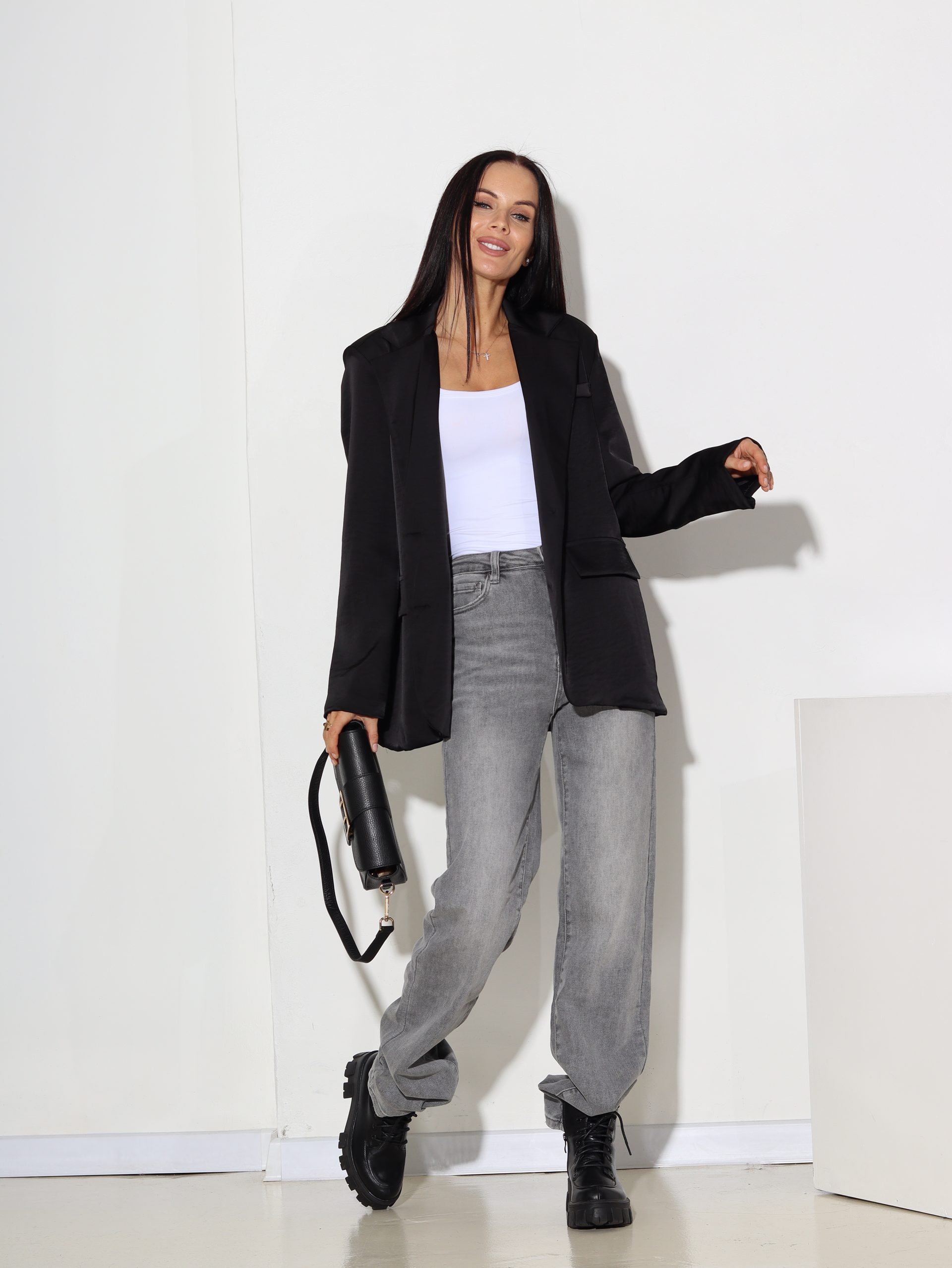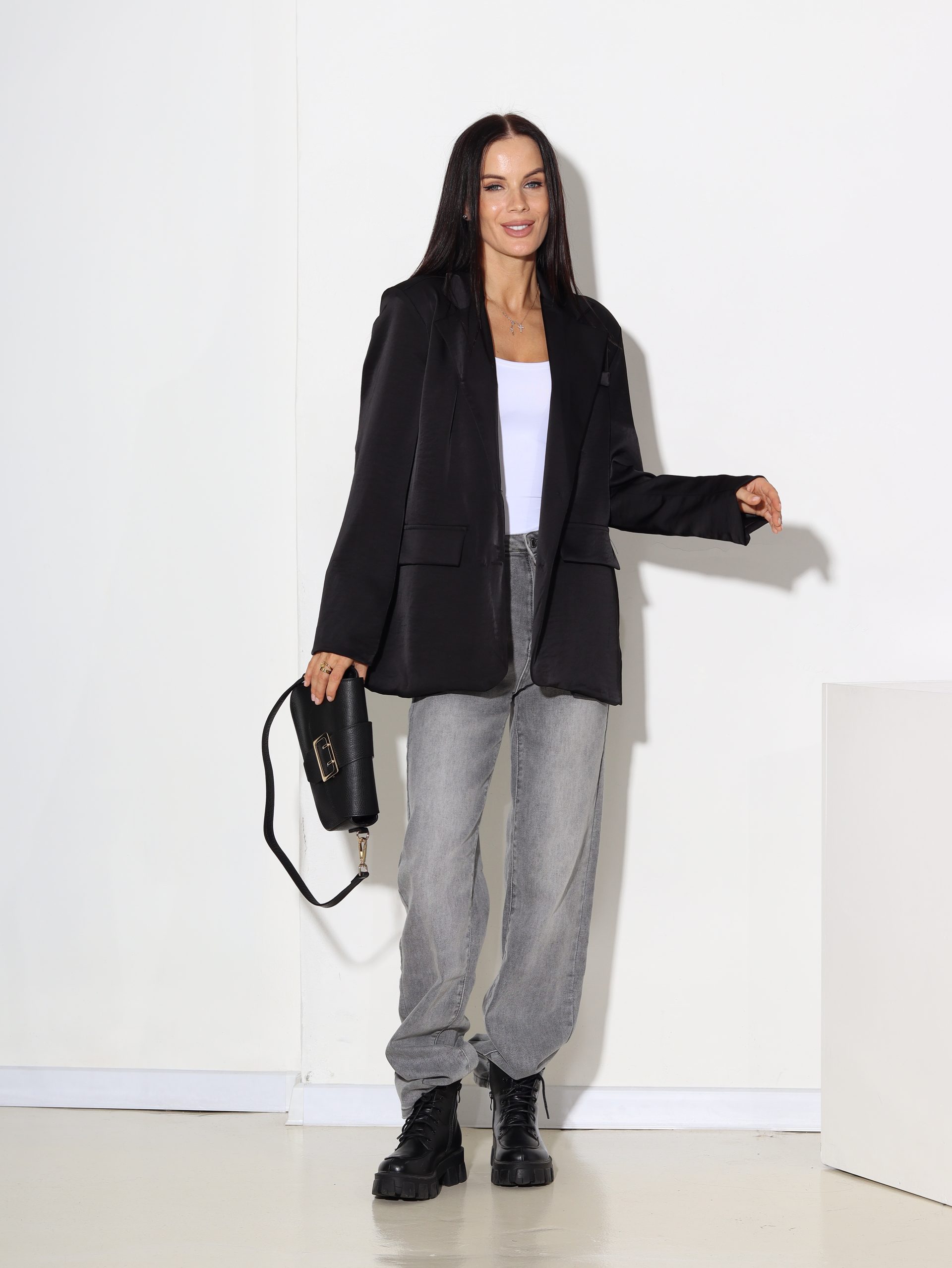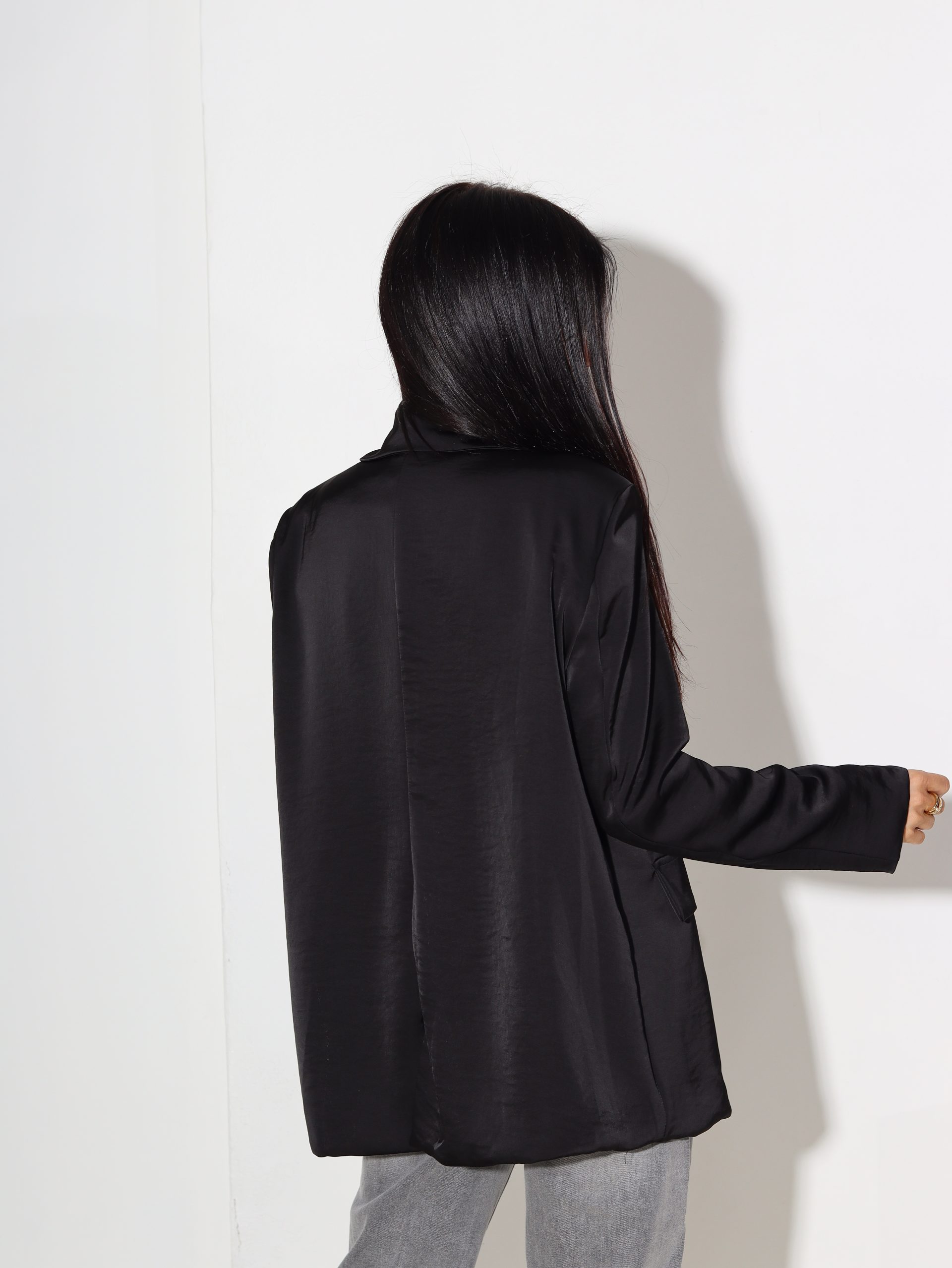 Melna zīdīga auduma žakete ar 2 pogu aizdari – 16410