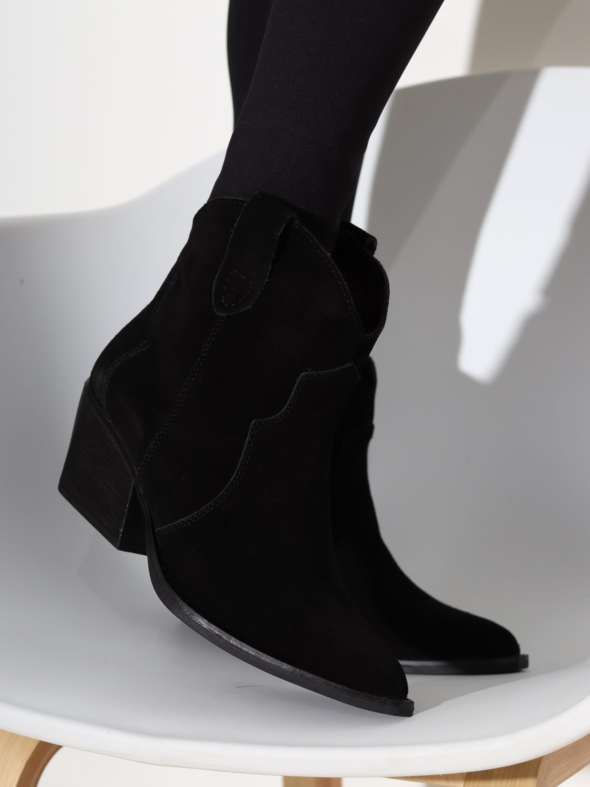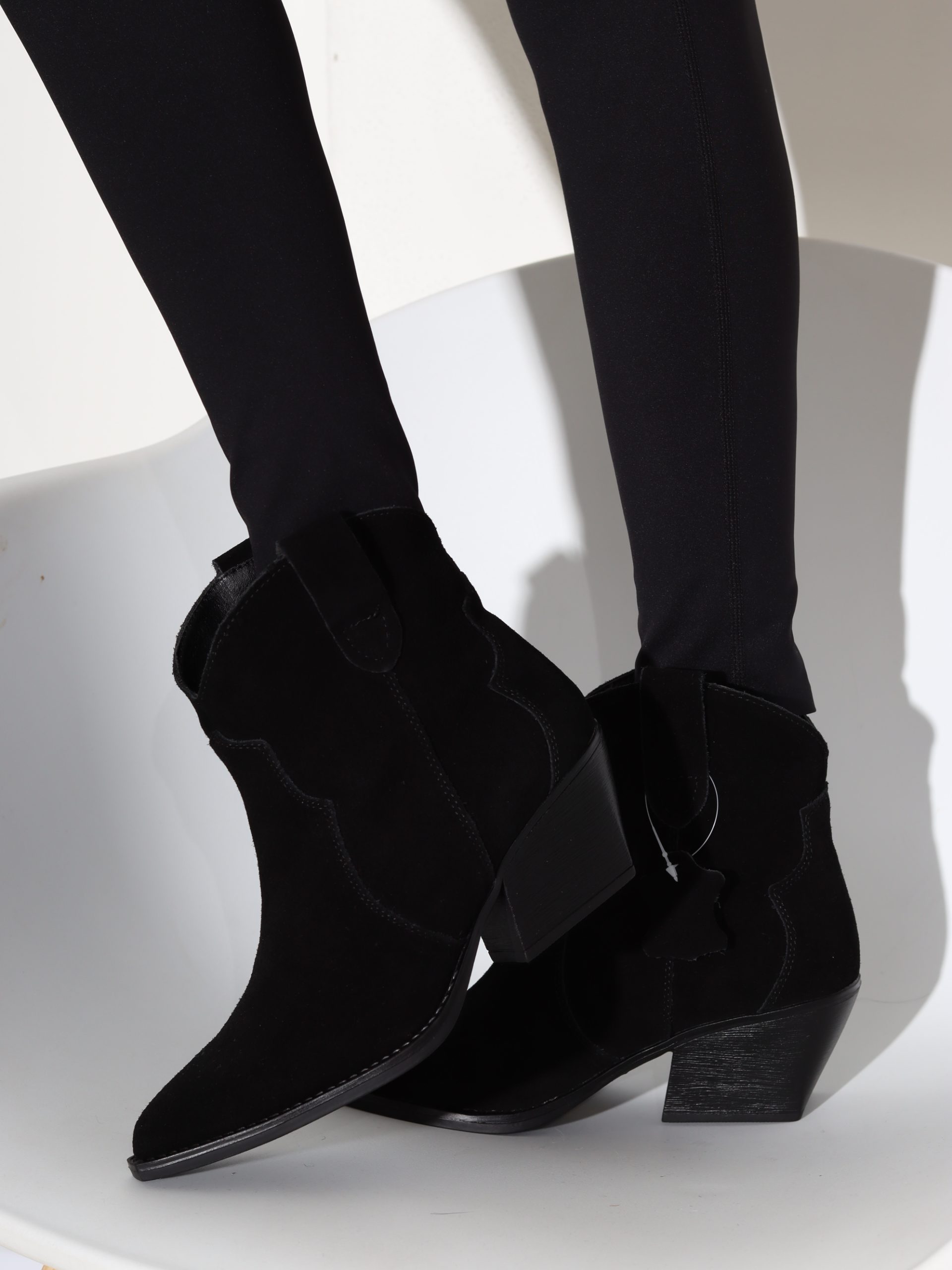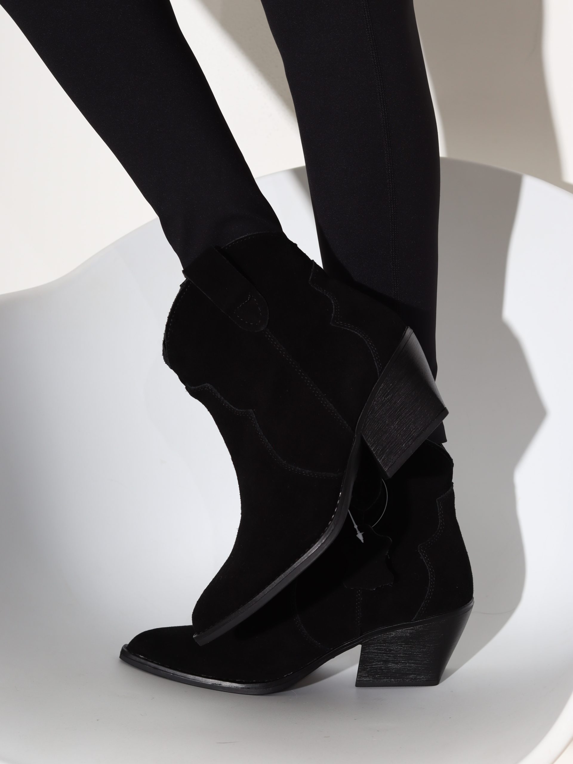 Melni, īsa garuma, kovboja tipa zābaki, d/zamšāda – 17435