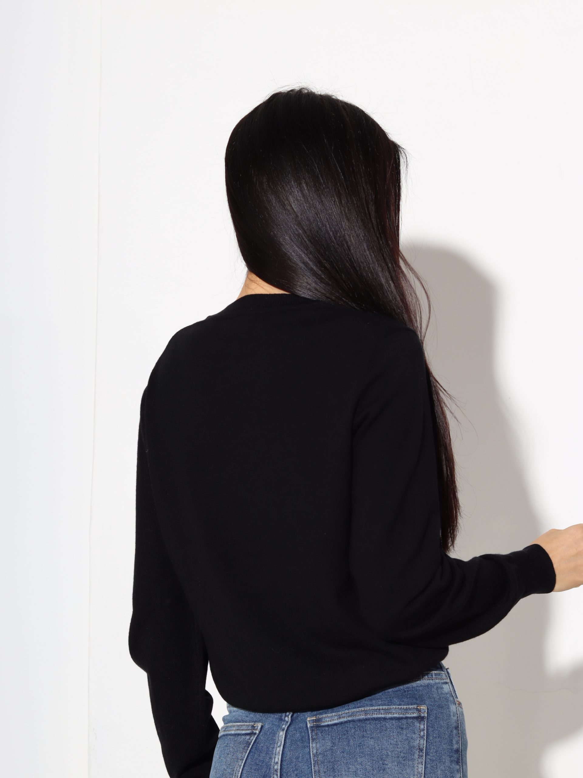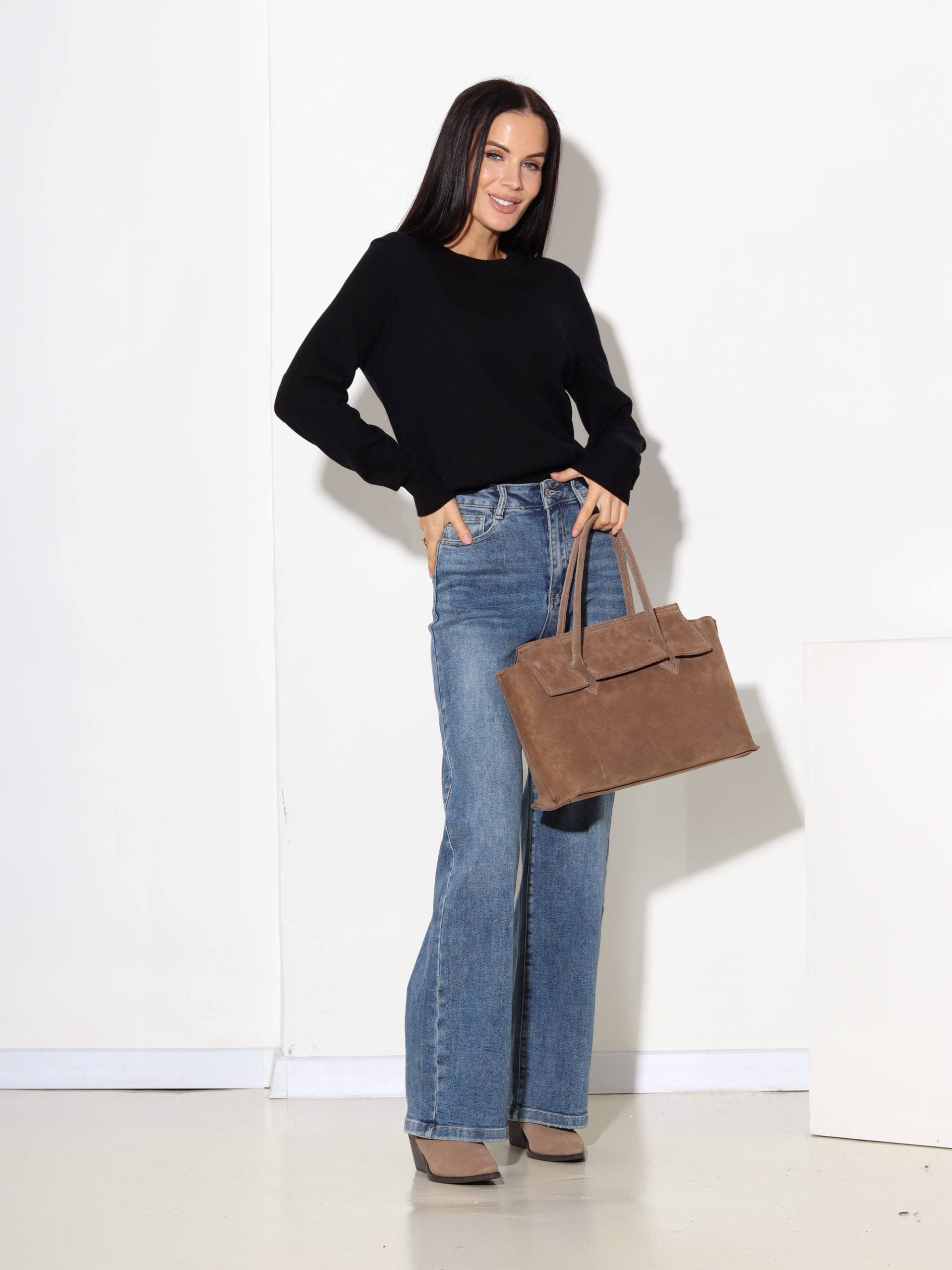 Smalka adījuma “Basic” džemperis ar noapaļotu kakla daļu.