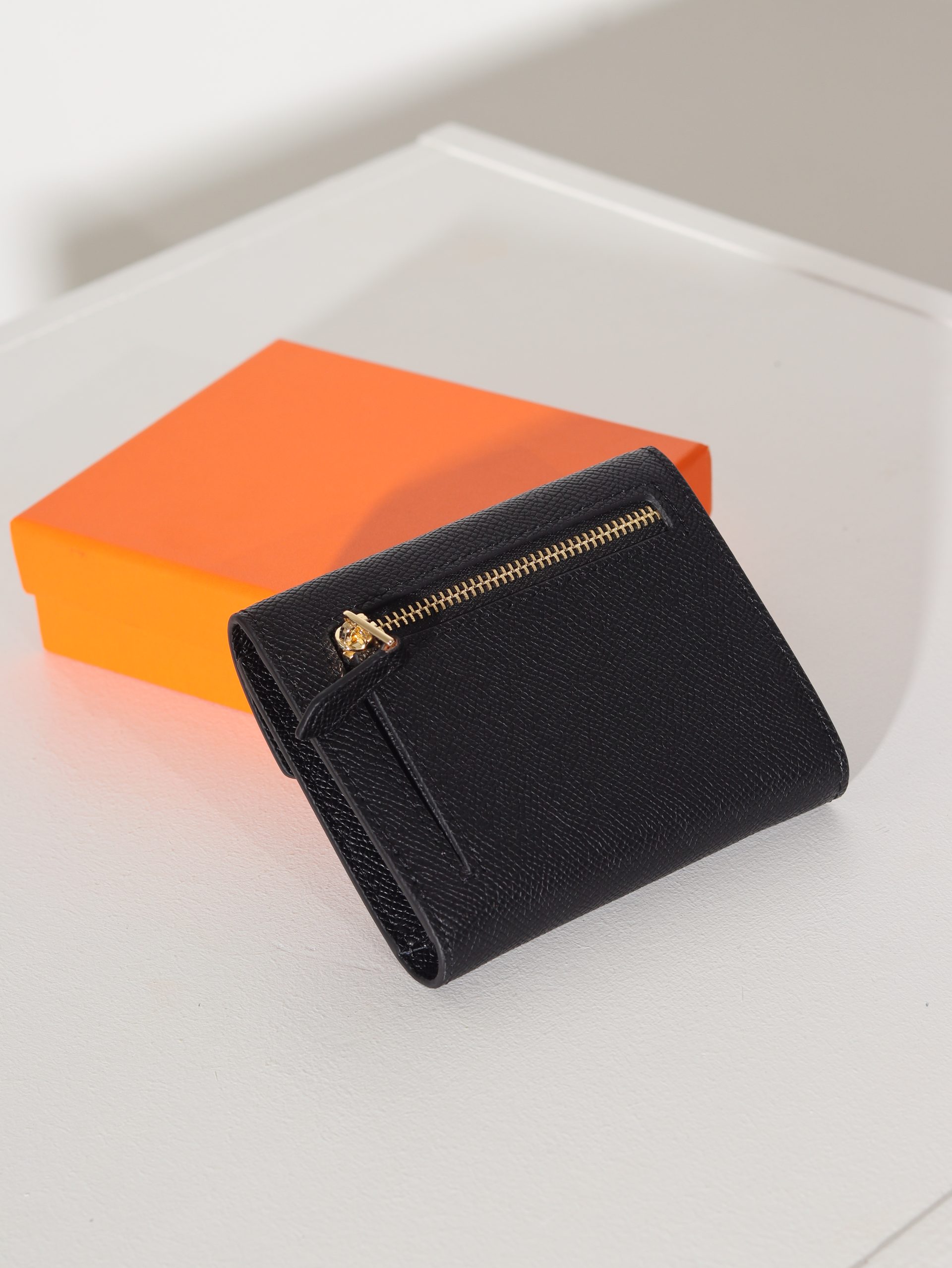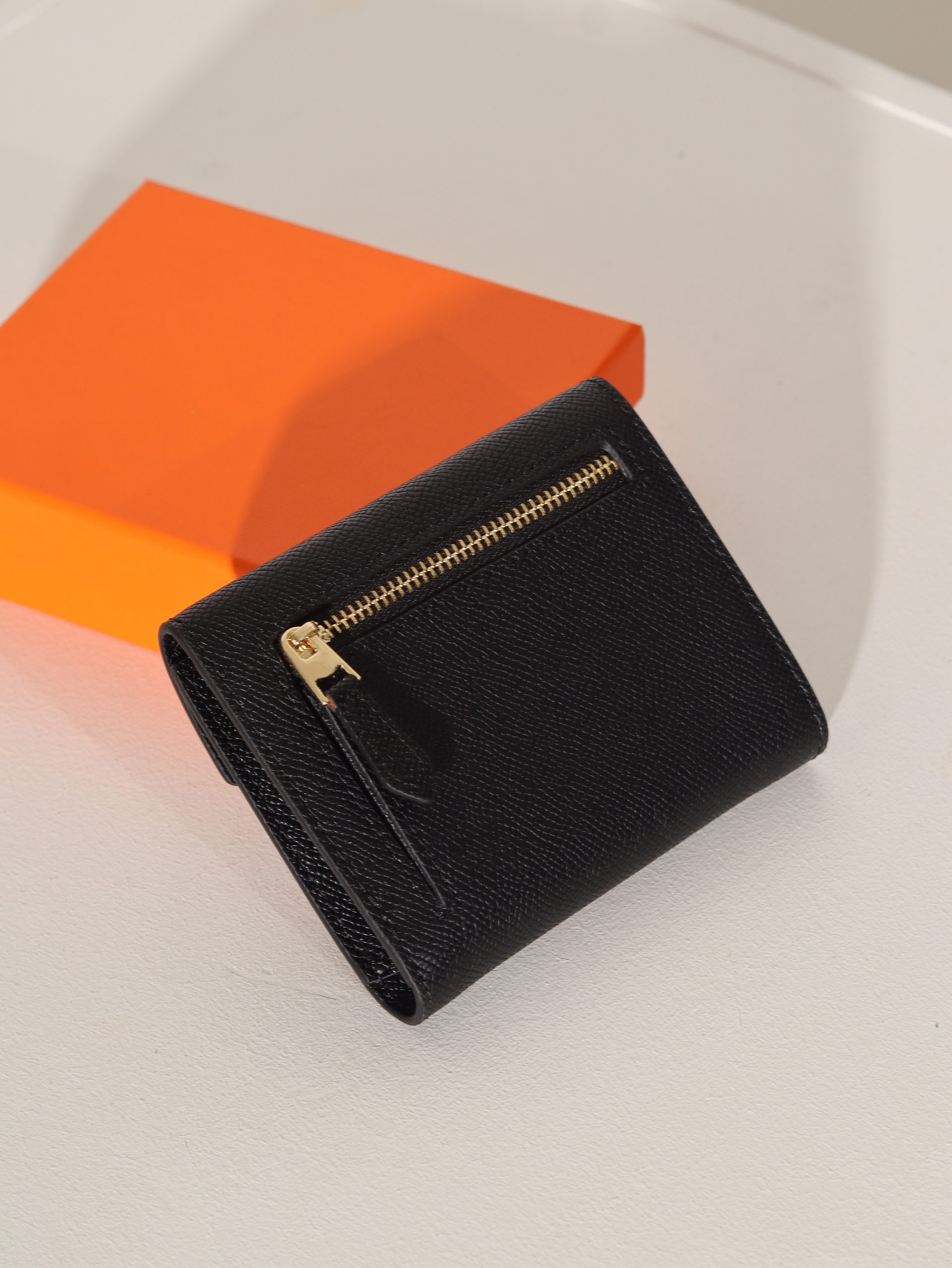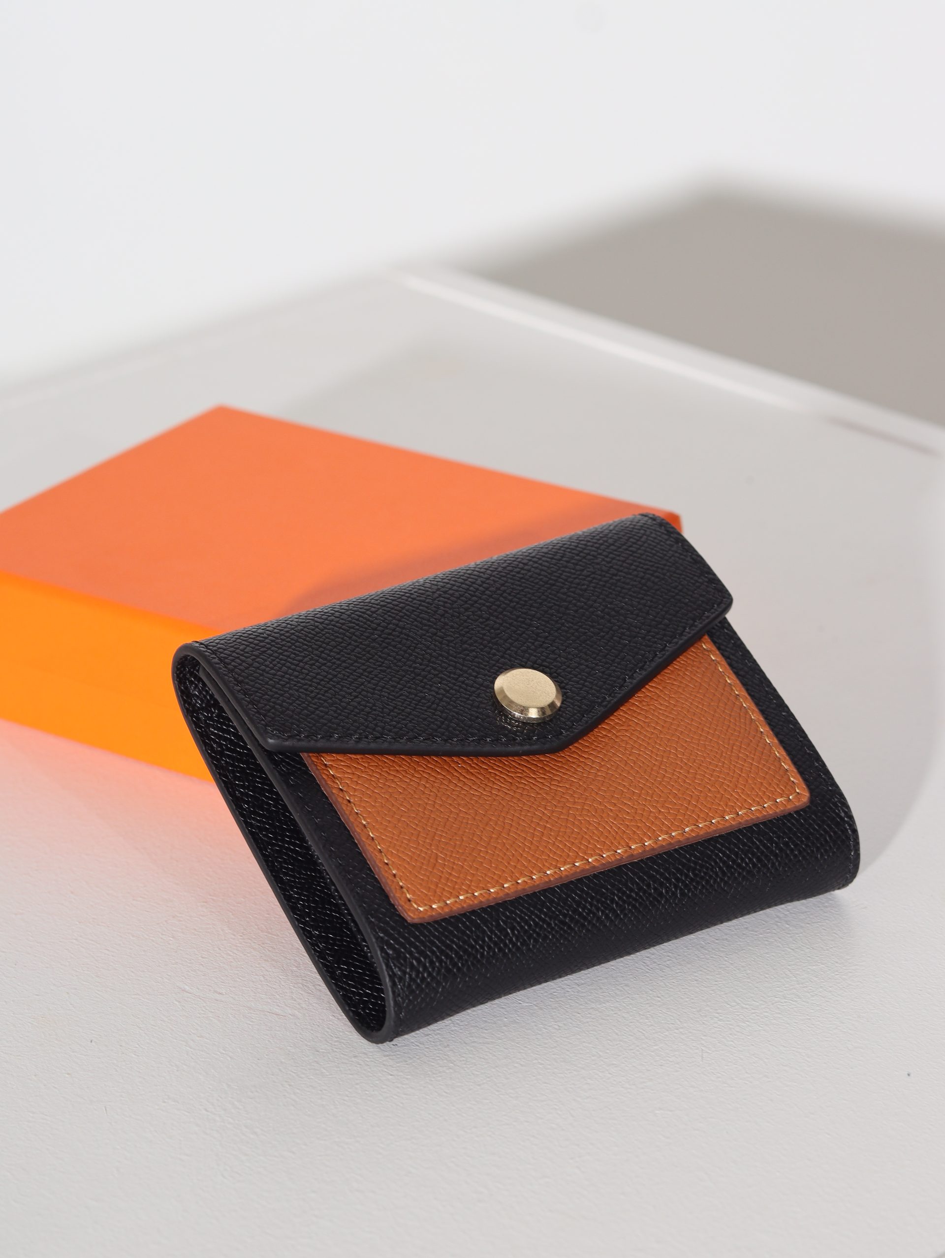 Maza izmēra , dabīgas ādas maks ar spiedpogas aizdari. Priekšpusē ir neliela kabatiņa kartēm, mugurpusē ir neliela ar zelta krāsas rāvējslēdzēju aizverama kabata monētām. Maka iekšpusē ir vieta kartēm un platāka vieta banknotēm.