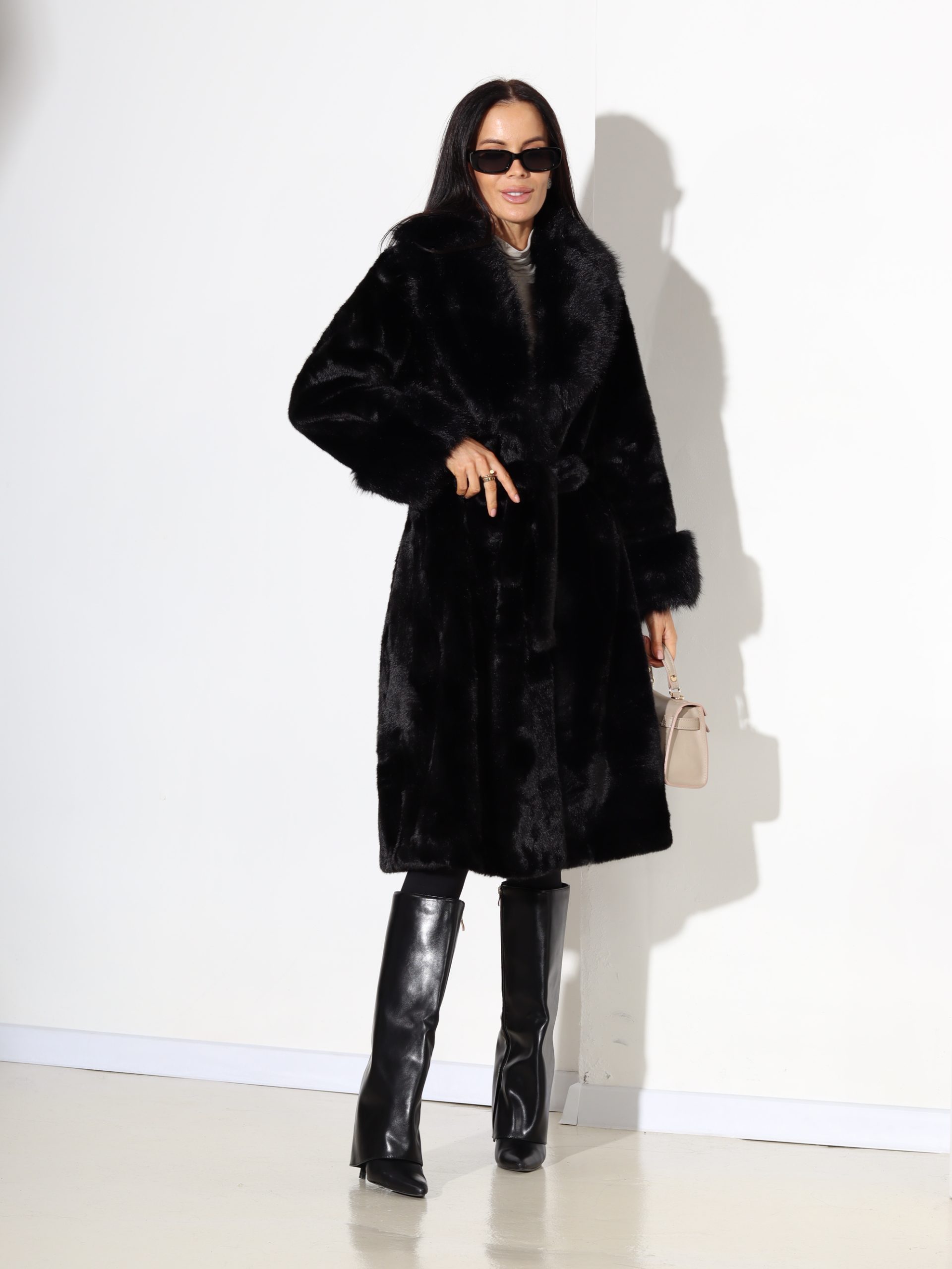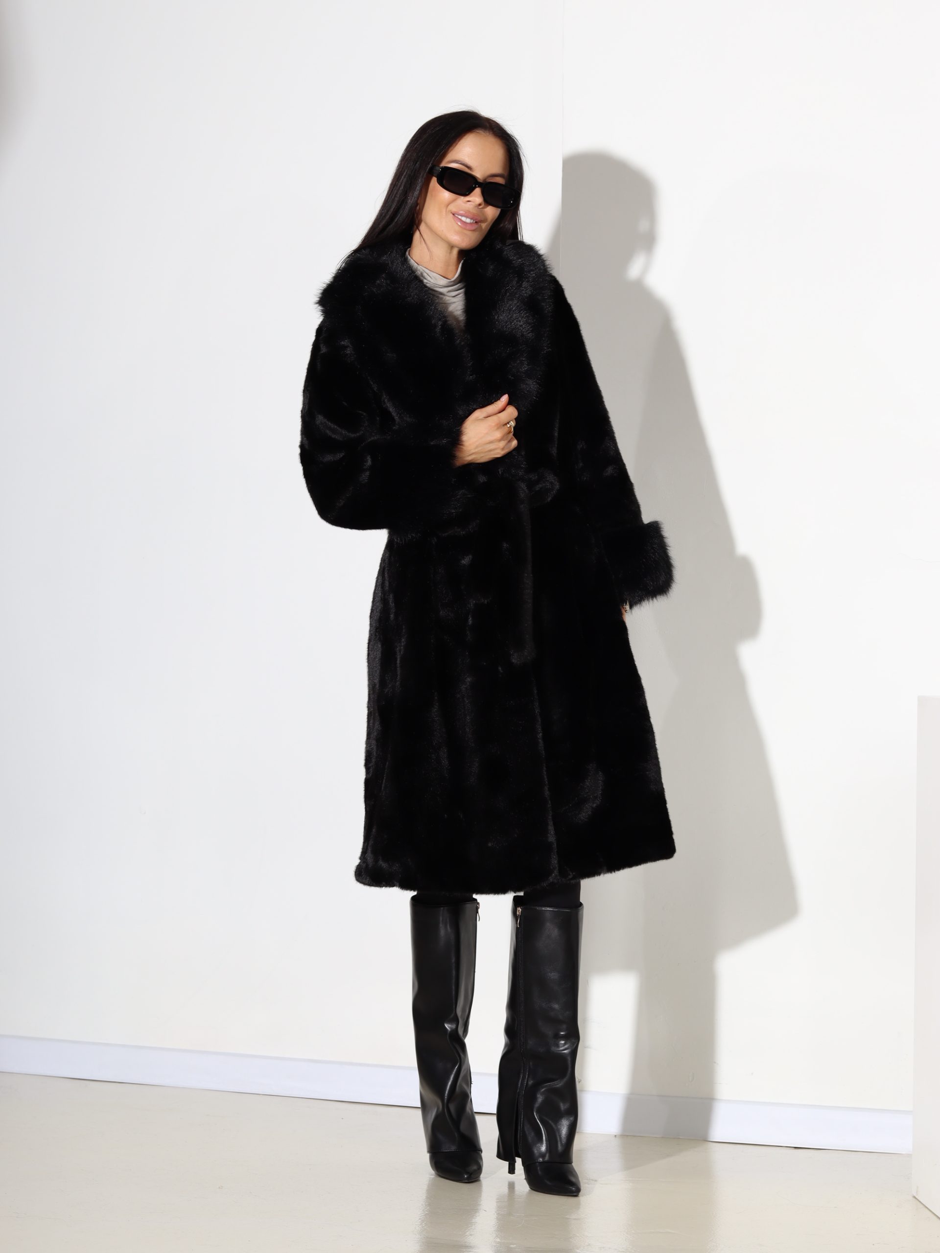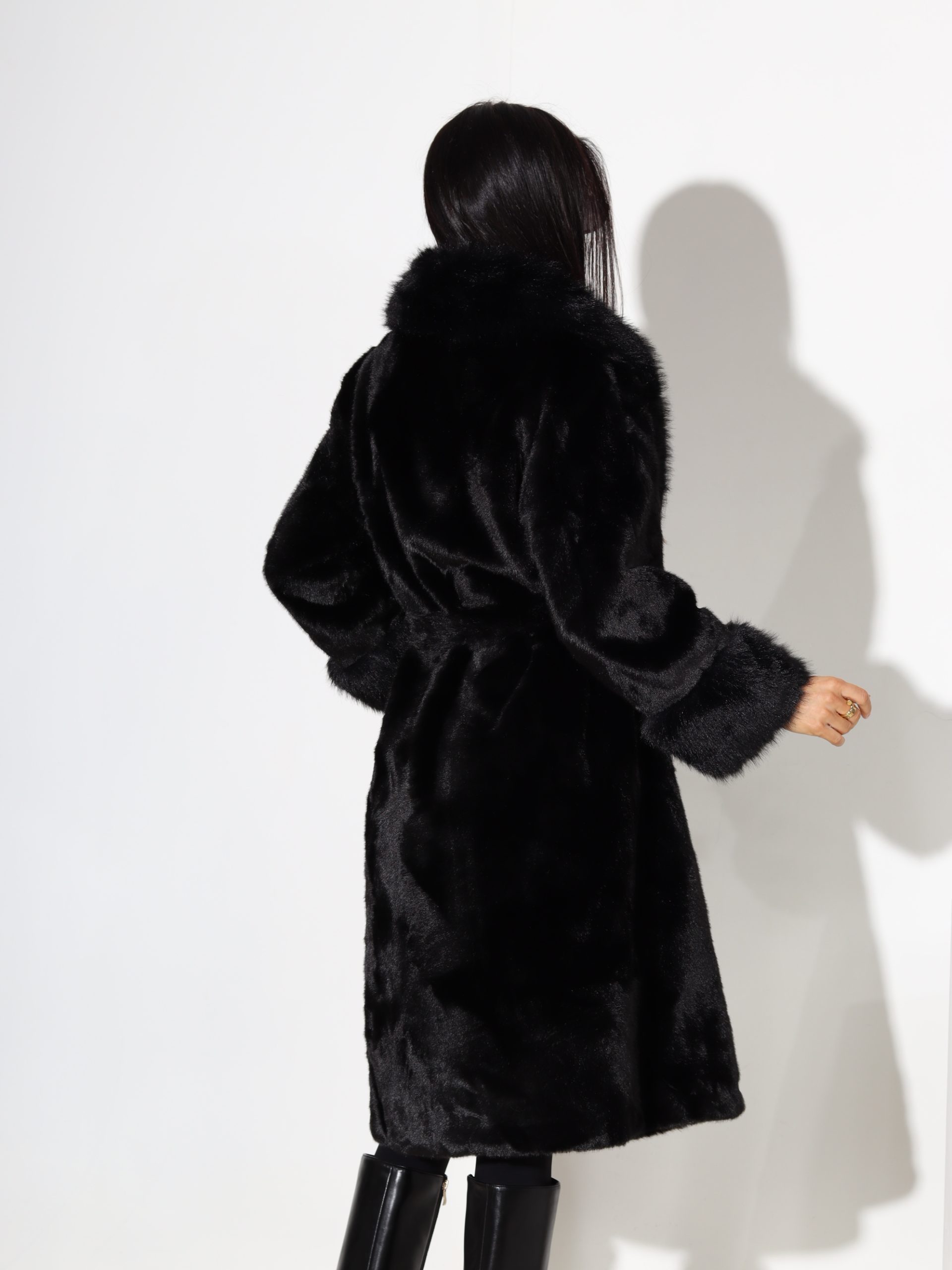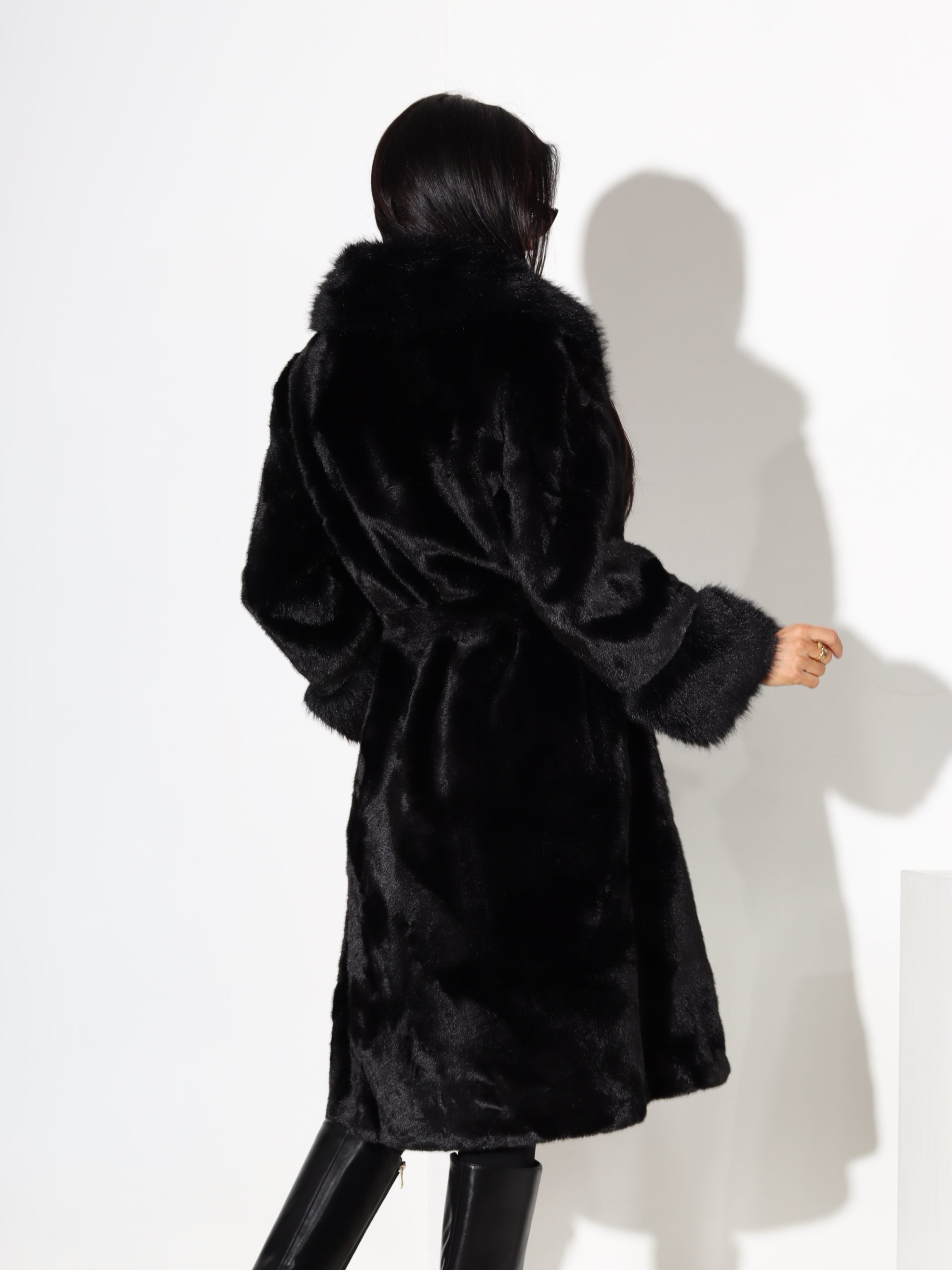Melns, midi, klasisks kažoks ar īsu spalvu – 17749