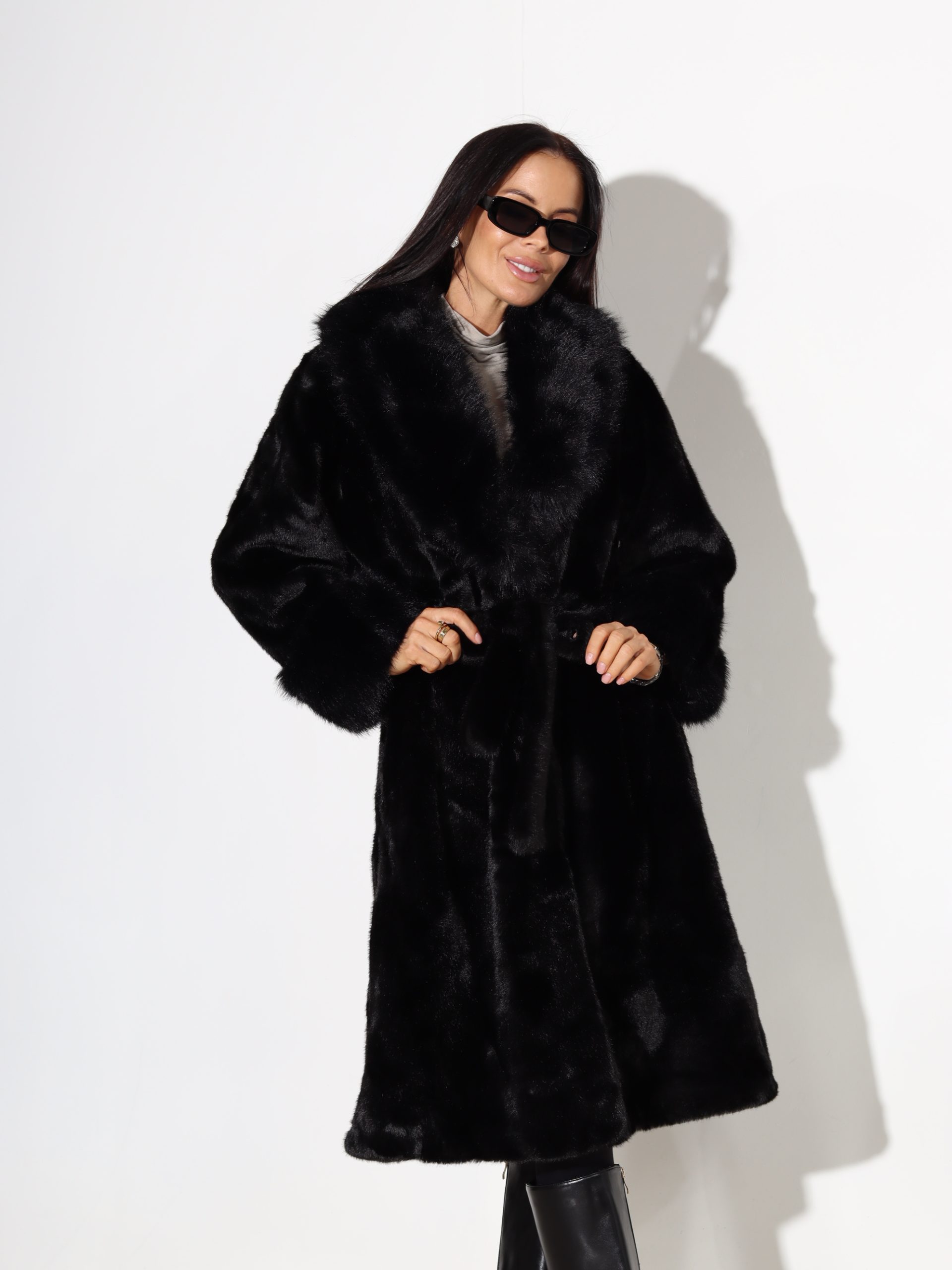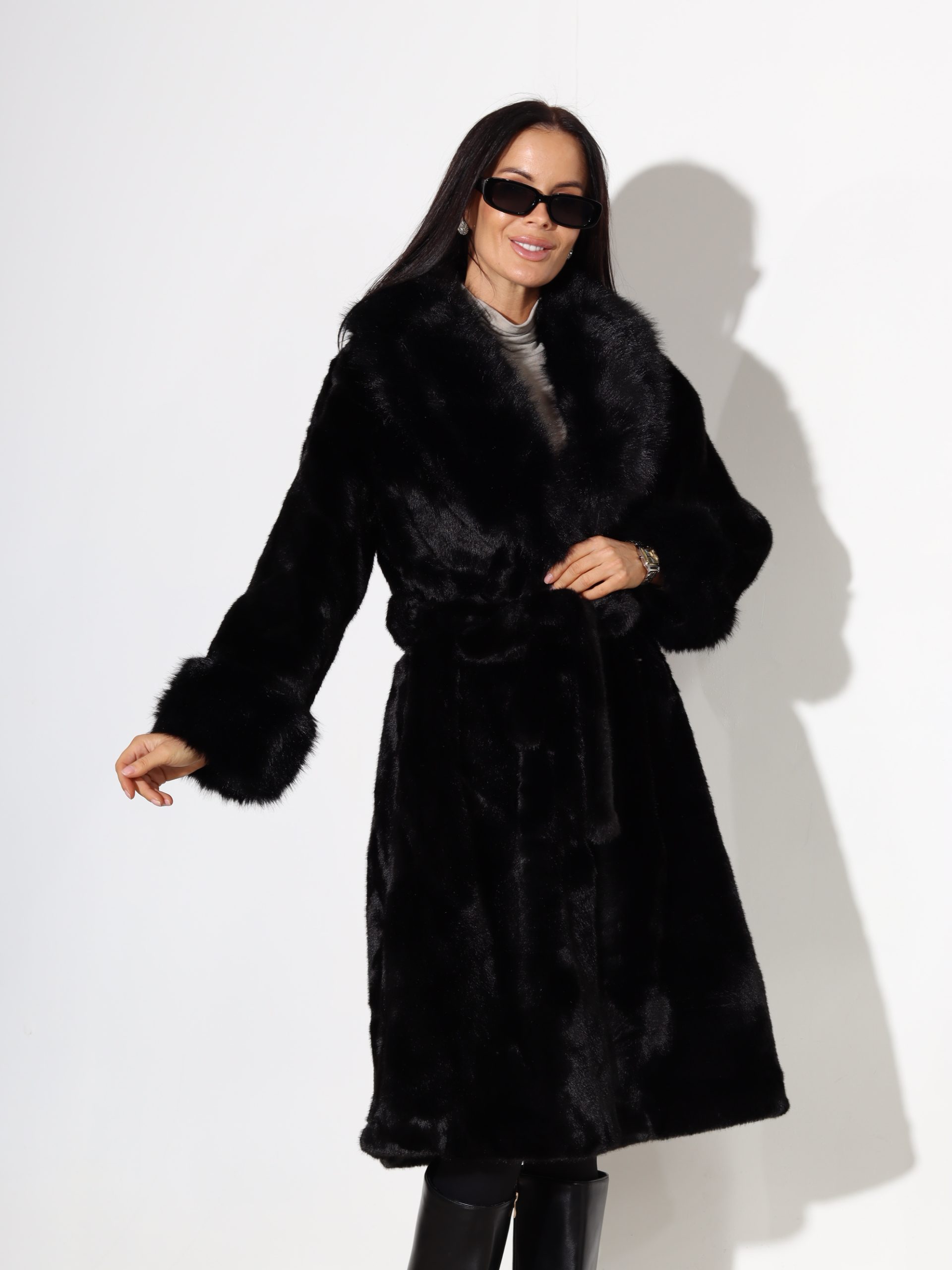 Klasisks kažoks ar īsu spalvu , garām piedurknēm ir kabatas un klasisks atloks. Kažokam klāt nāk pielāgota josta un aizdare uz āķīša.