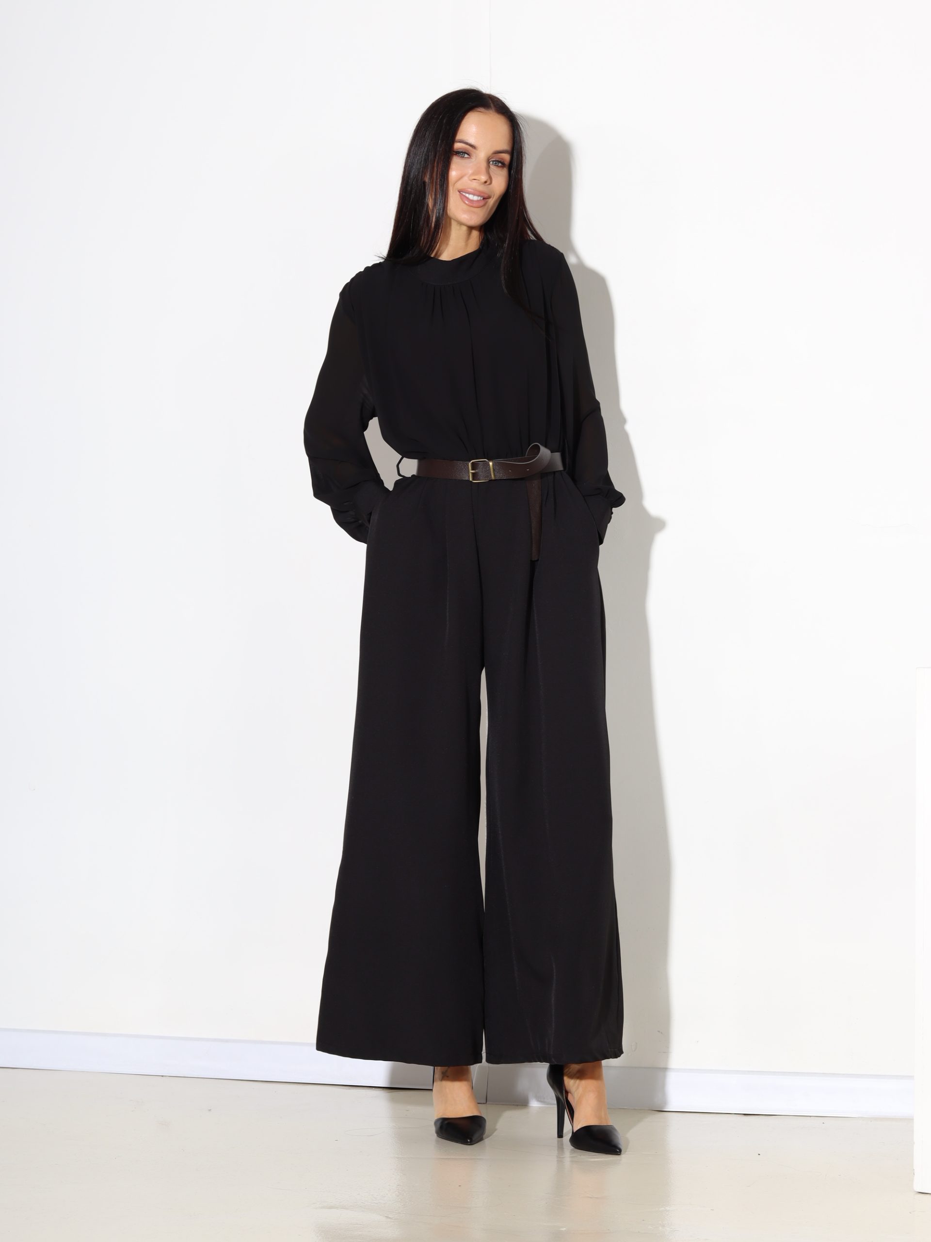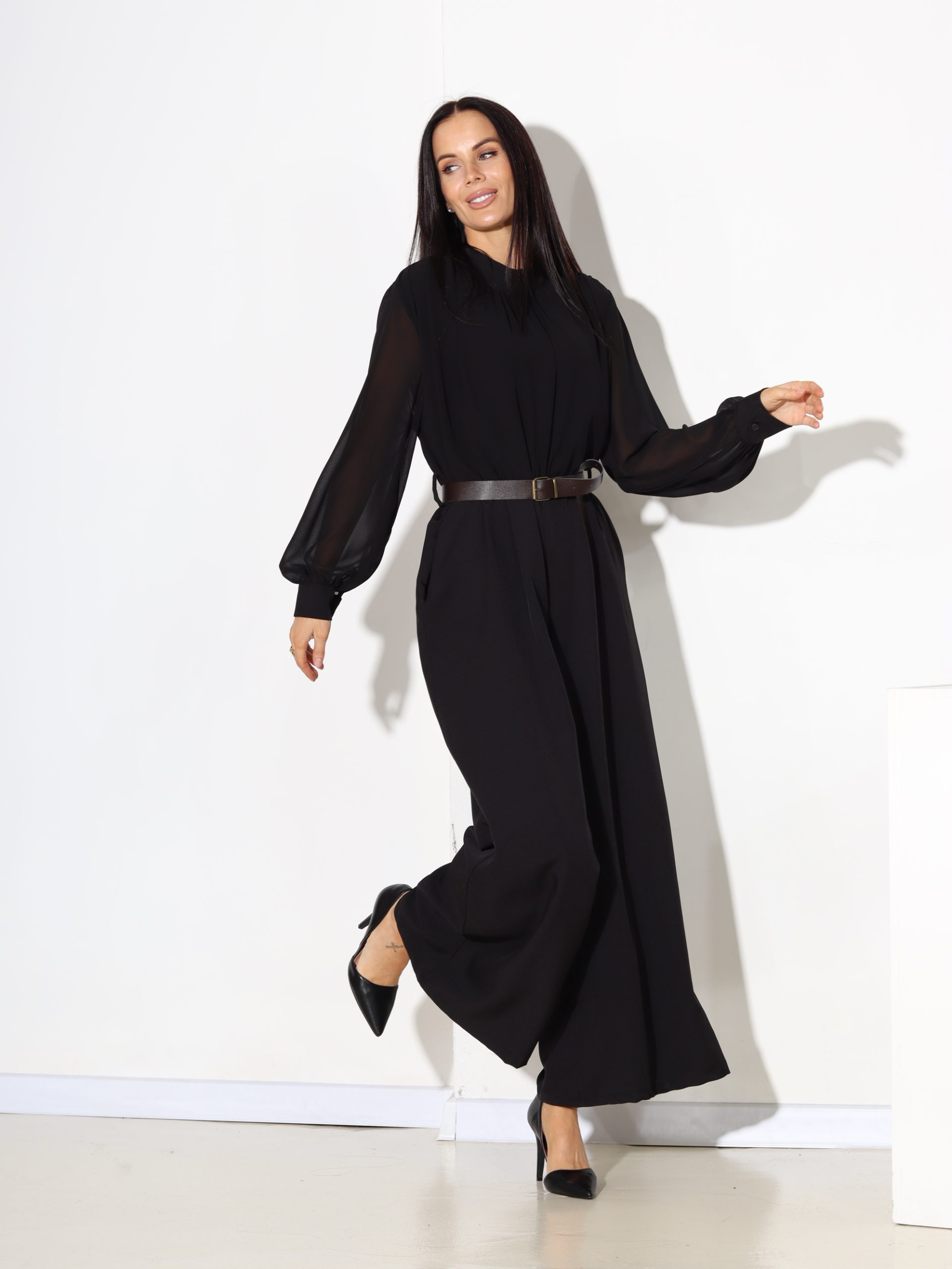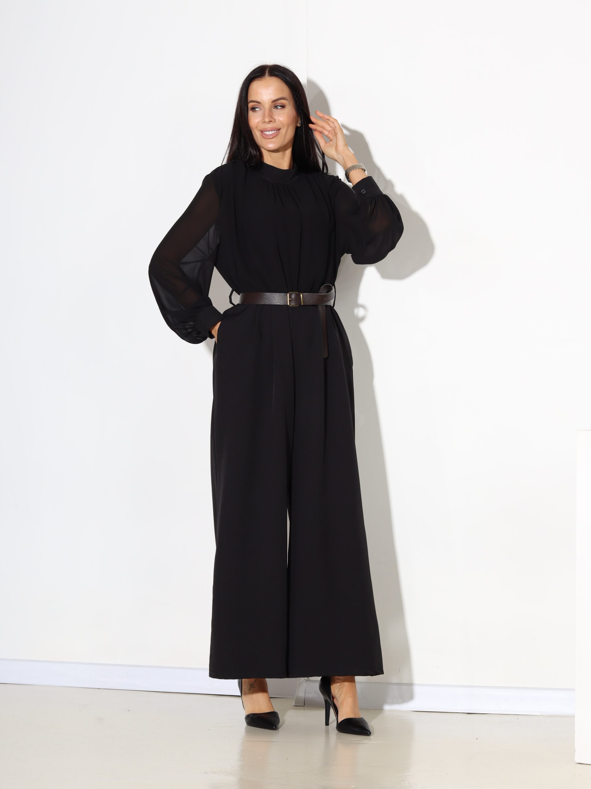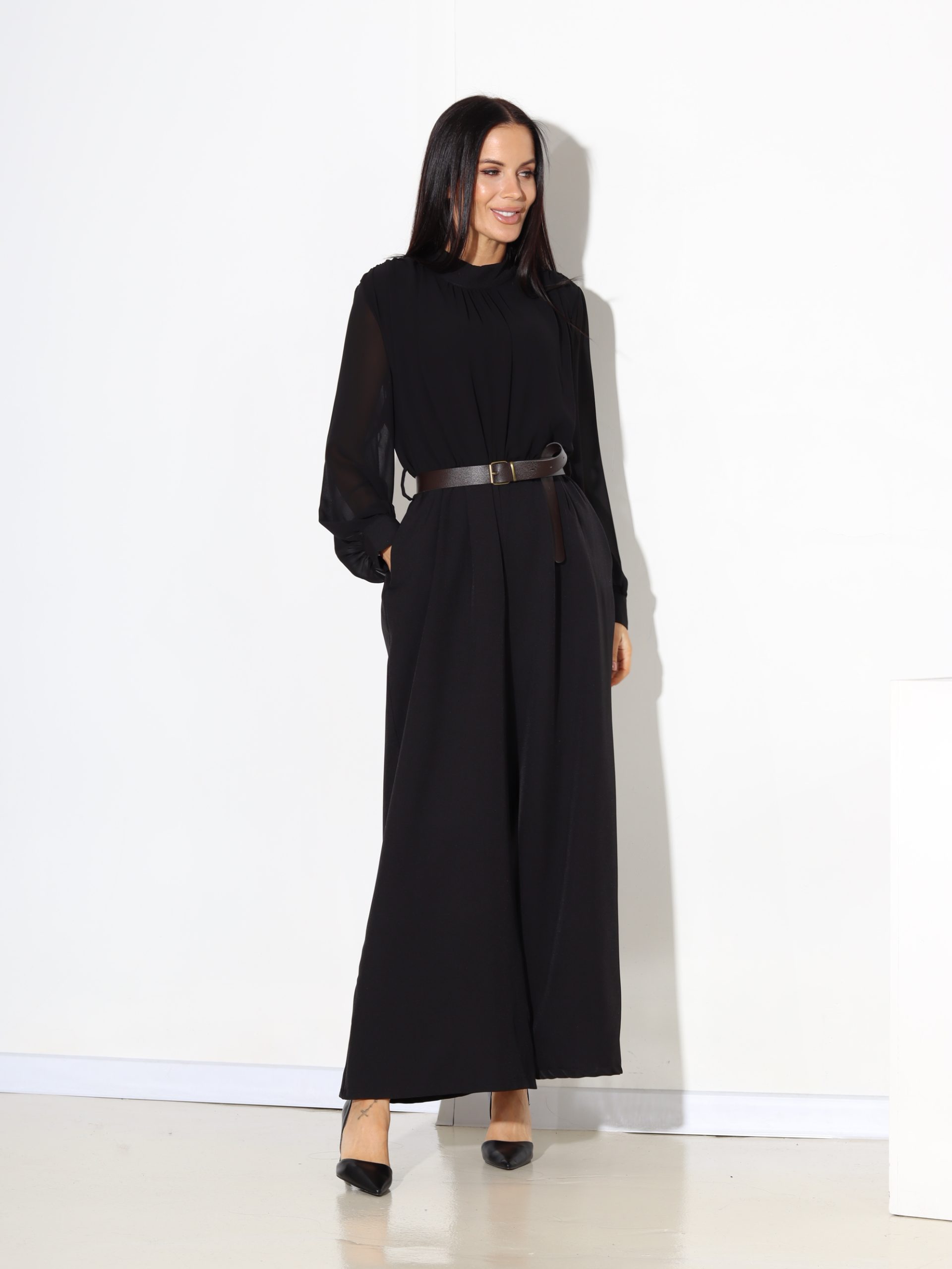 Melns kombinezons ar garām piedurknēm un jostu – 17672