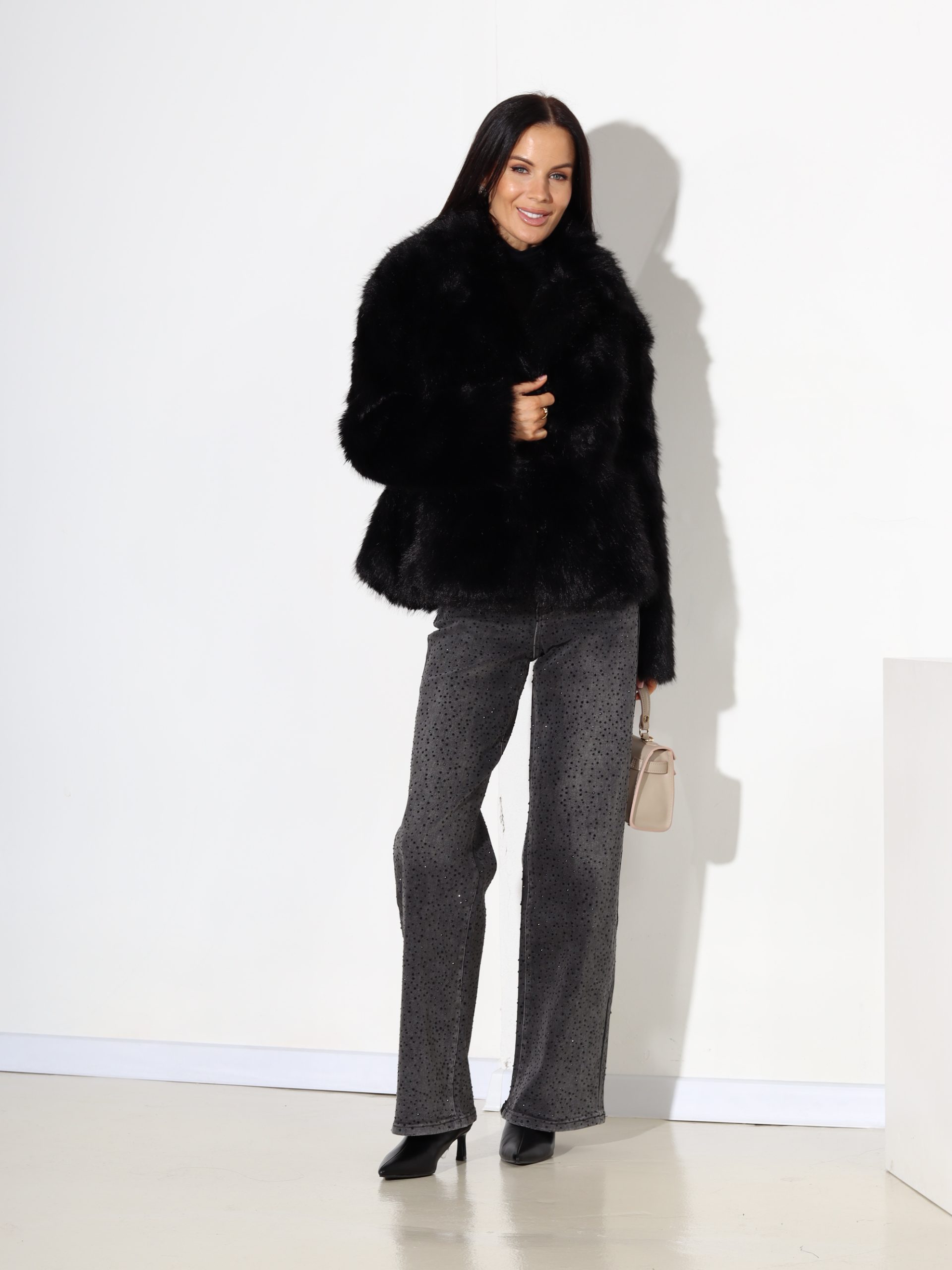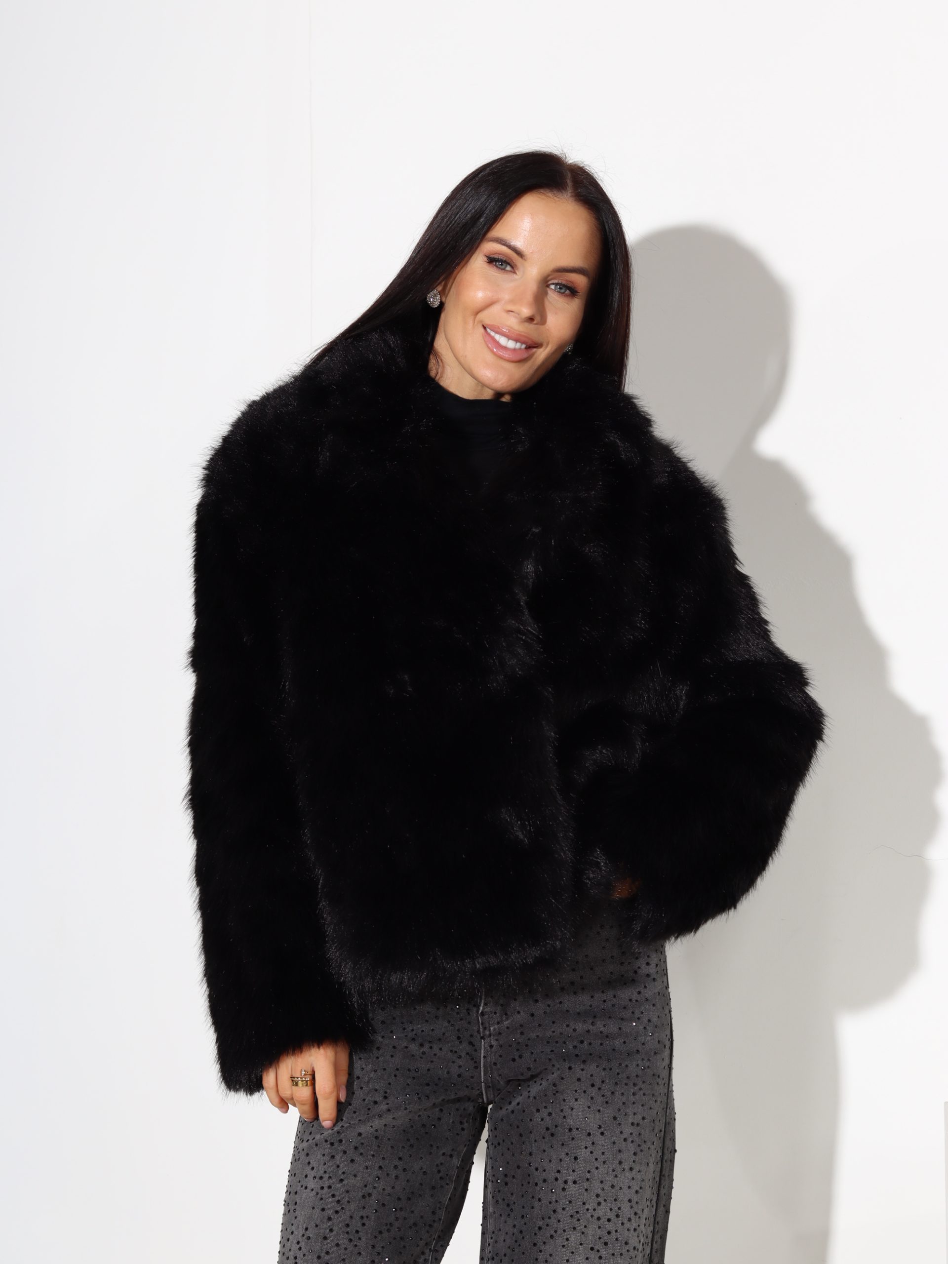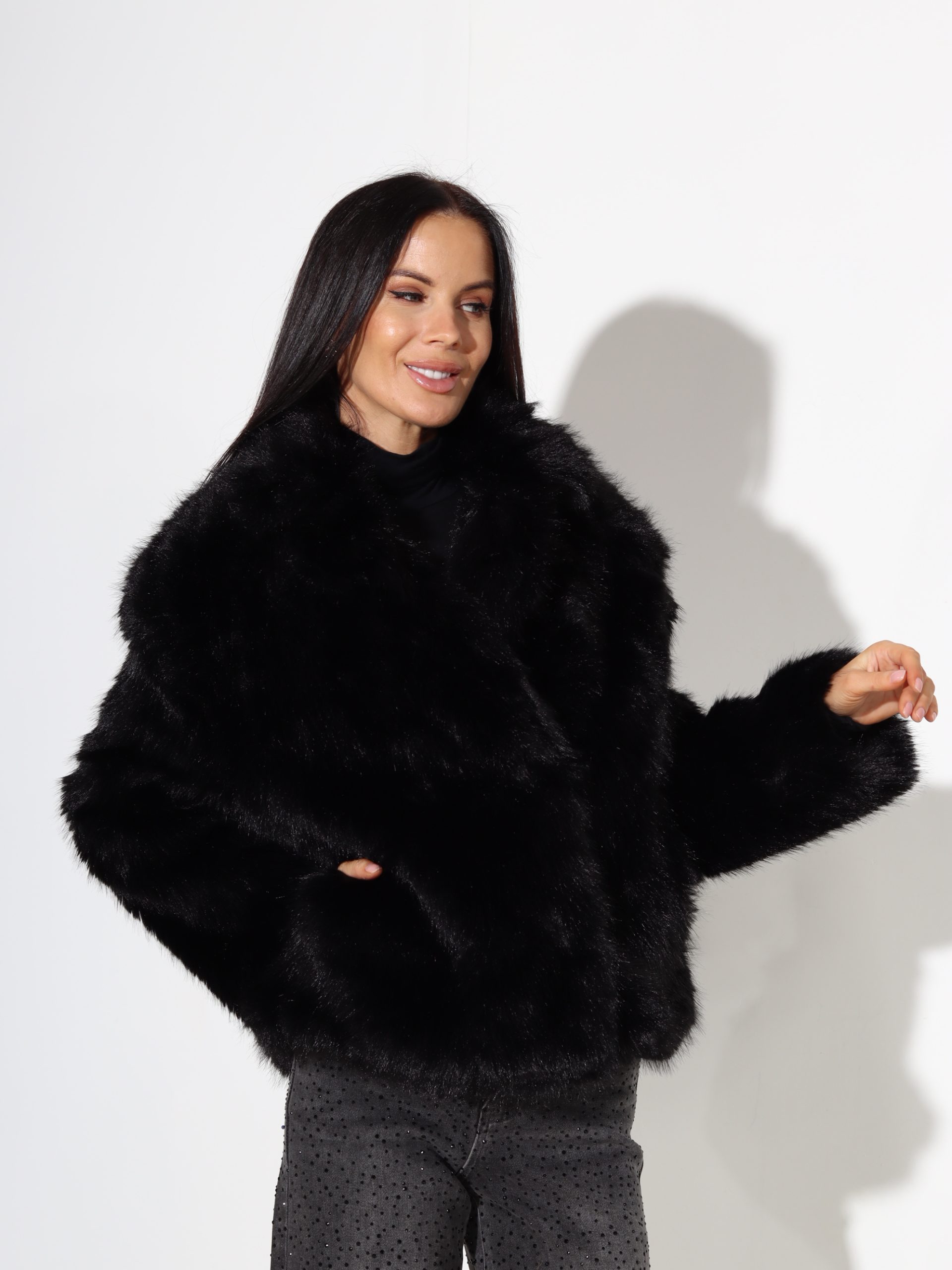Melns m/a kažoks ar īsu spalvu – 17726