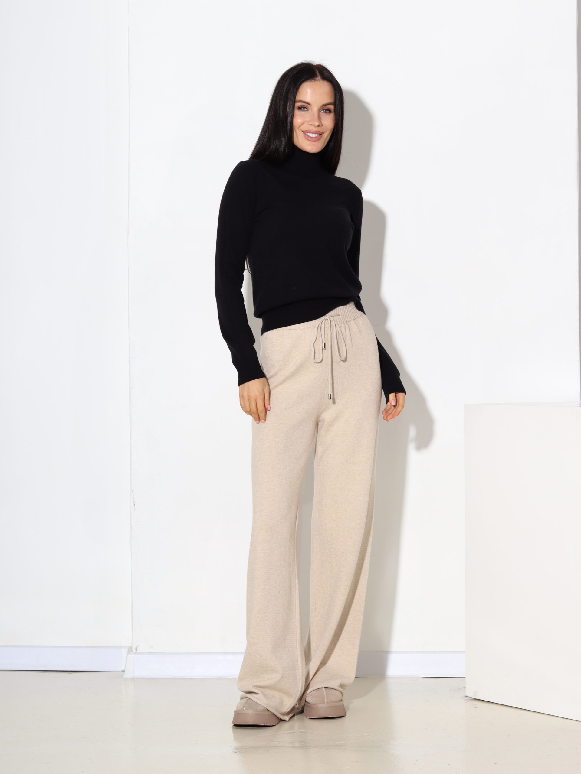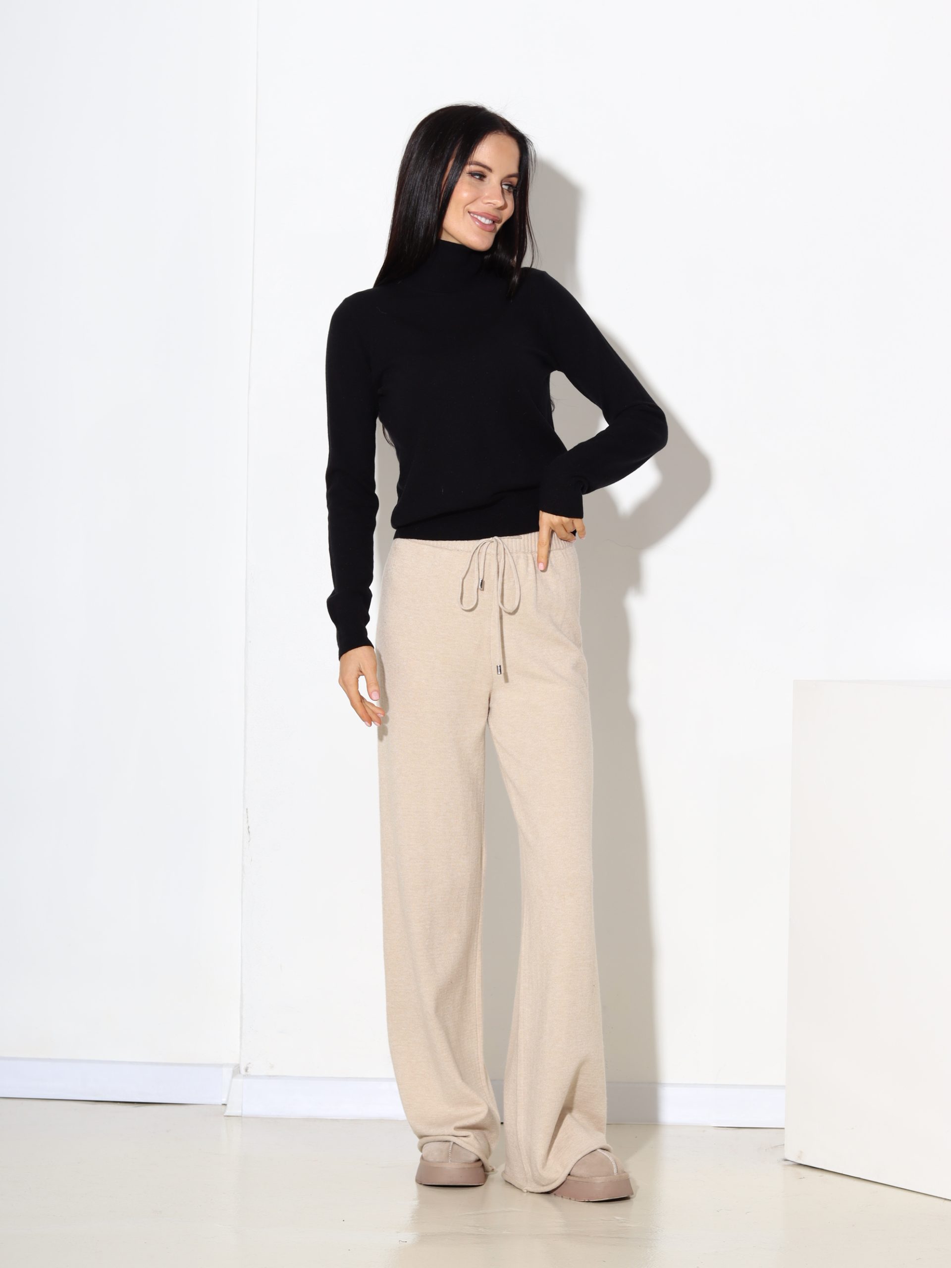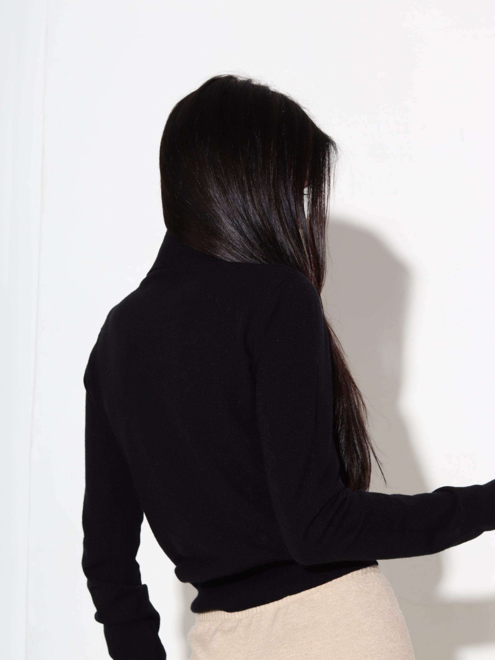 Melns, smalka adījuma džemperis ar paaugstinātu kakla daļu – 17351