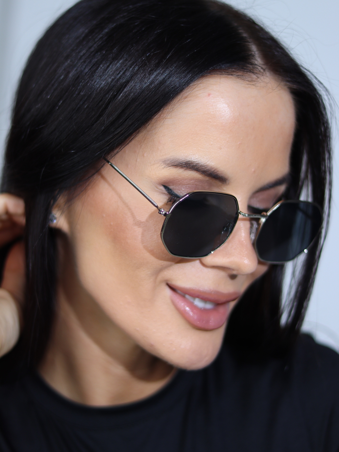 Melns+sudrabs, šķeltu metālisku maliņu, saulesbrilles – 15692