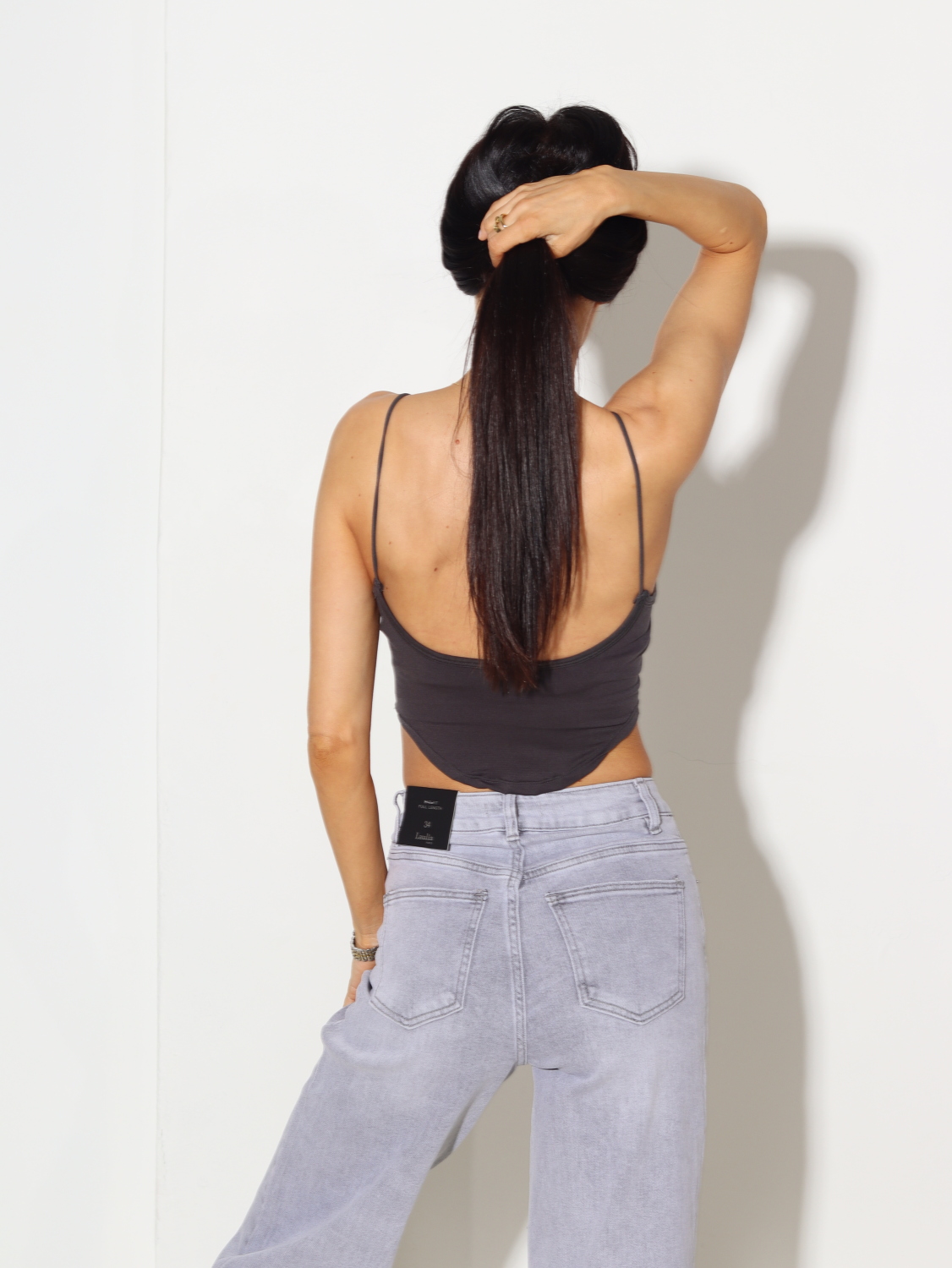 Gluda auduma kroptopiņš ar staipīgām, gumijas lencēm, krūšu daļā iešūts pieskaņotas krāsas polsteris.