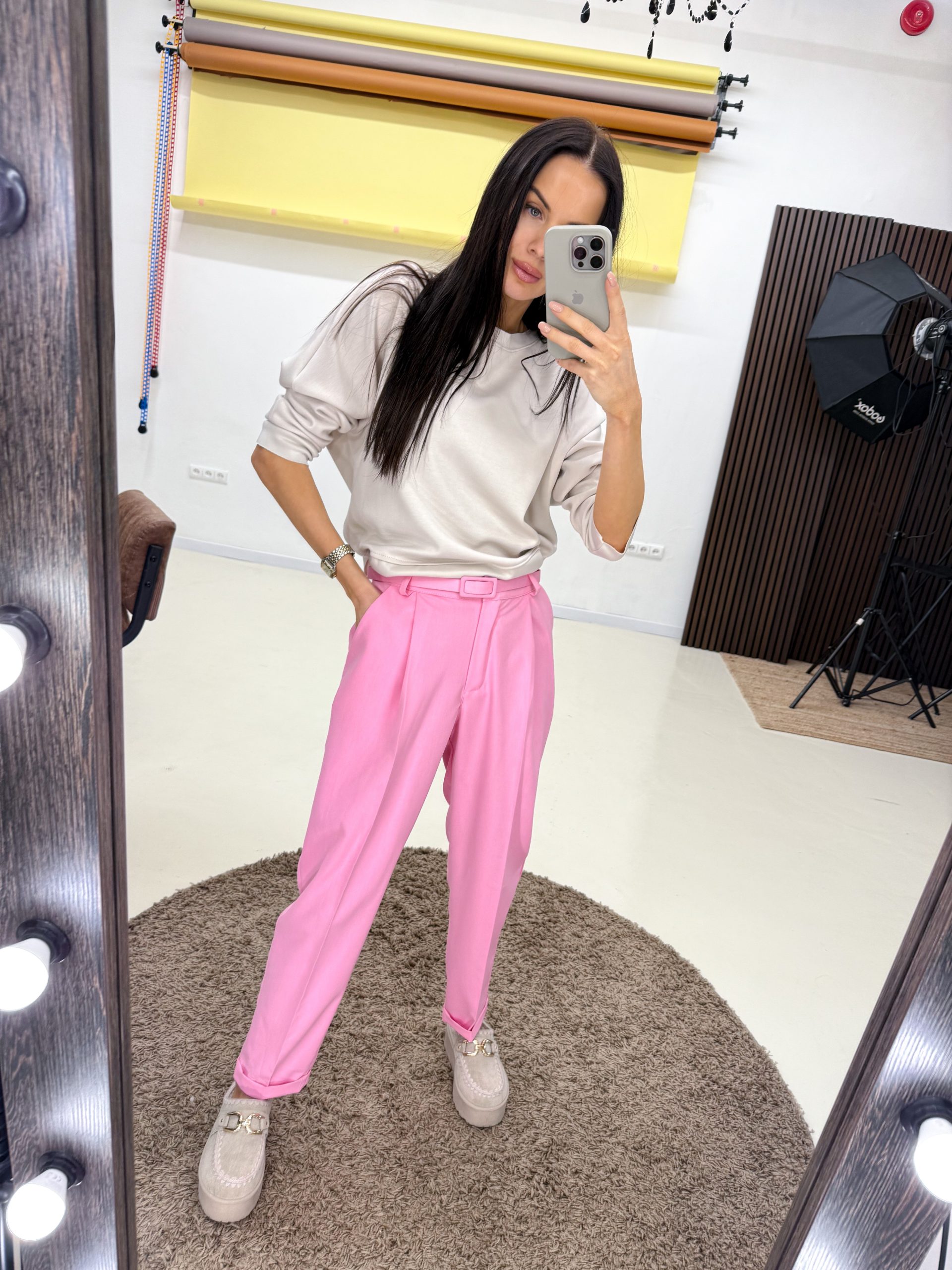 Rozā, klasiskas, taisna piegriezuma bikses – 14169