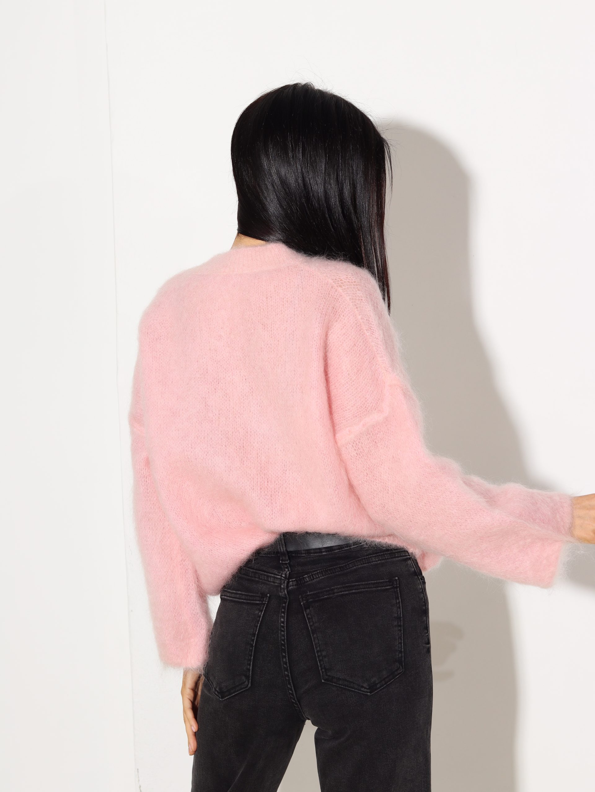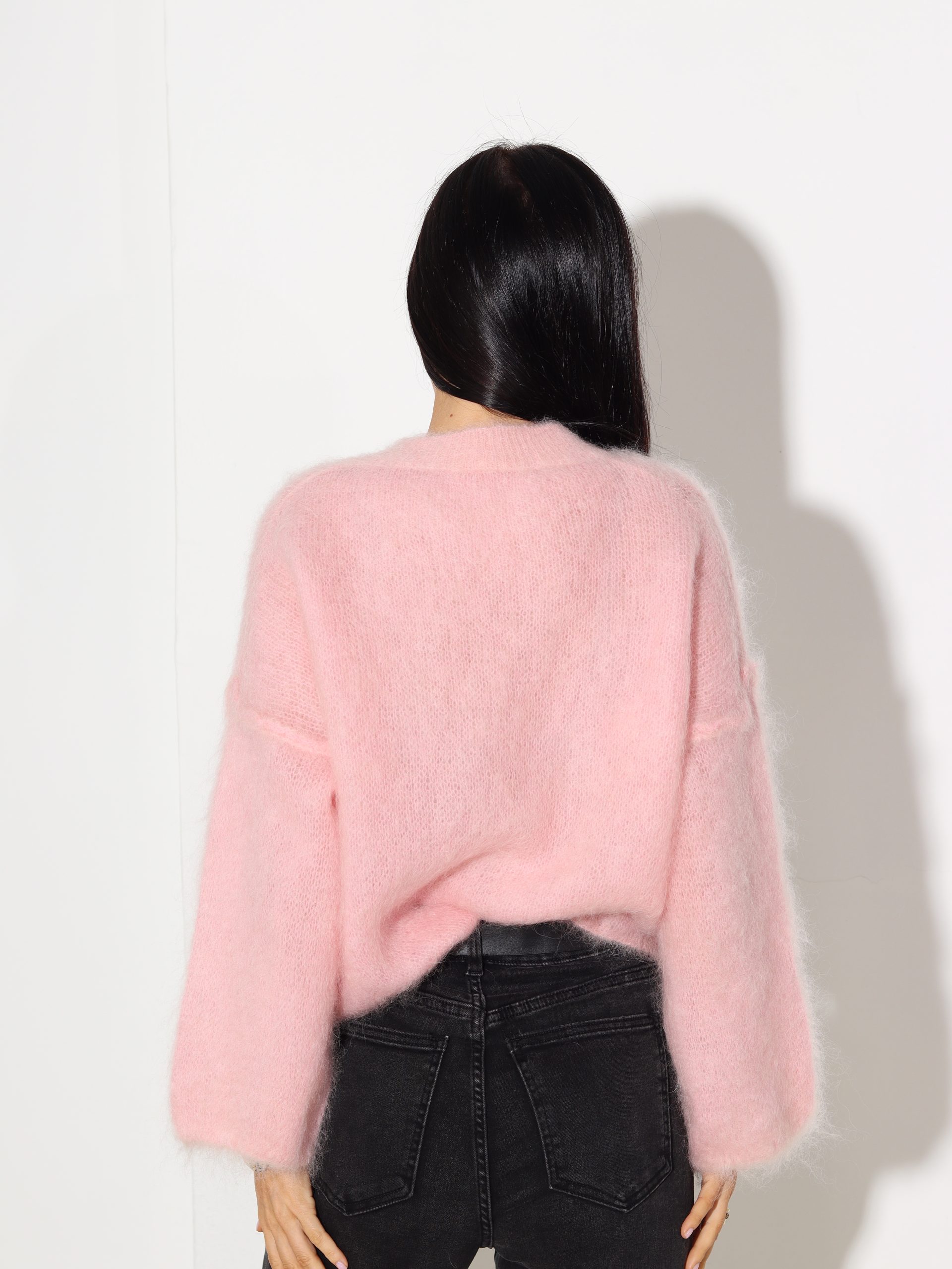 Rozā mohēras džemperis ‘Oversize’, īsa piedurkne – 16944