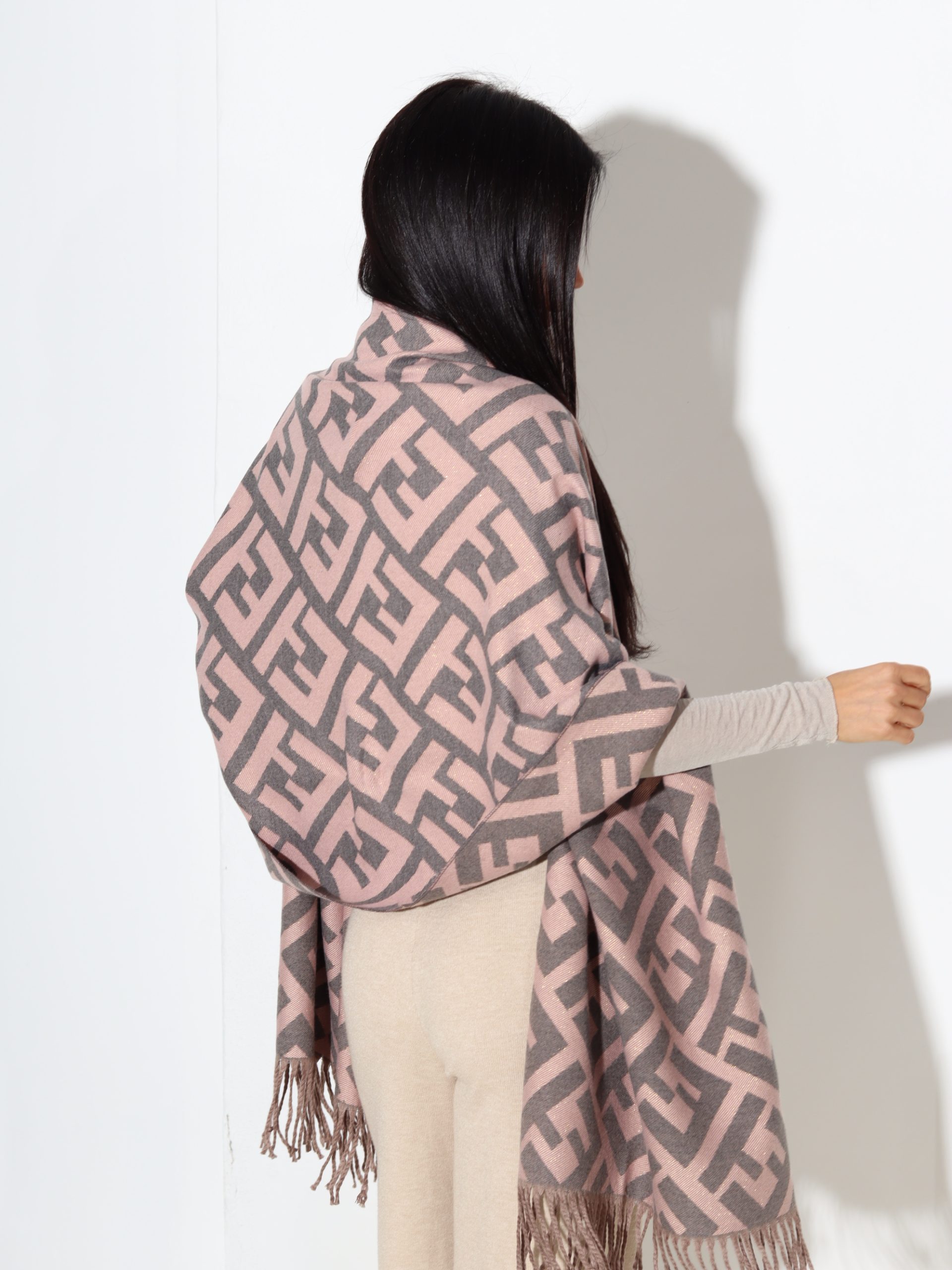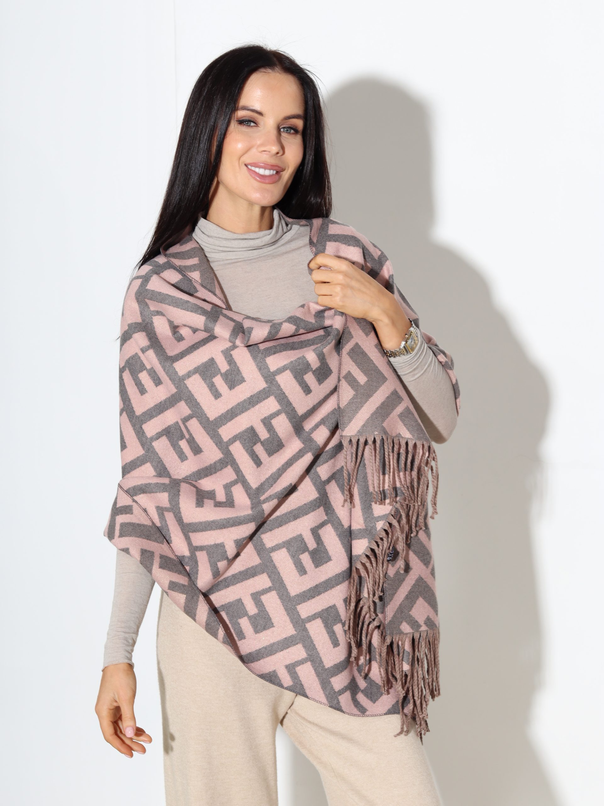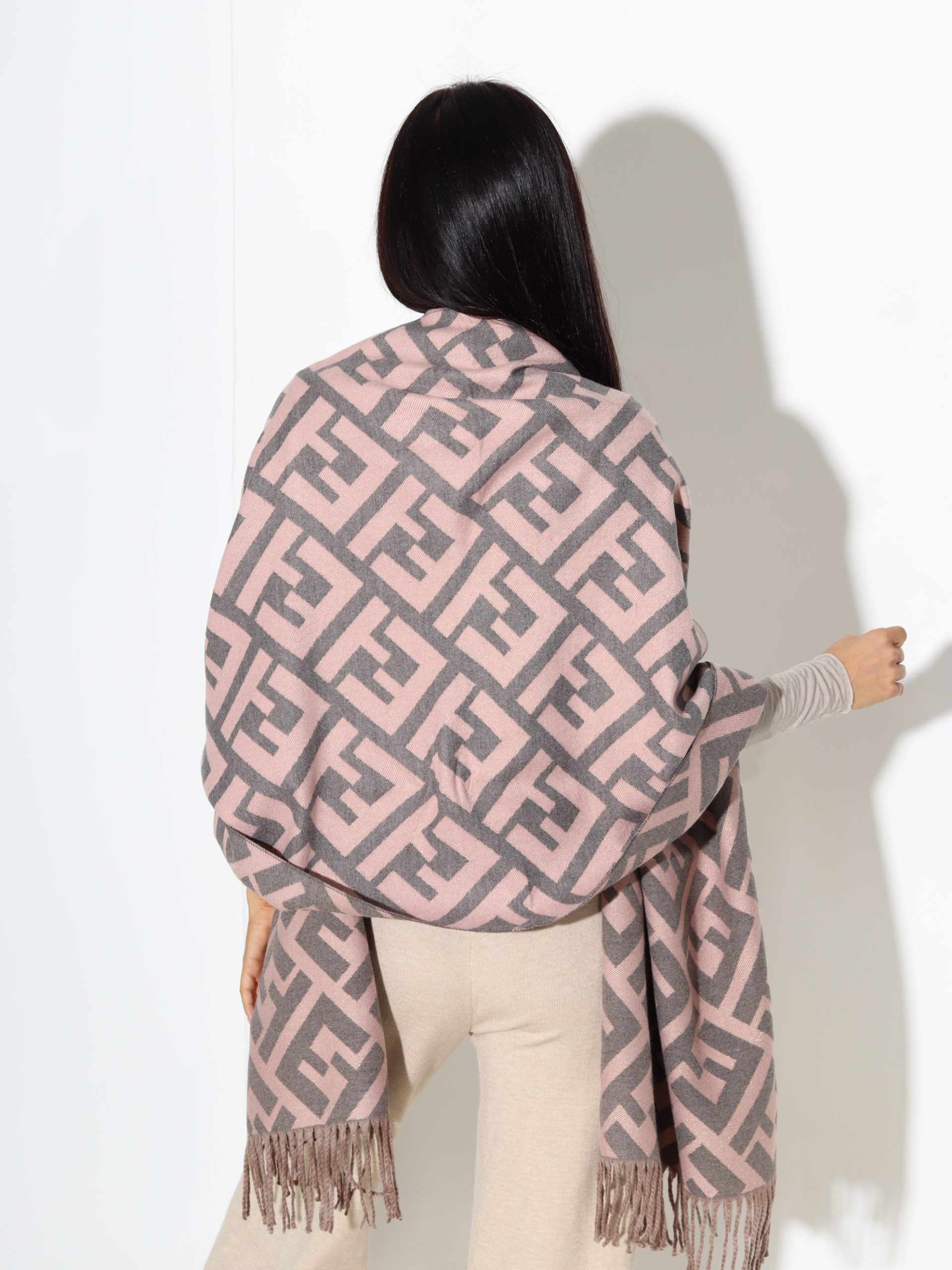 Rozā+pelēka šalle ar ornamenta rakstu – 17419