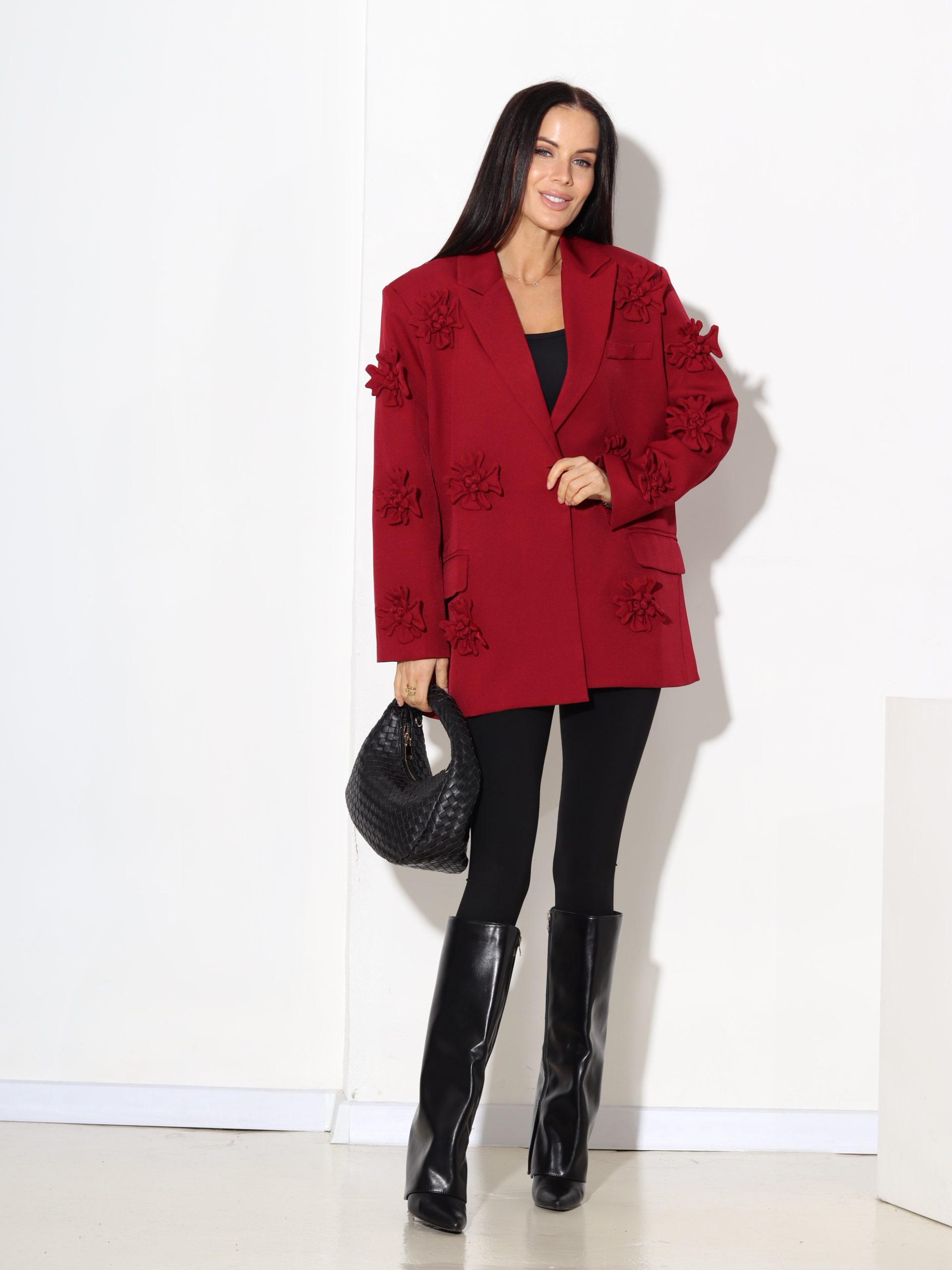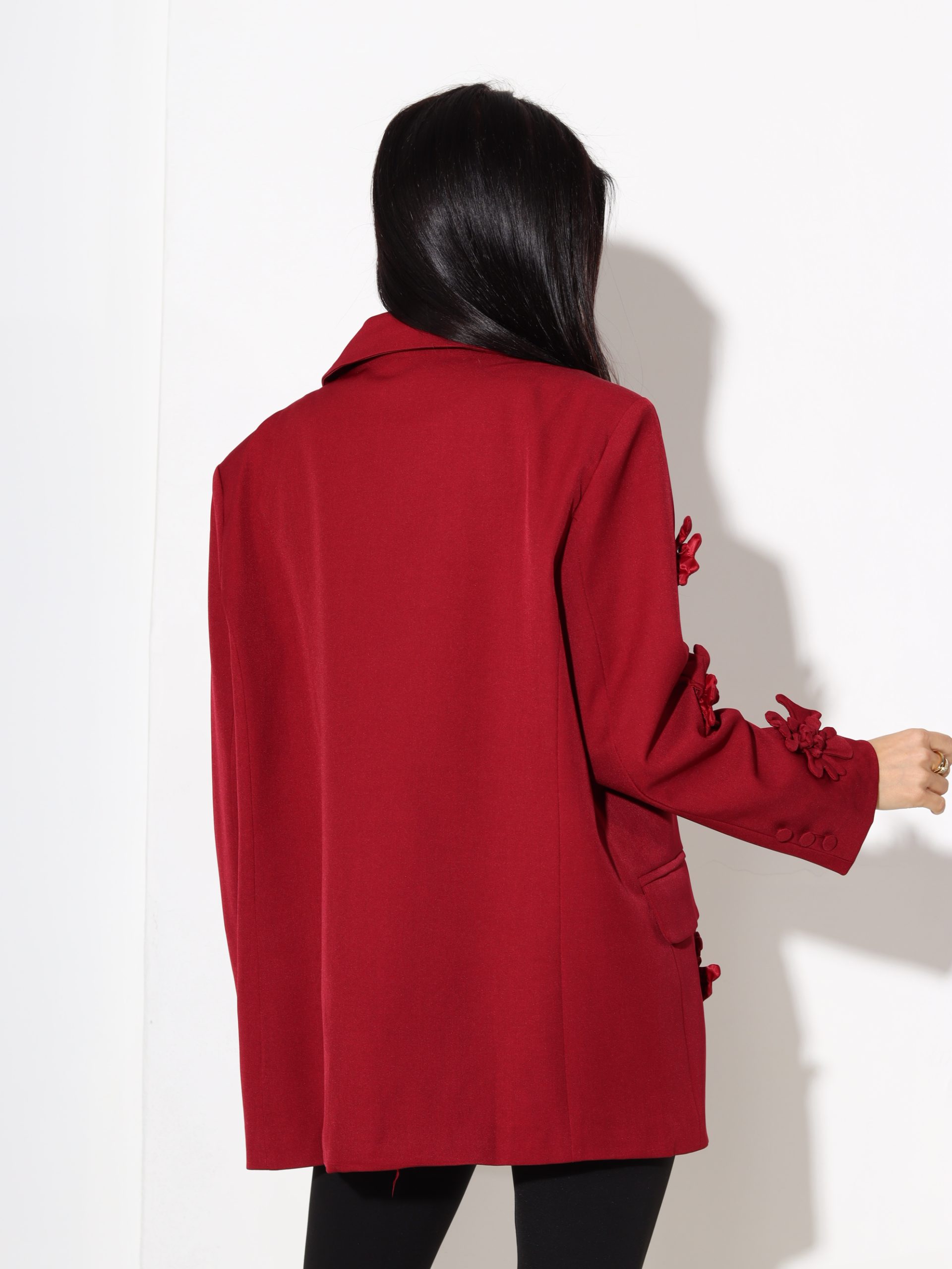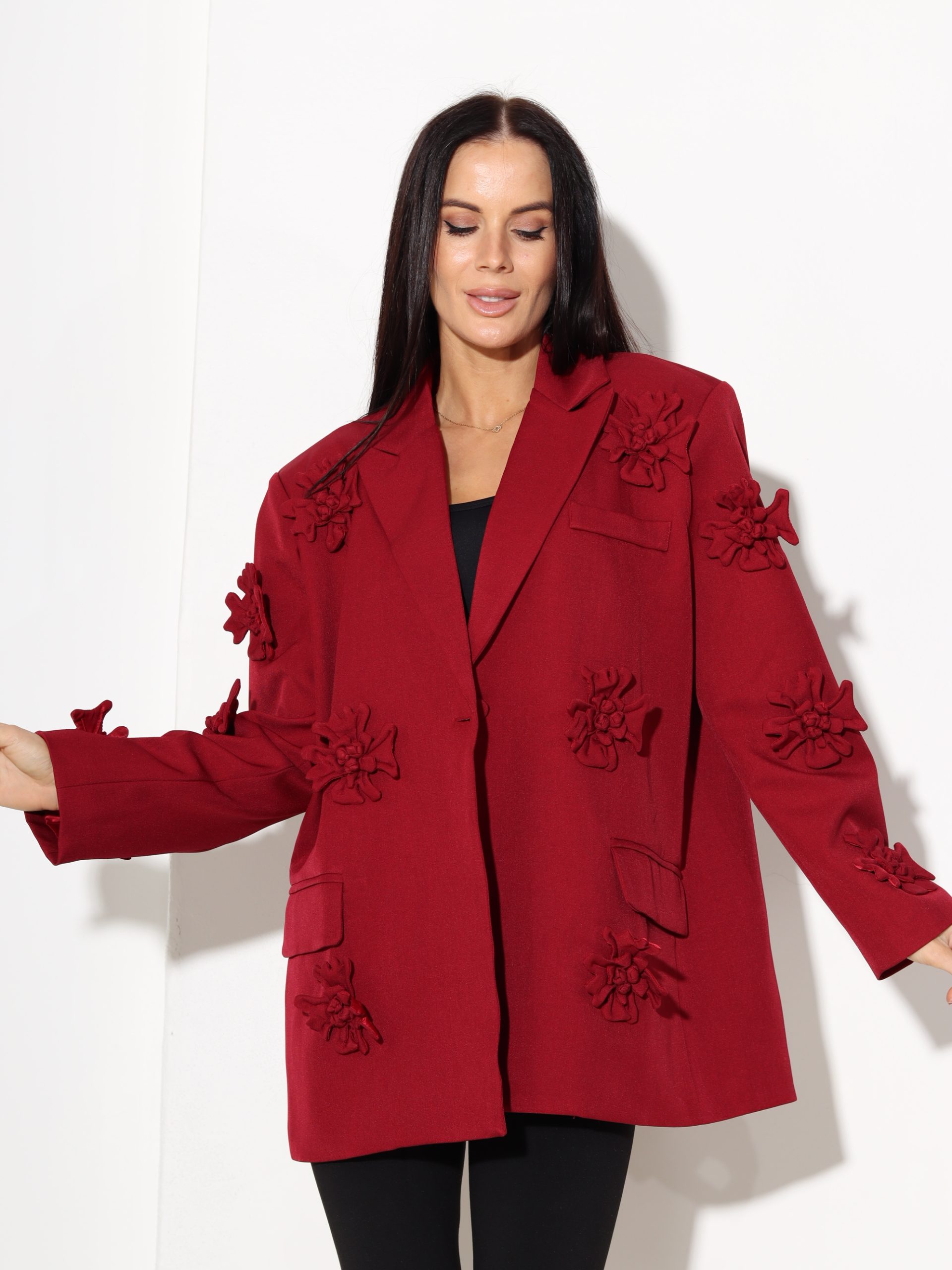 Sarkana žakete ar uzšūtiem ziediem – 17392