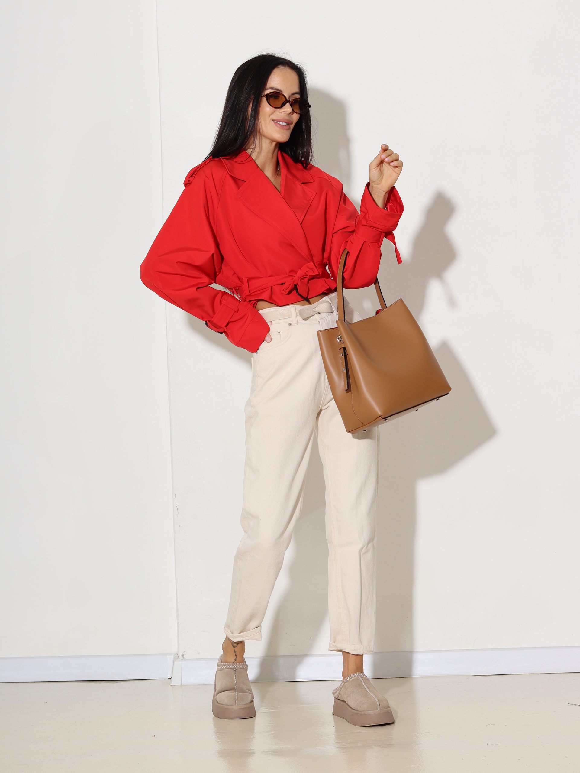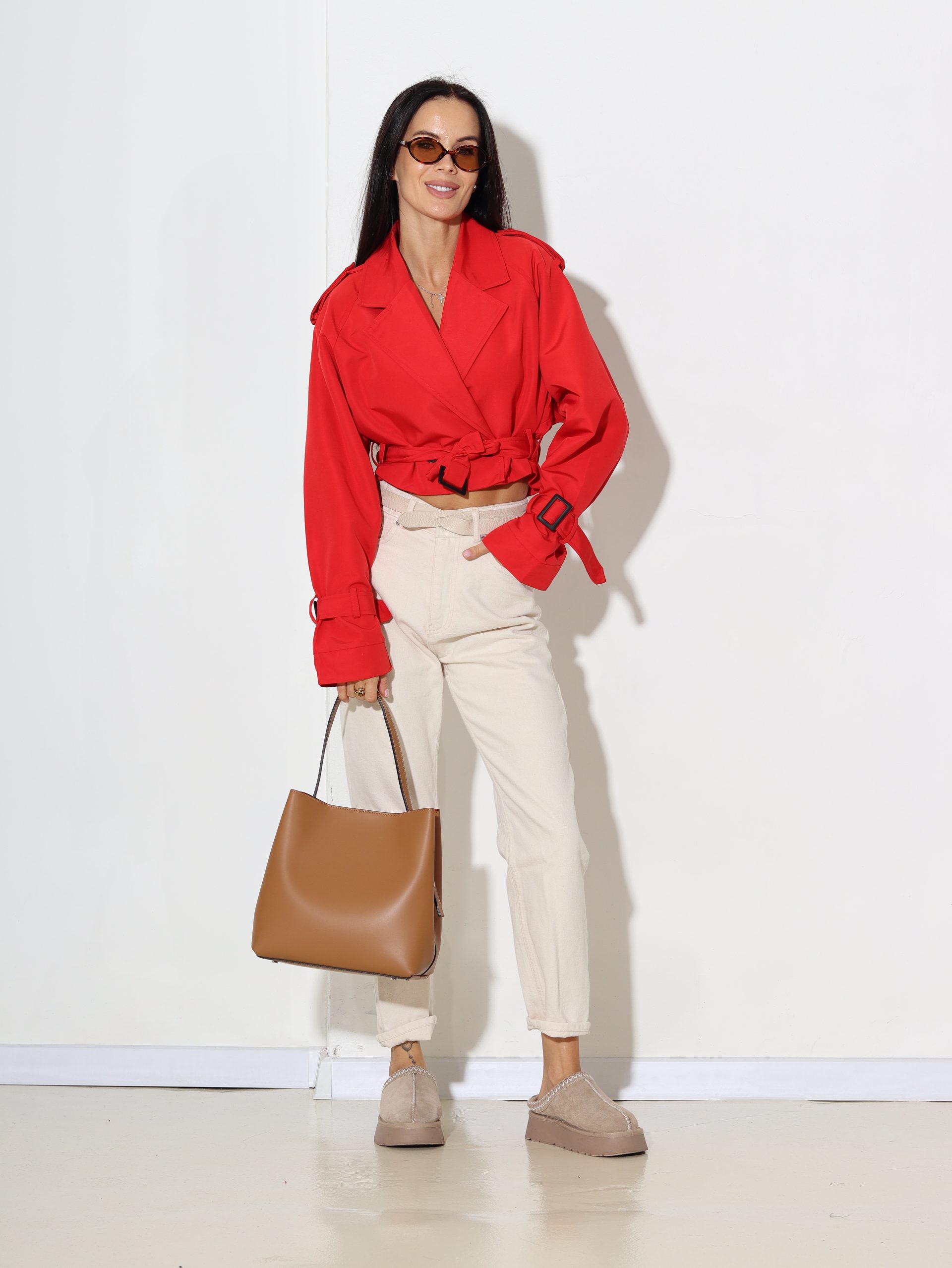 Plāna auduma, saīsināta garuma virsjaka, aizdare ar pogām un žaketes piegrieznes dekoltē daļu. Virsjakai ir taisna piegriezuma piedurknes ar slīpu pleca vīlīti, delnas daļa regulējama. Iekšpusē ir iestrādāta pieskaņotas krāsas odere, apakšdaļā regulējama jostiņa