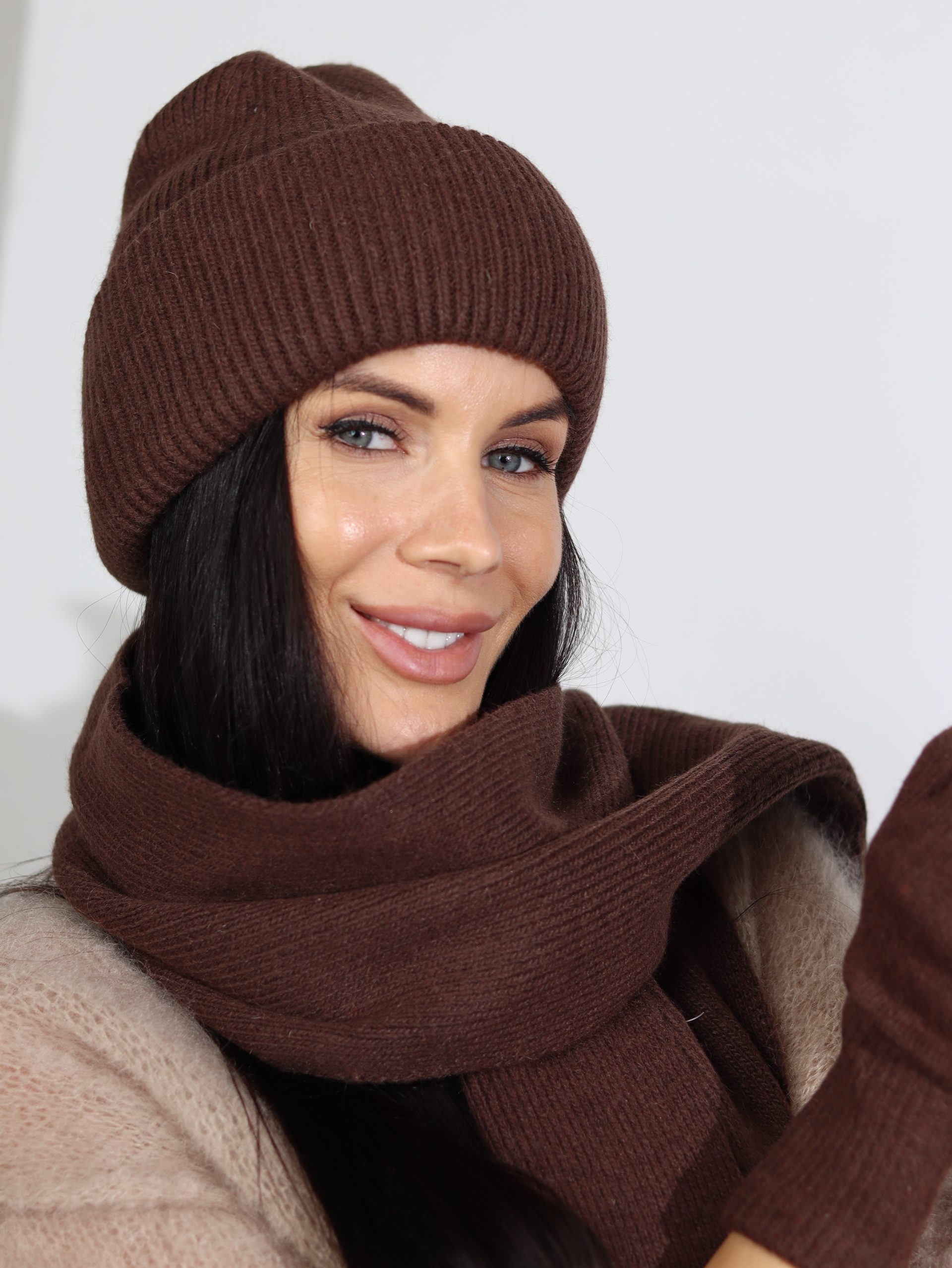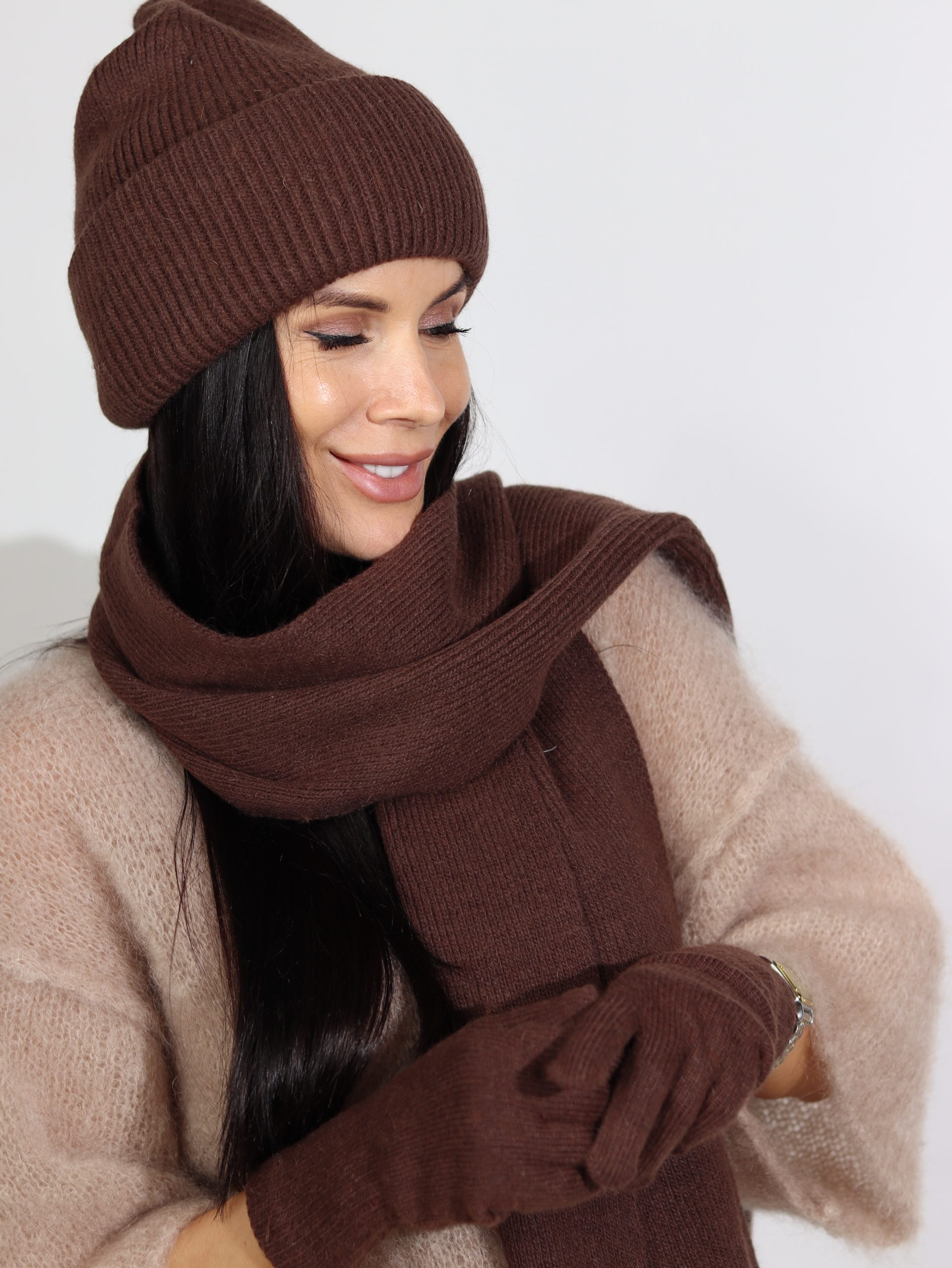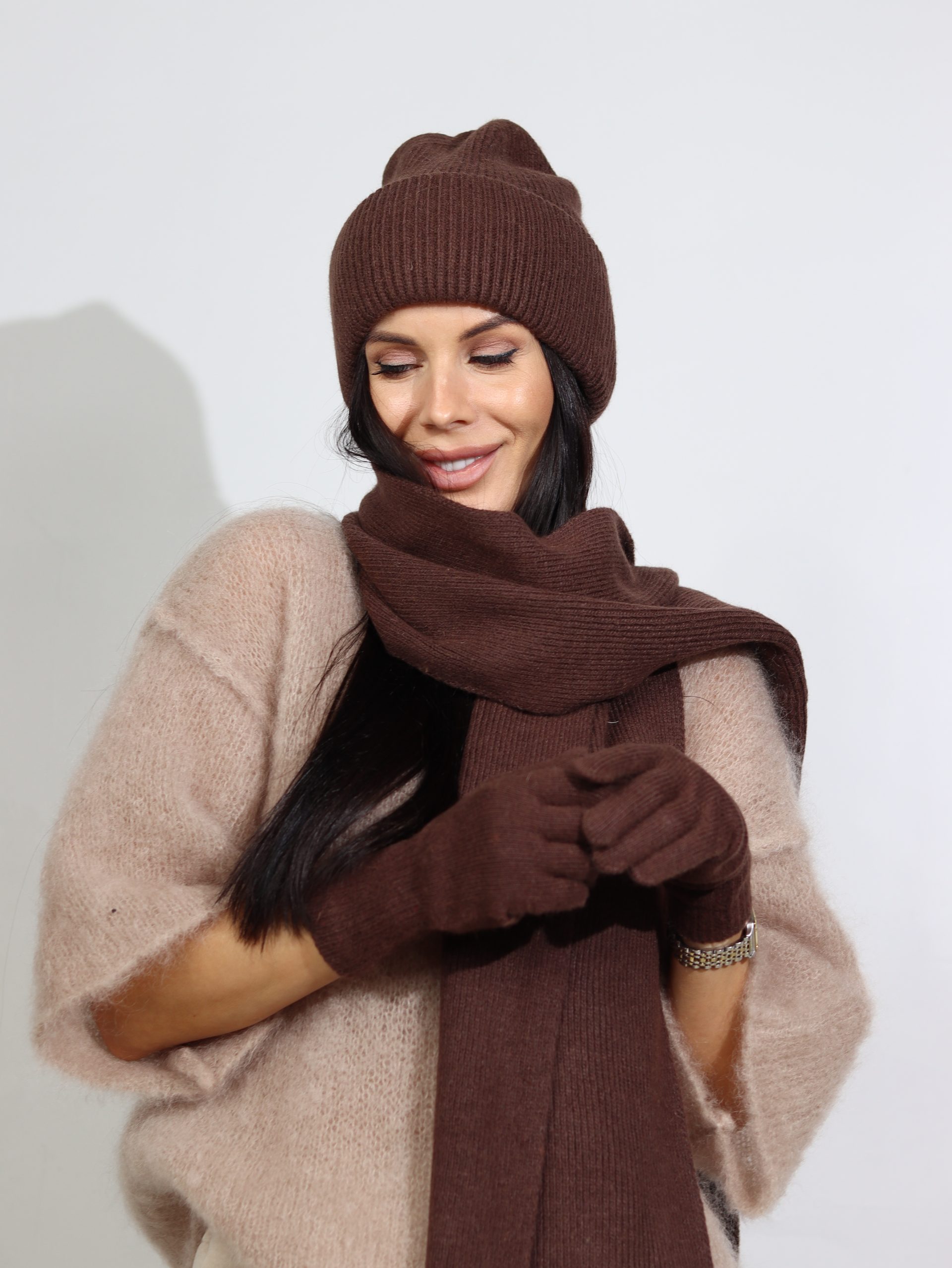 Šoko/brūna, adīts rudens/ziemas aksesuāru komplekts – 16978