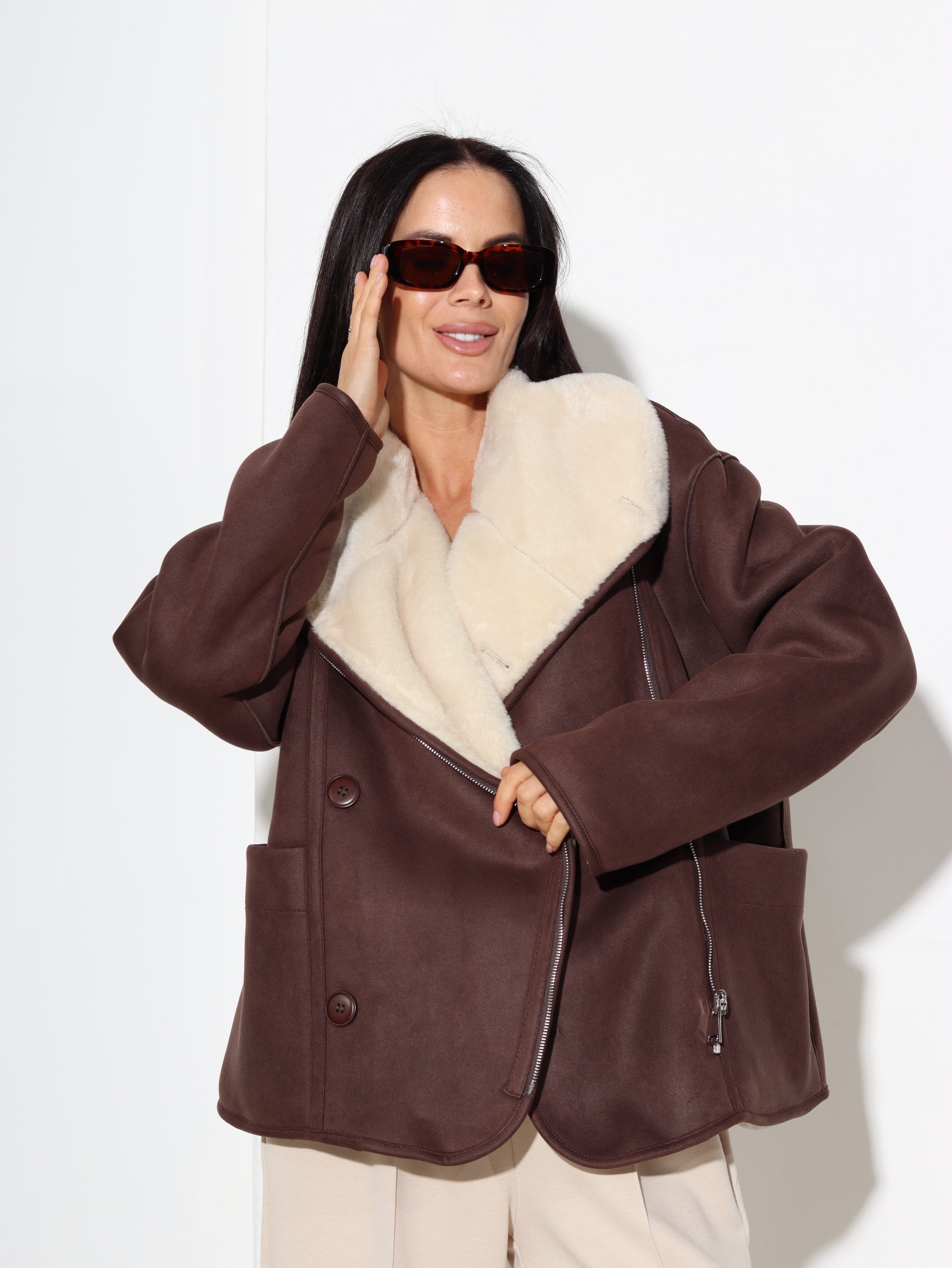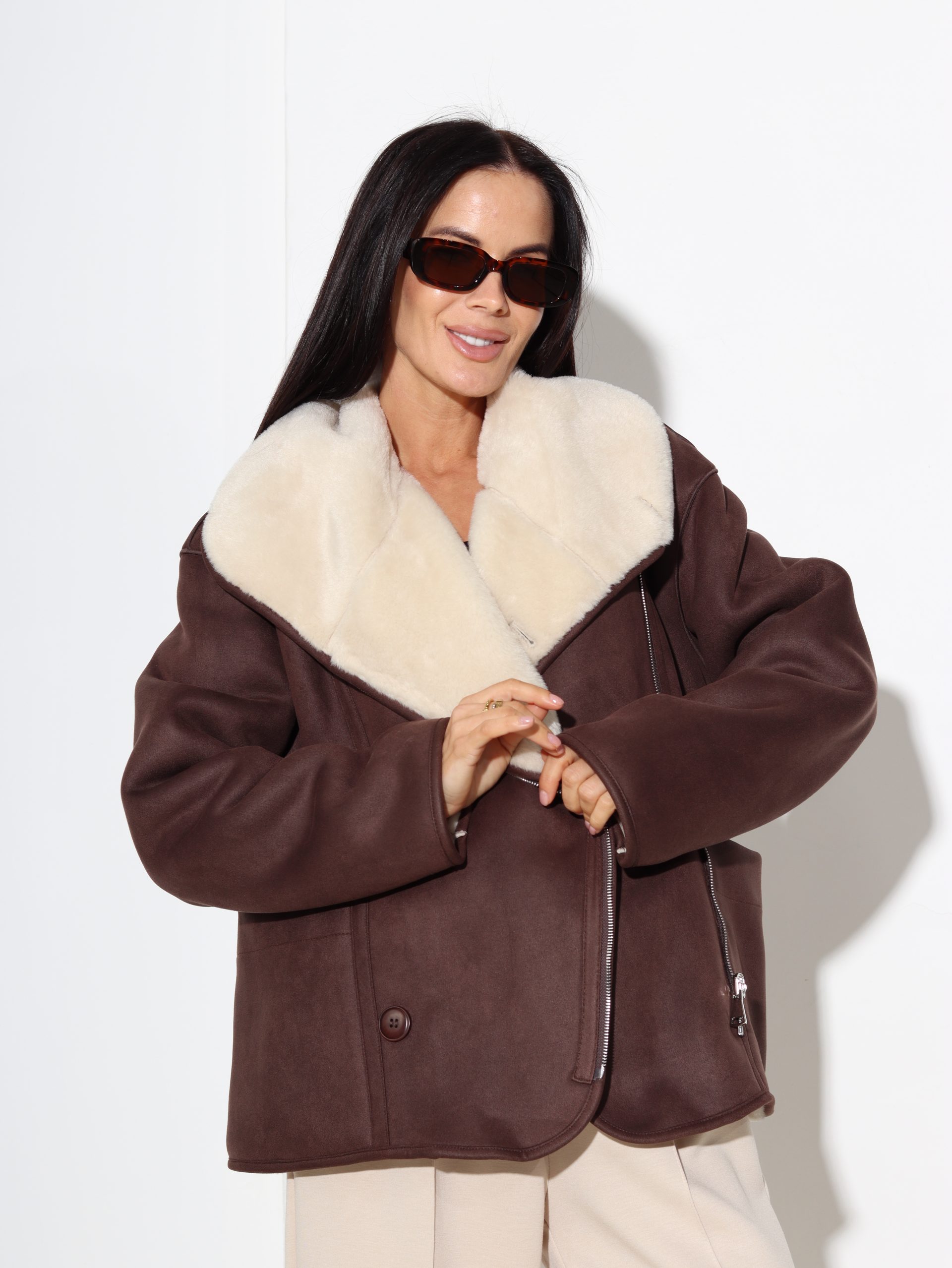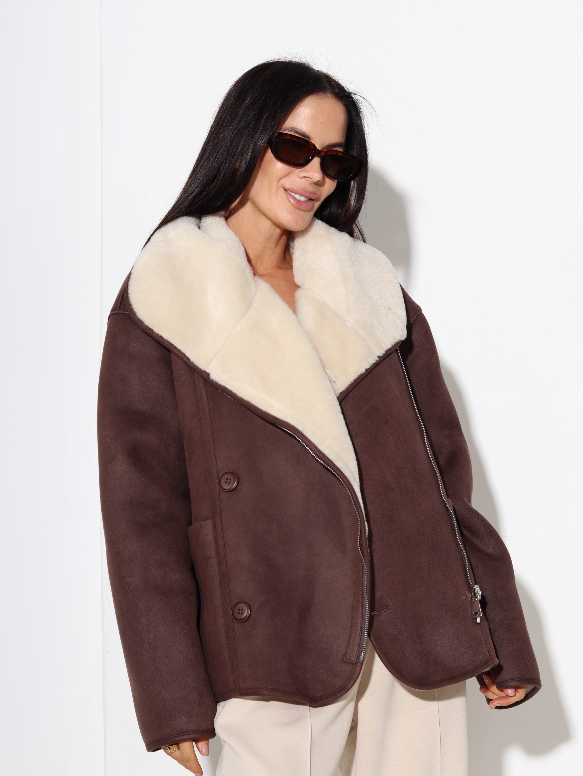 Šoko/brūna+ bēša divpusēja virsjaka ar apkali – 17177