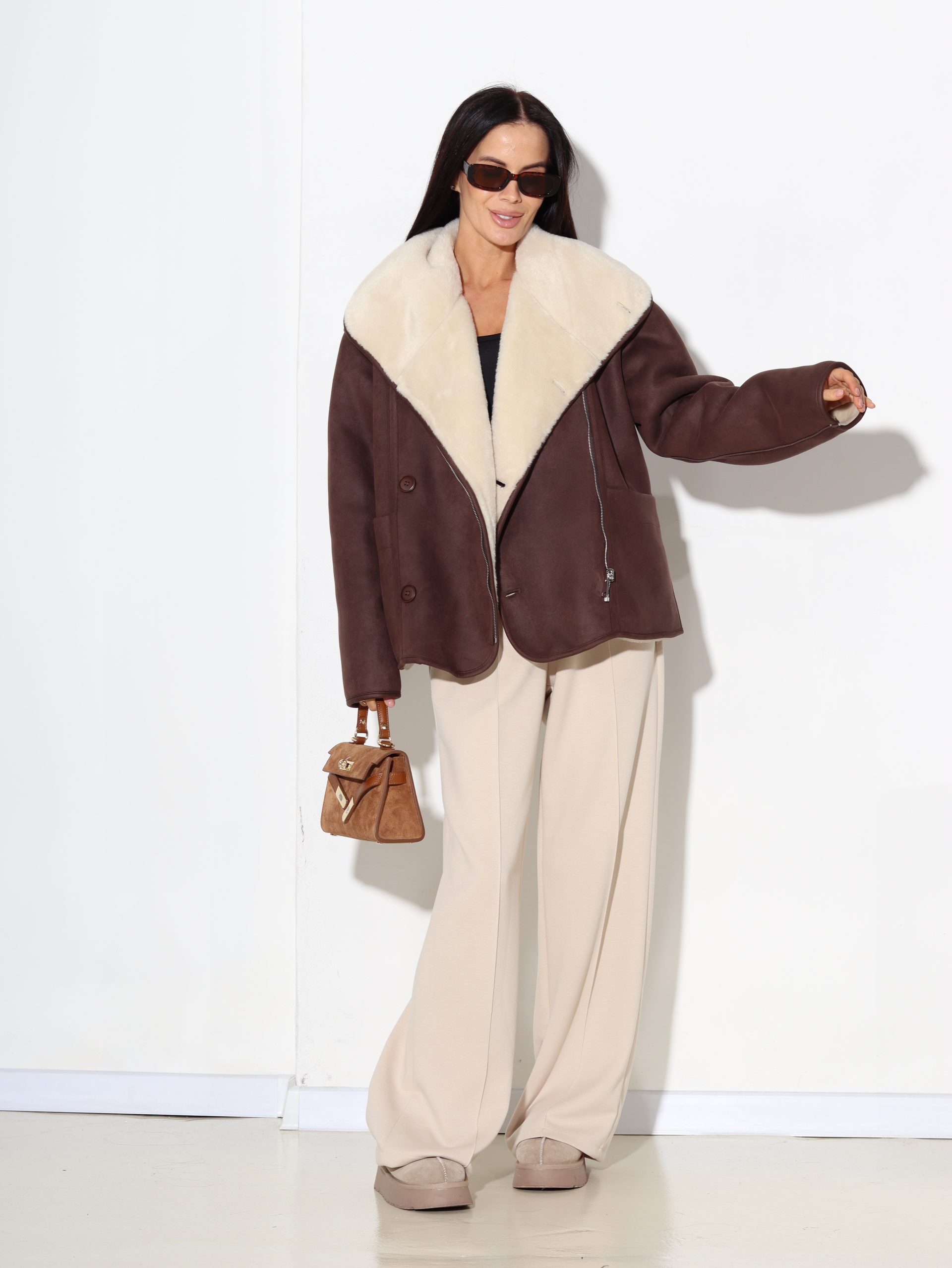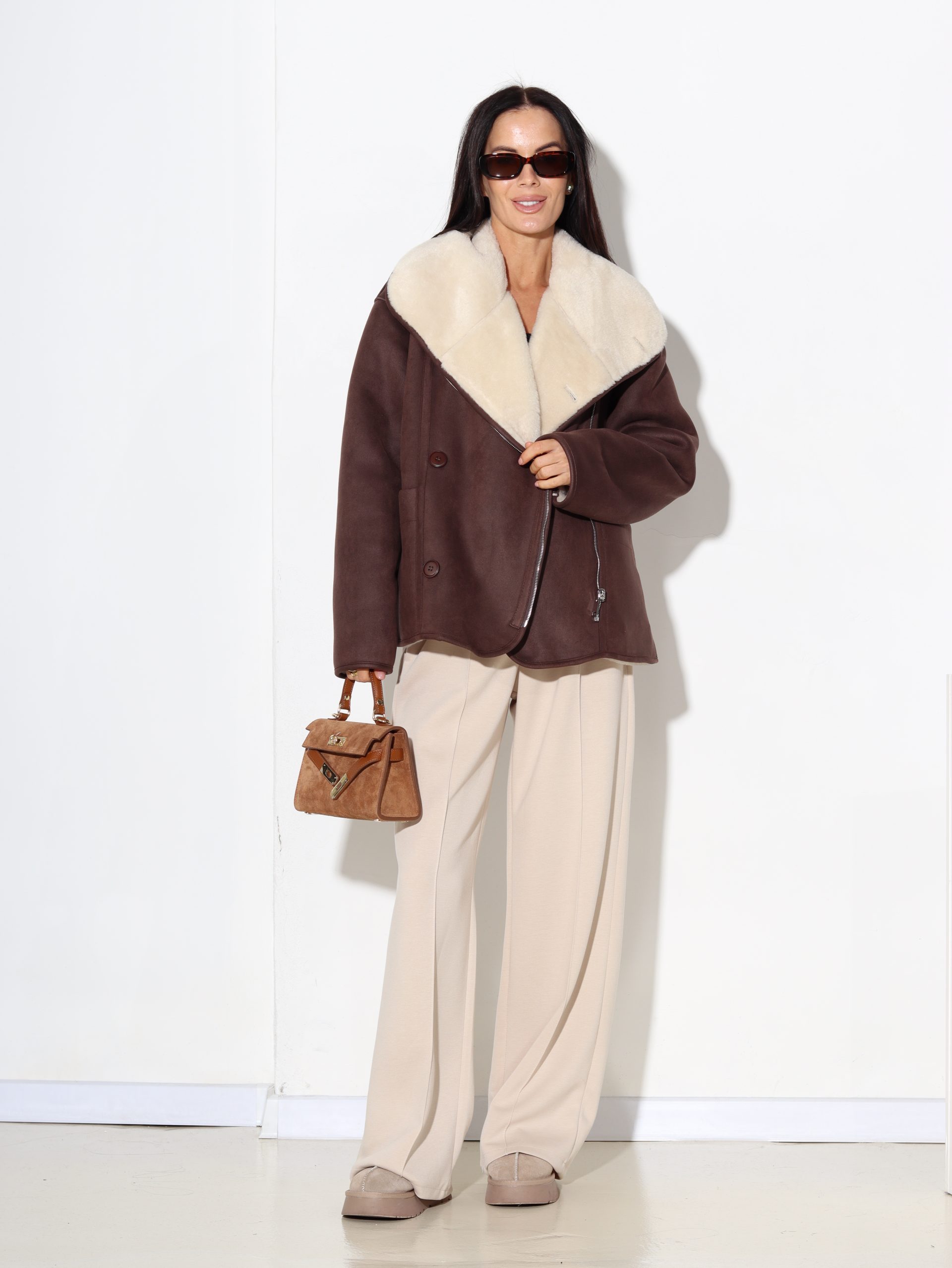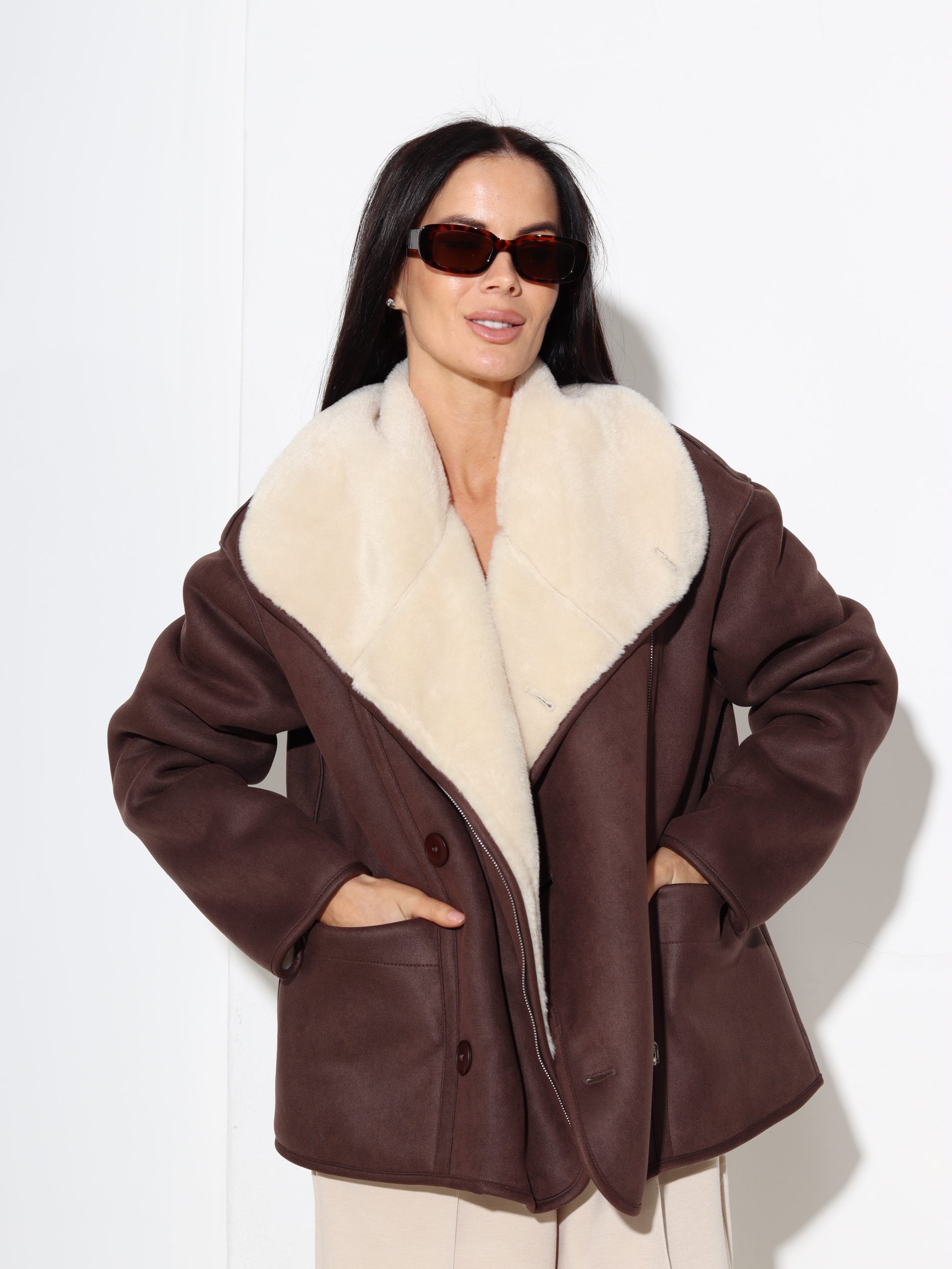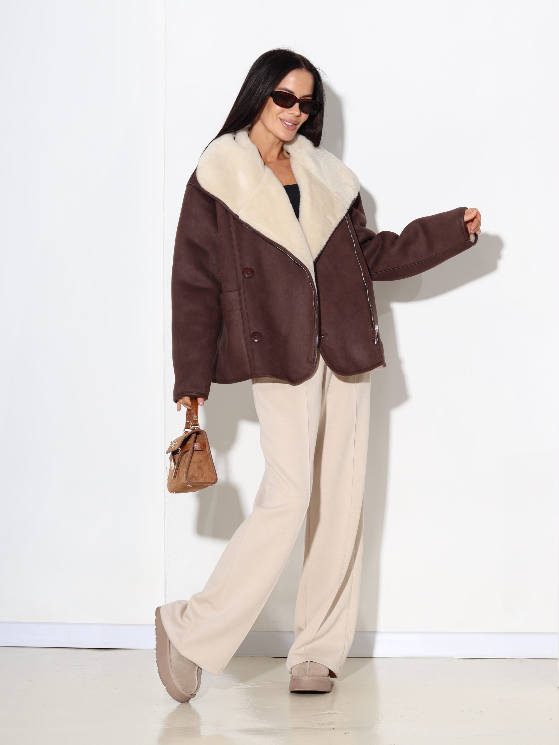 Šoko/brūna+ bēša divpusēja virsjaka ar apkali – 17177