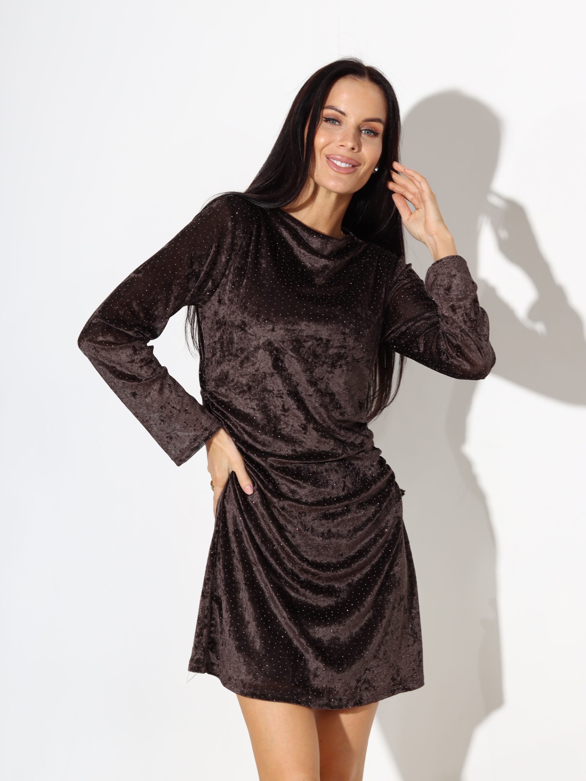 Šoko/ brūna īsa samta kleita ar spīdumiņiem – 17745