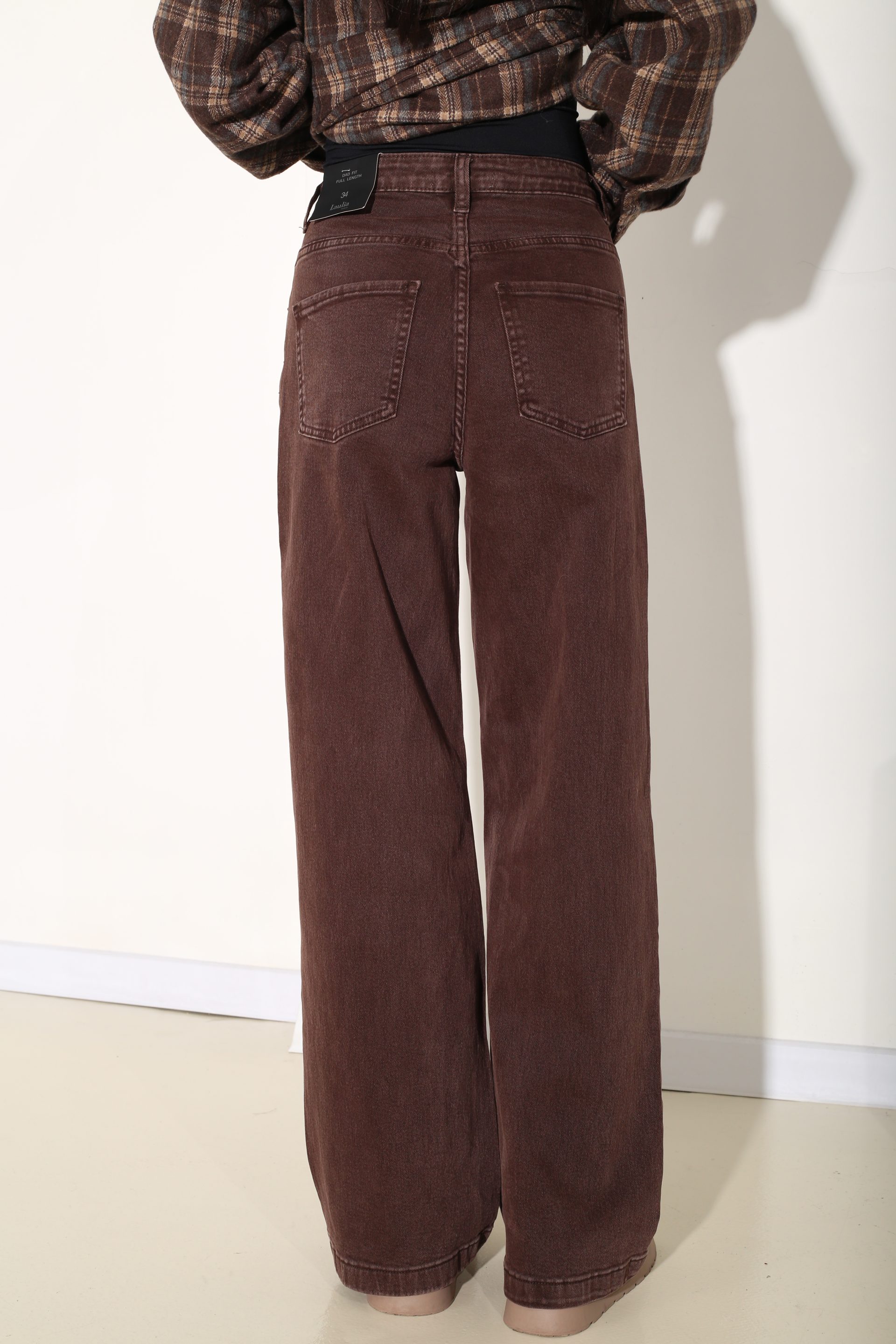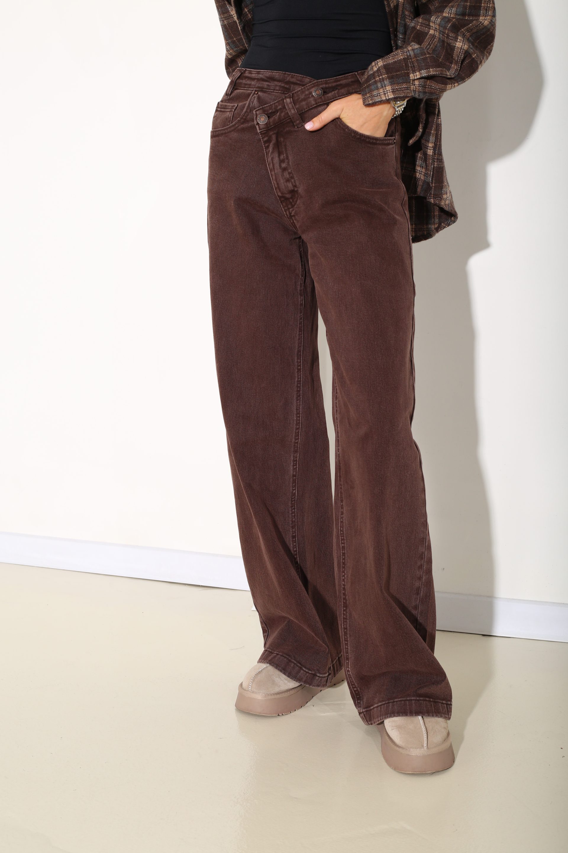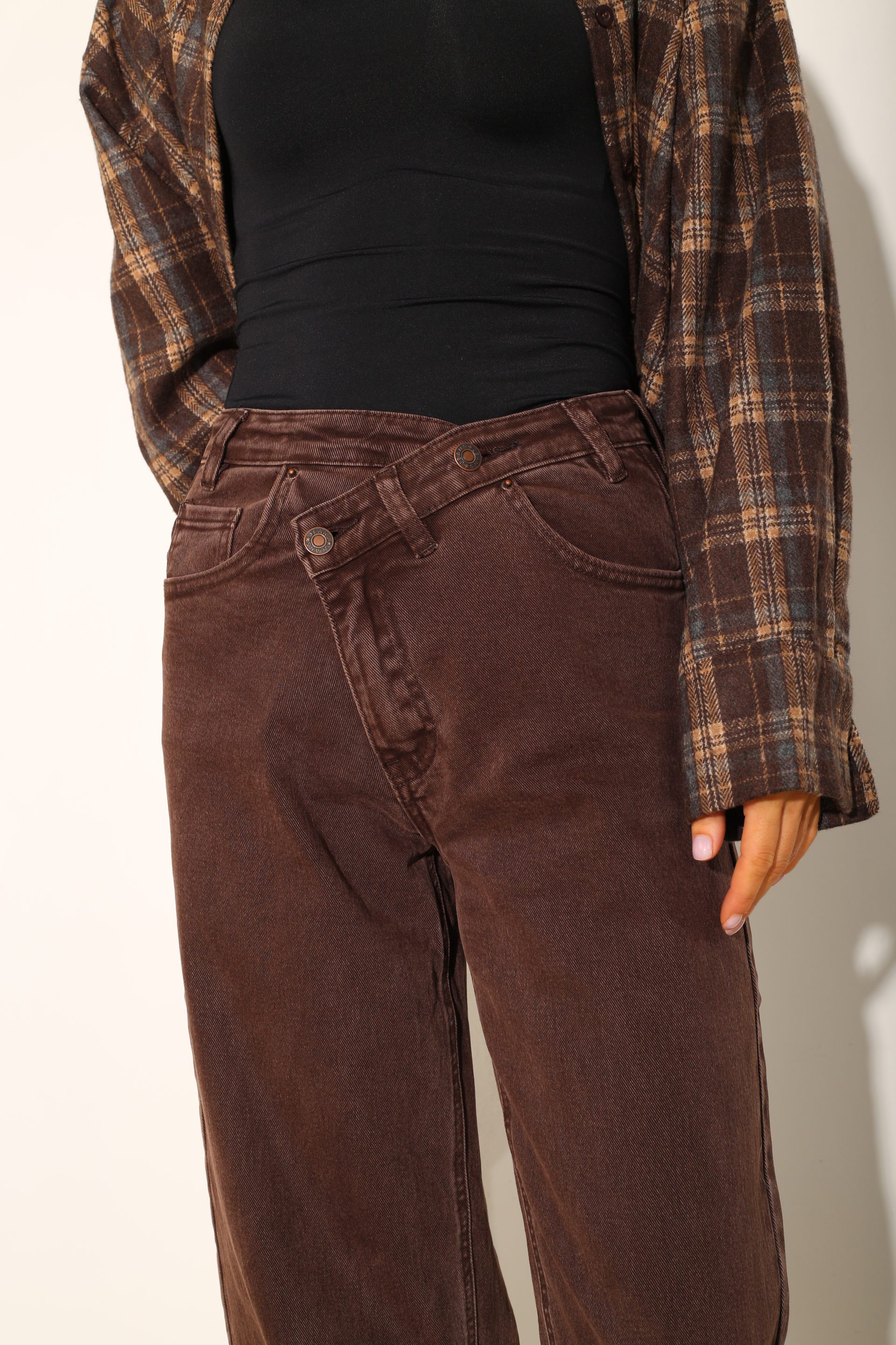Šoko/brūnas džinsa bikses ar slīpu pogas aizdari – 17007