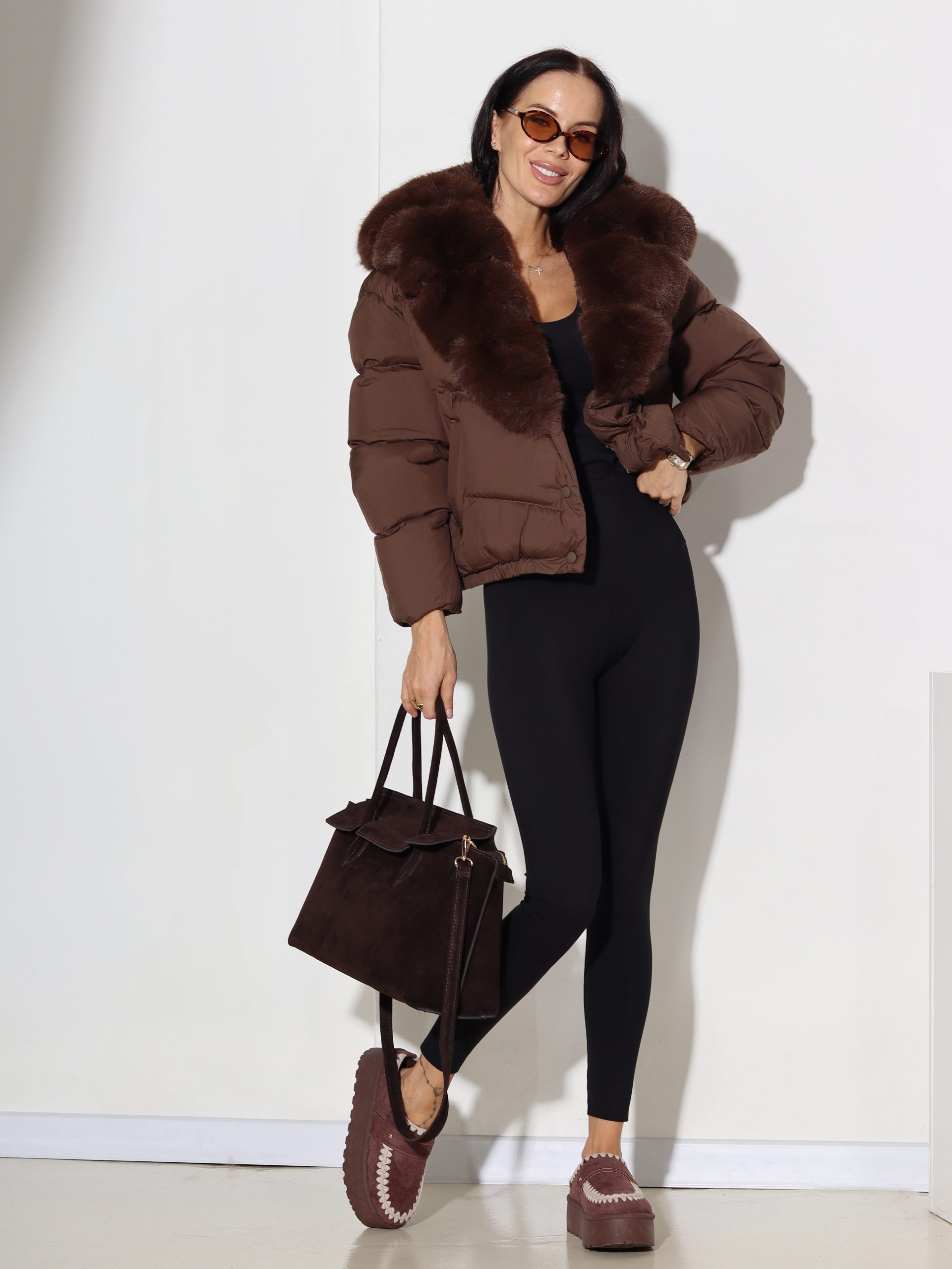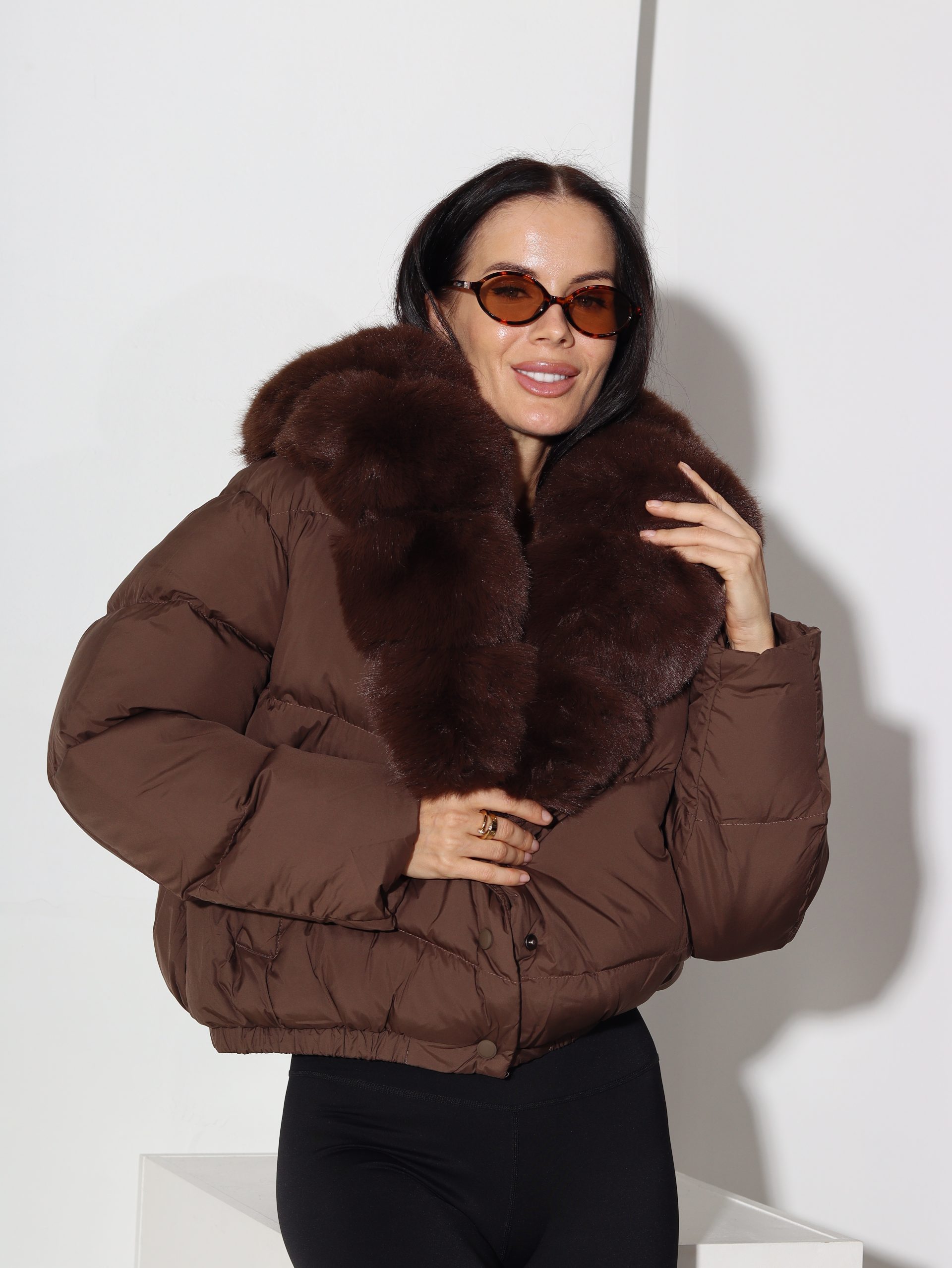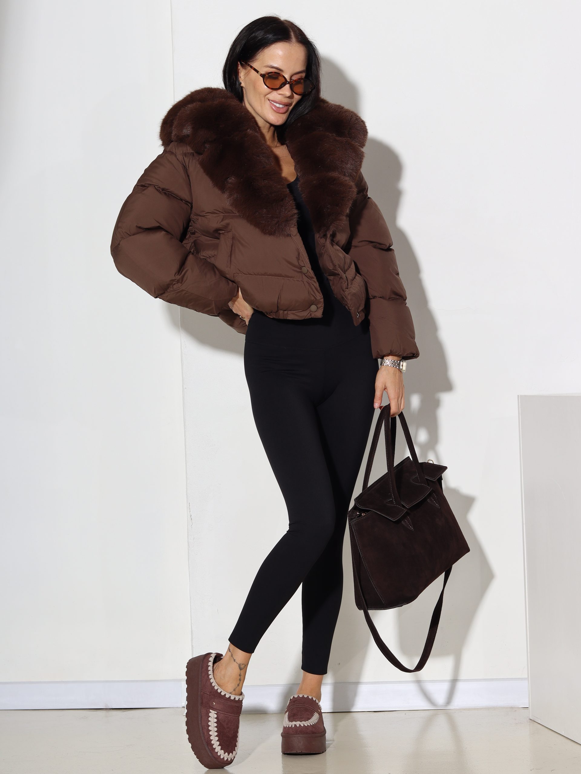 Šoko/ brūna krāsas, īsā virsjaka ar mākslīgās pūkas apkakli – 16867
