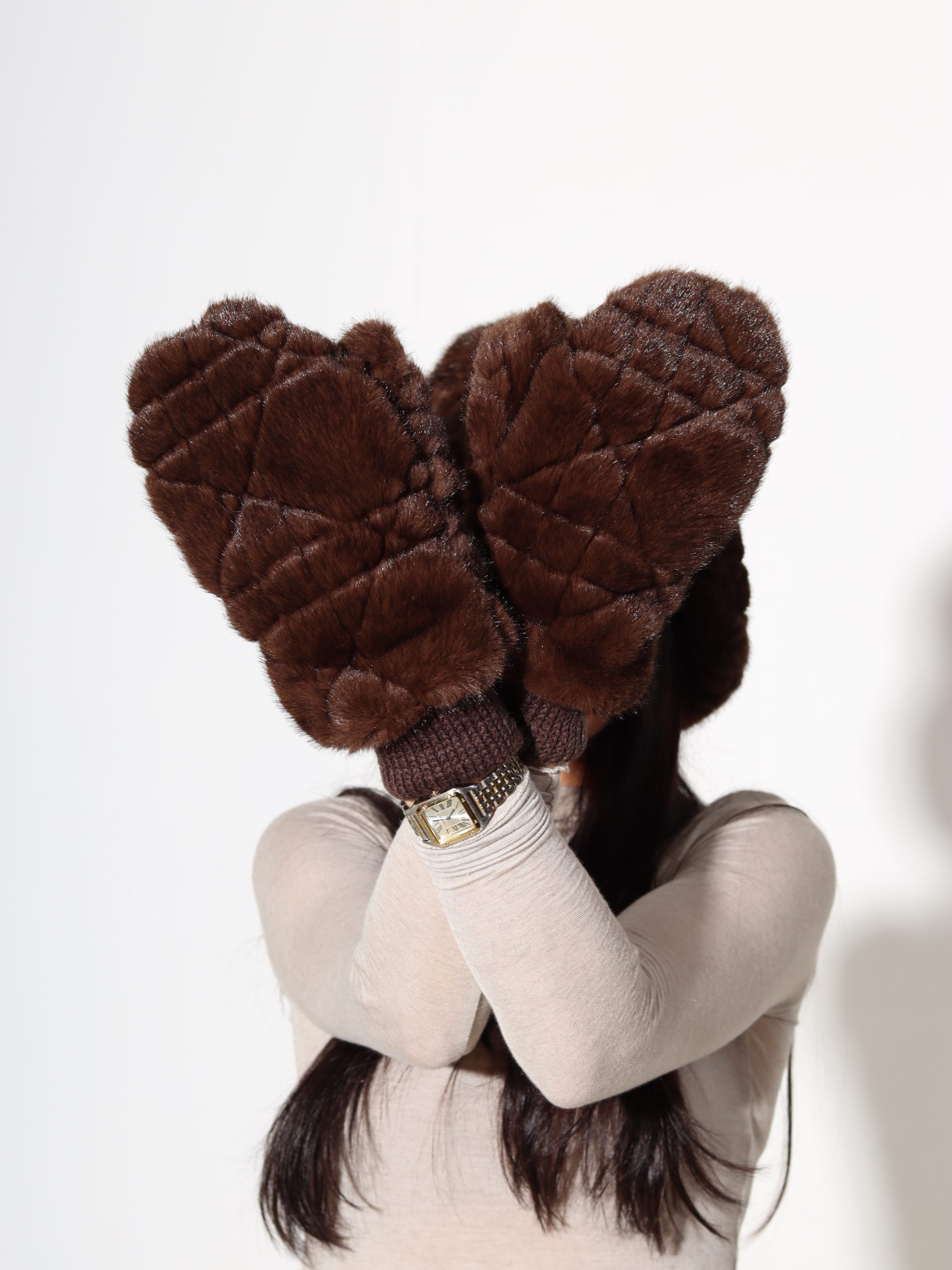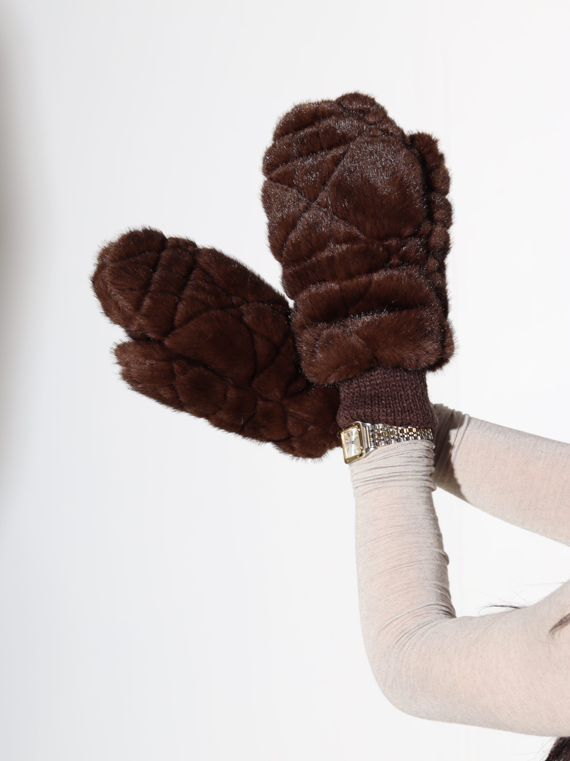 Šoko/brūni pūkaini cimdi- dūraiņi ar rakstu – 17381