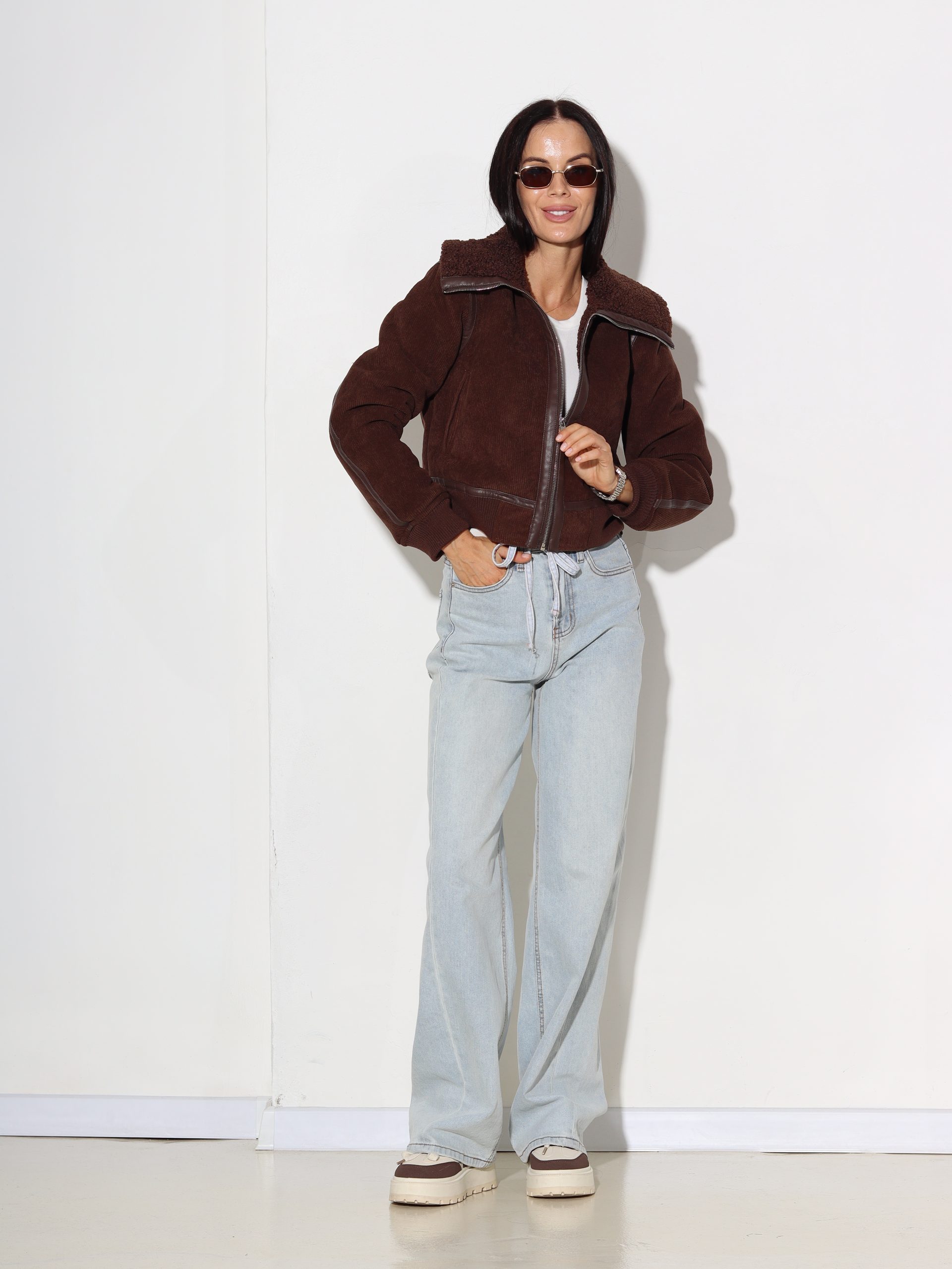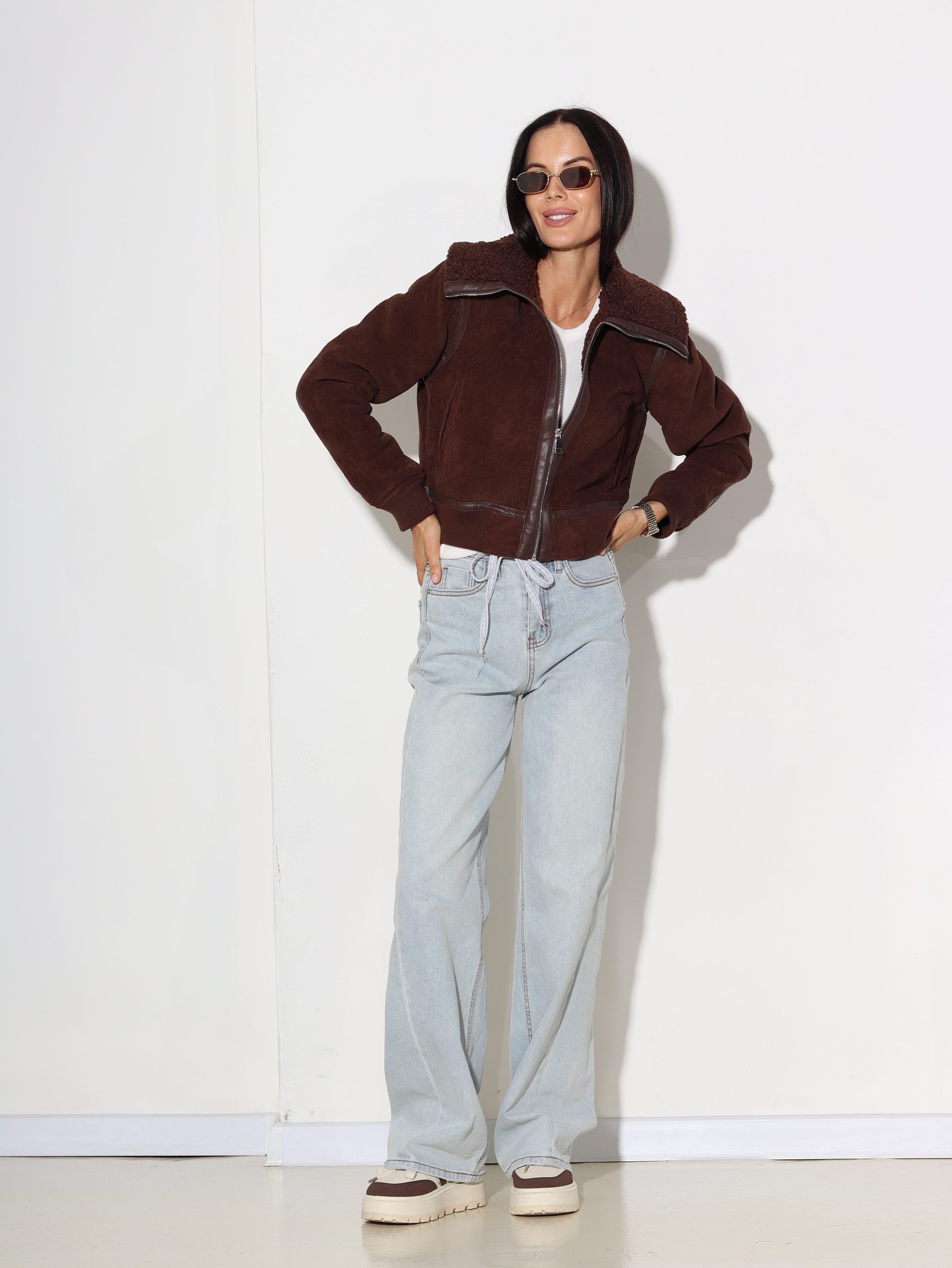 Šoko/brūns velveta bomberjaka a siltinājumu- 16383