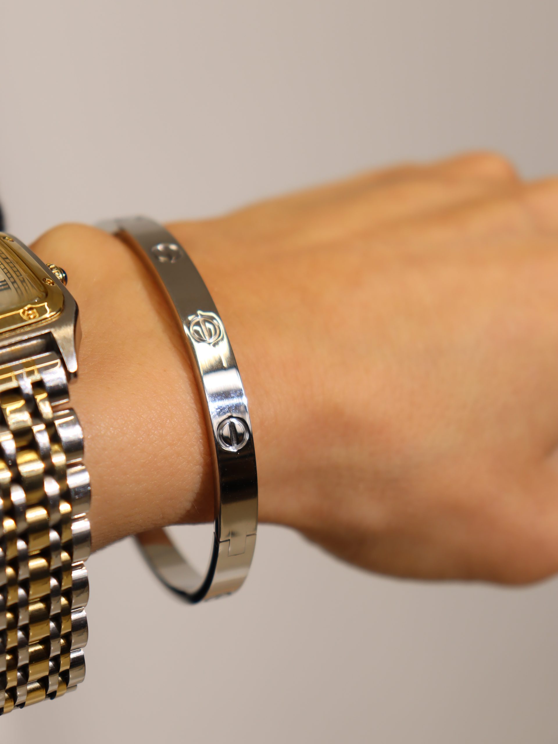 Sudraba krāsas rokassprādze ar gravējumu – 17167
