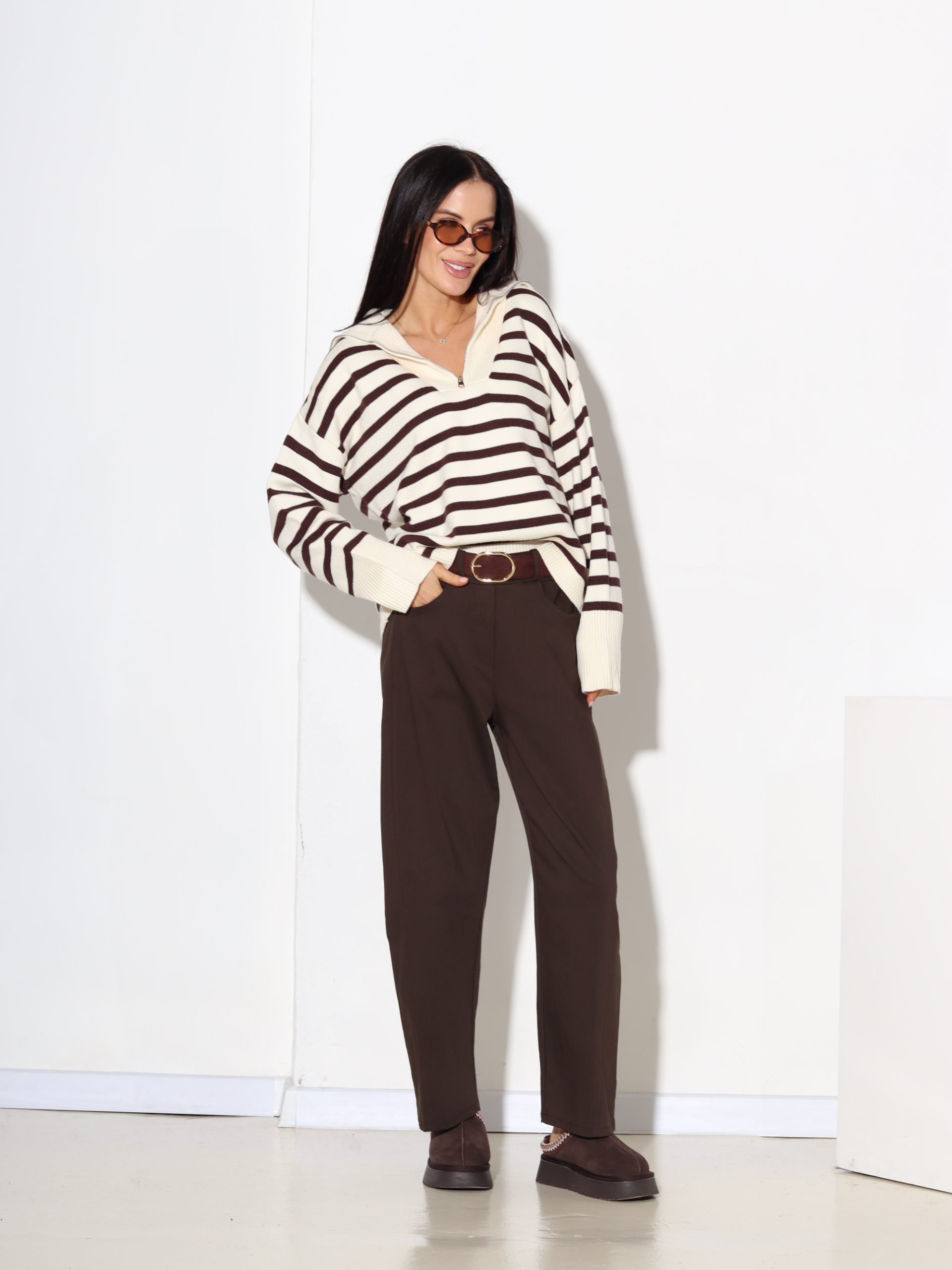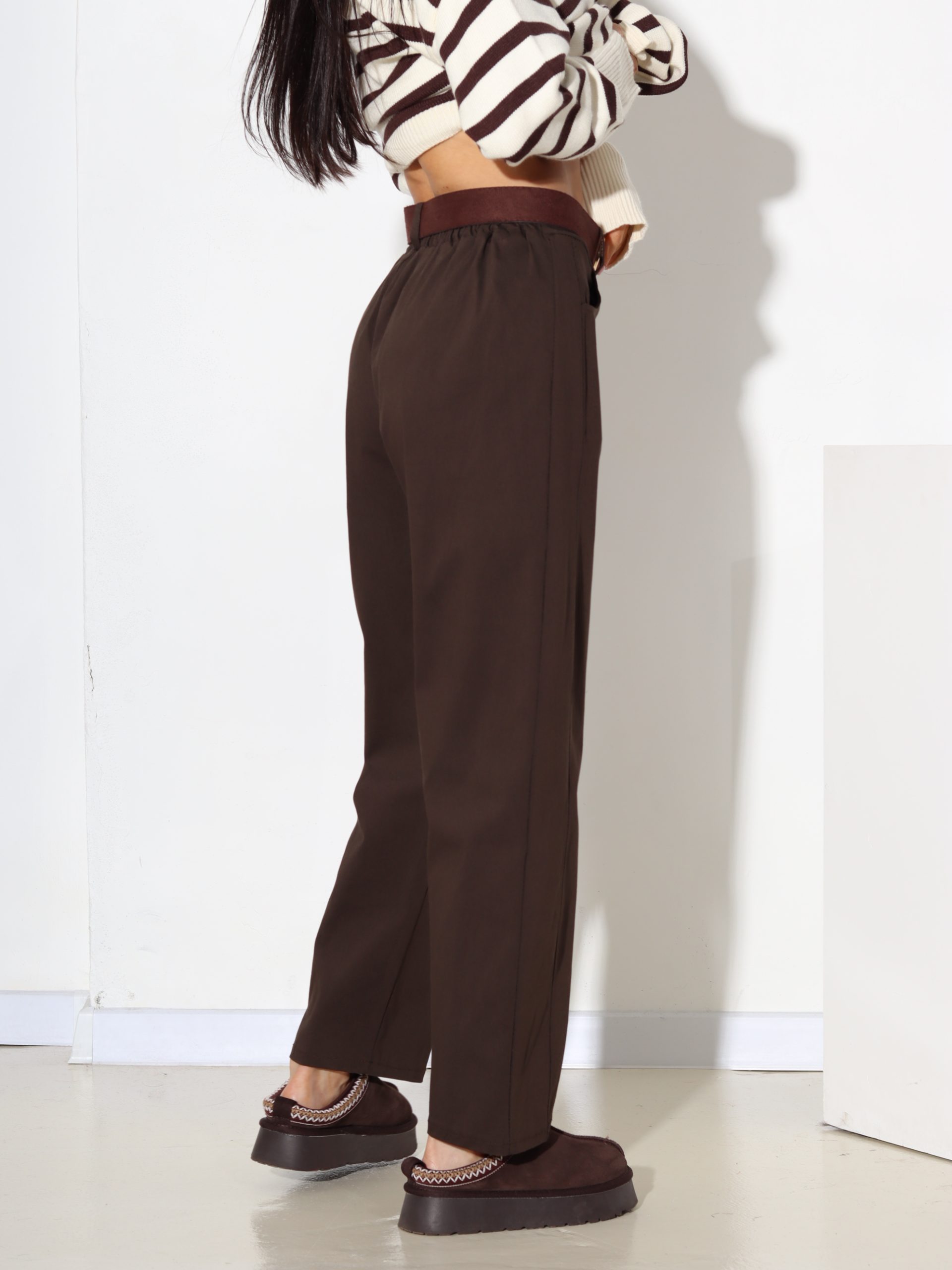 T.brūnas bikses, bieza, elastīga auduma, ar jostiņu – 17458