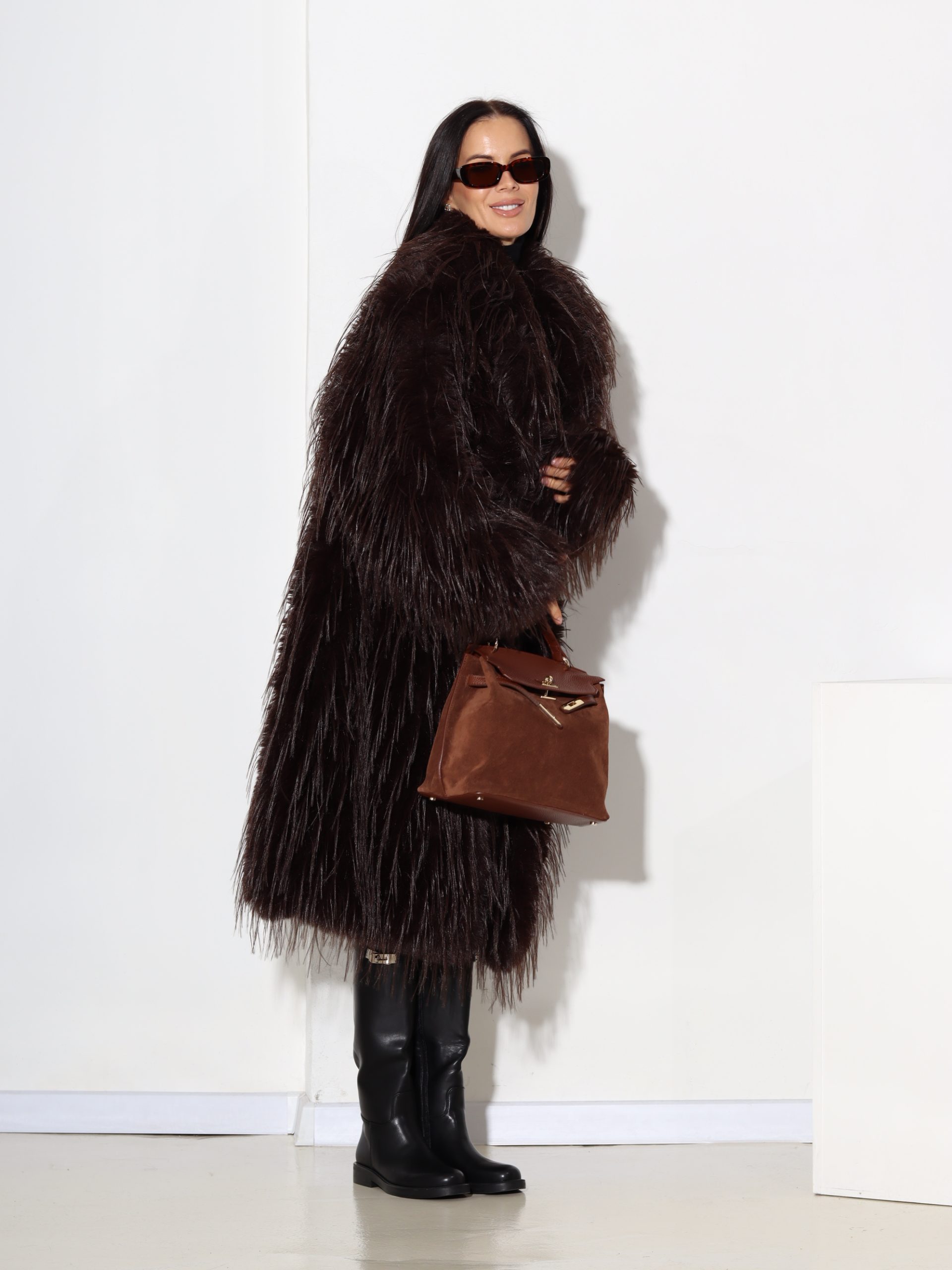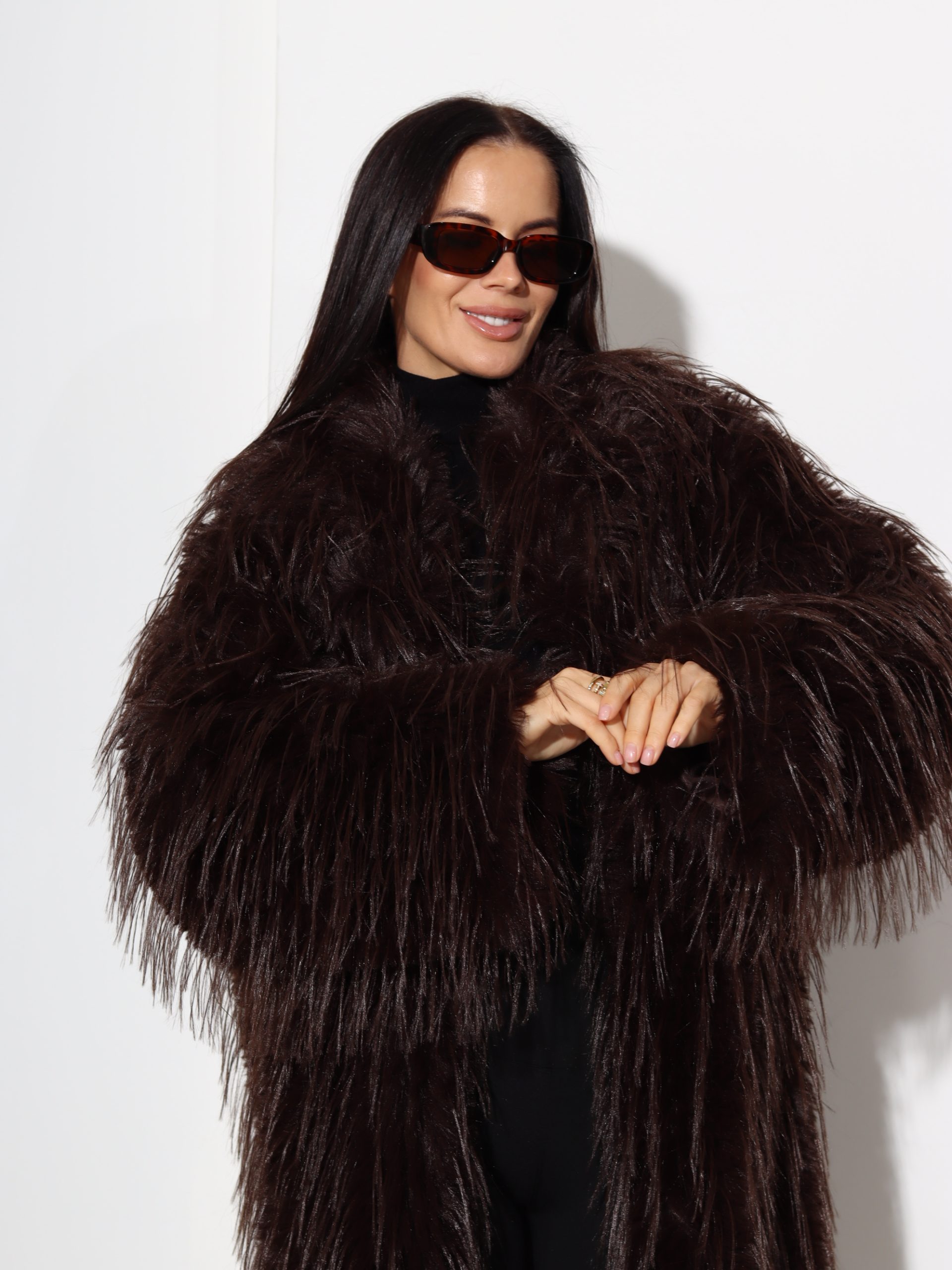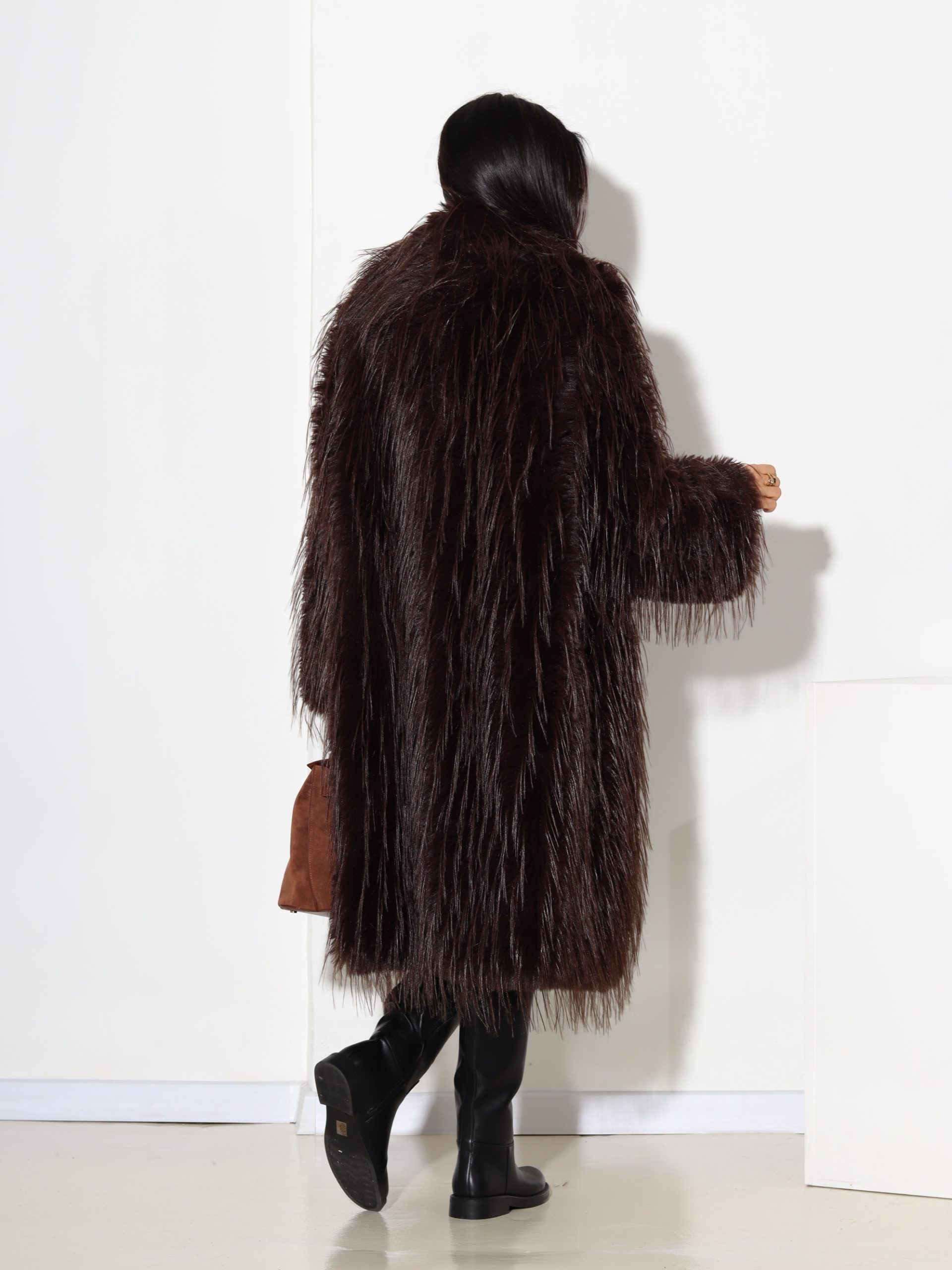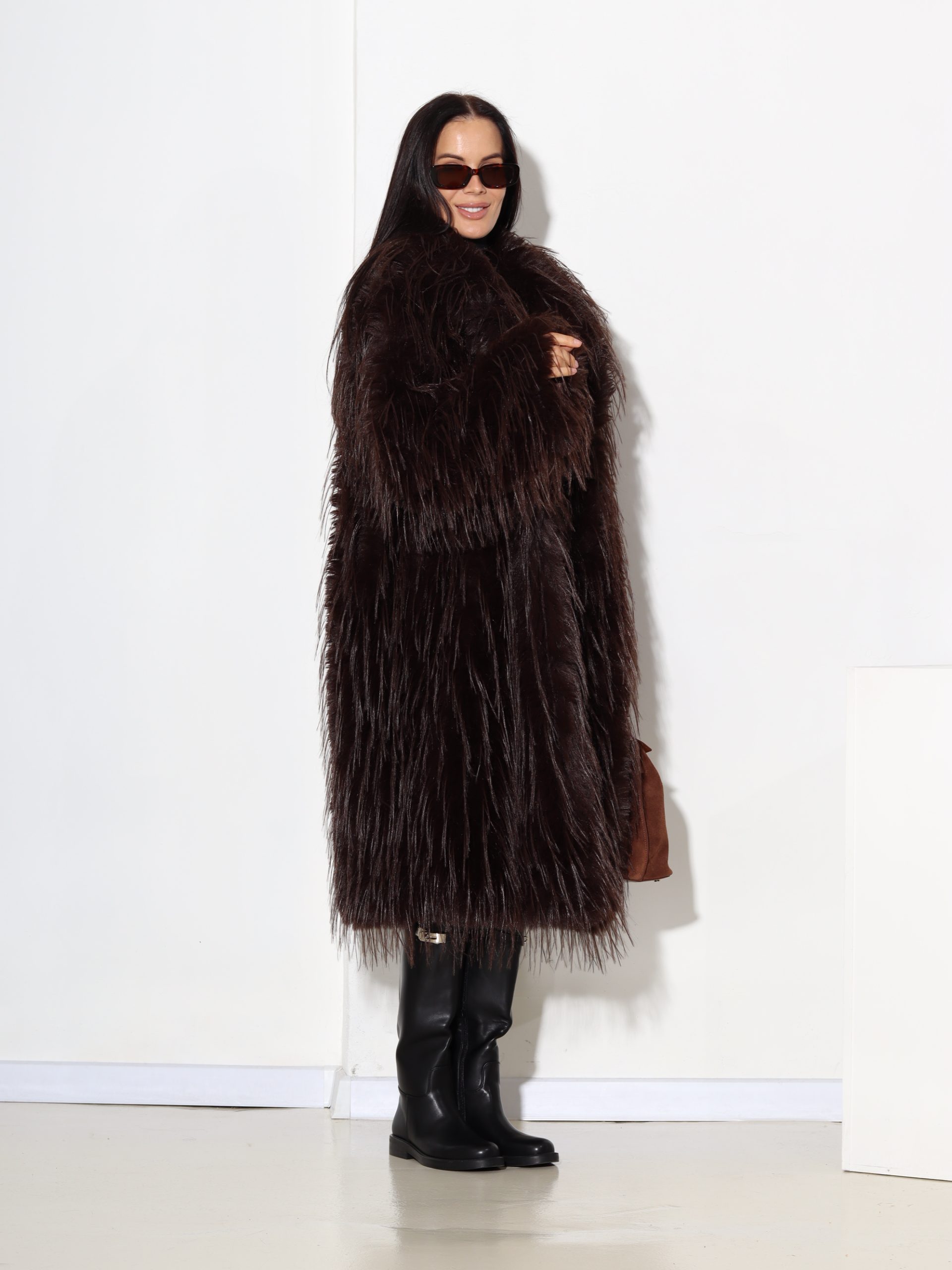 T.brūns garš, brīva piegriezuma m/ā kažoks ar dažāda garuma spalvu – 17325