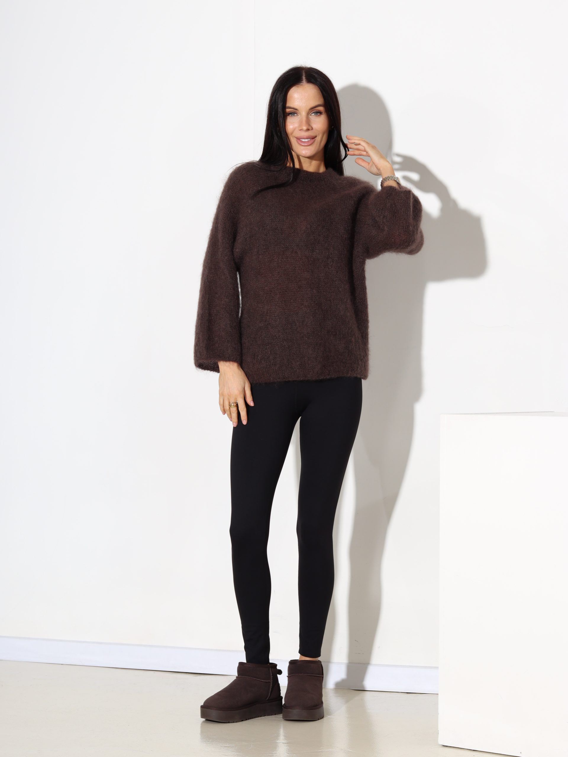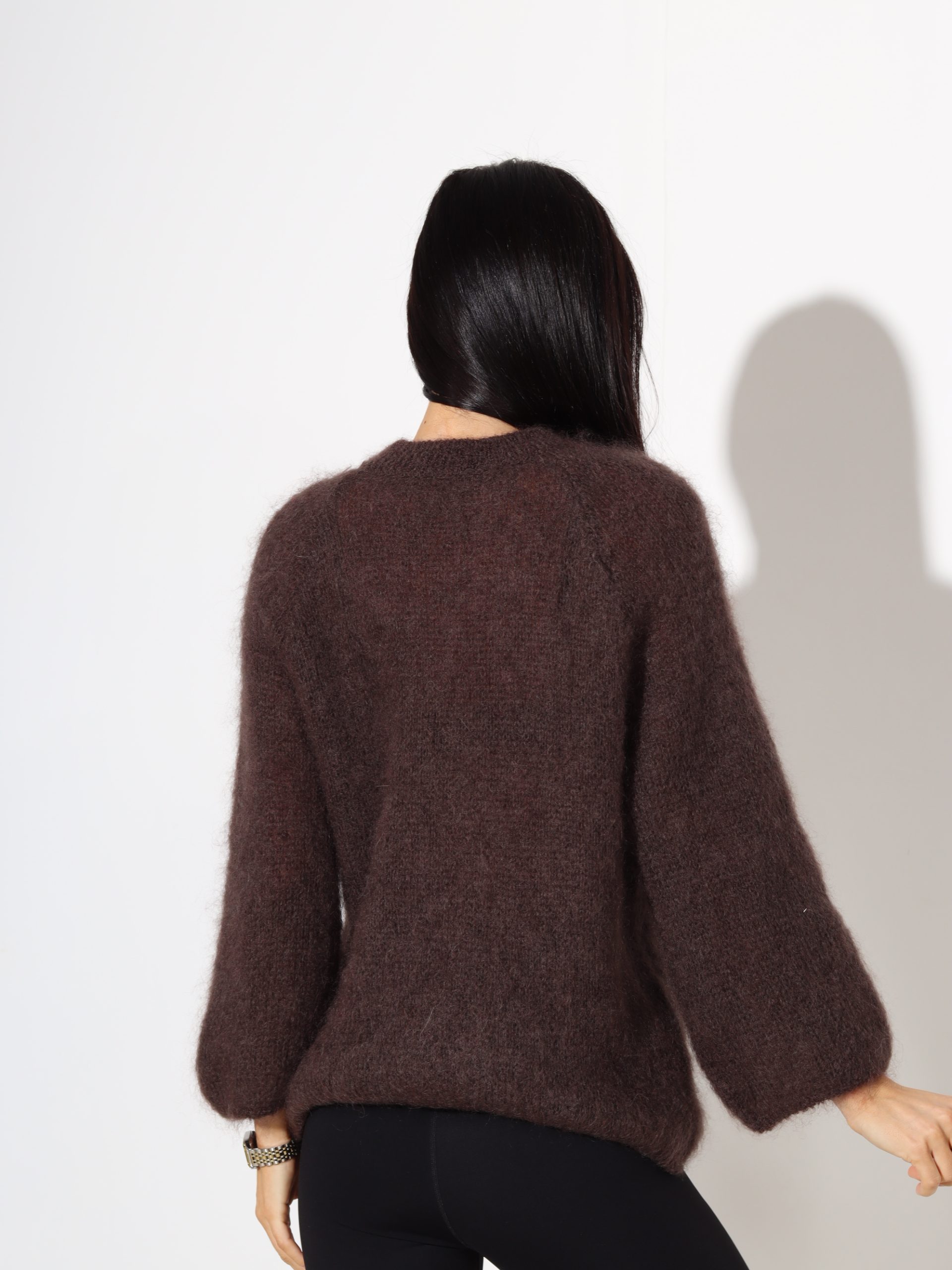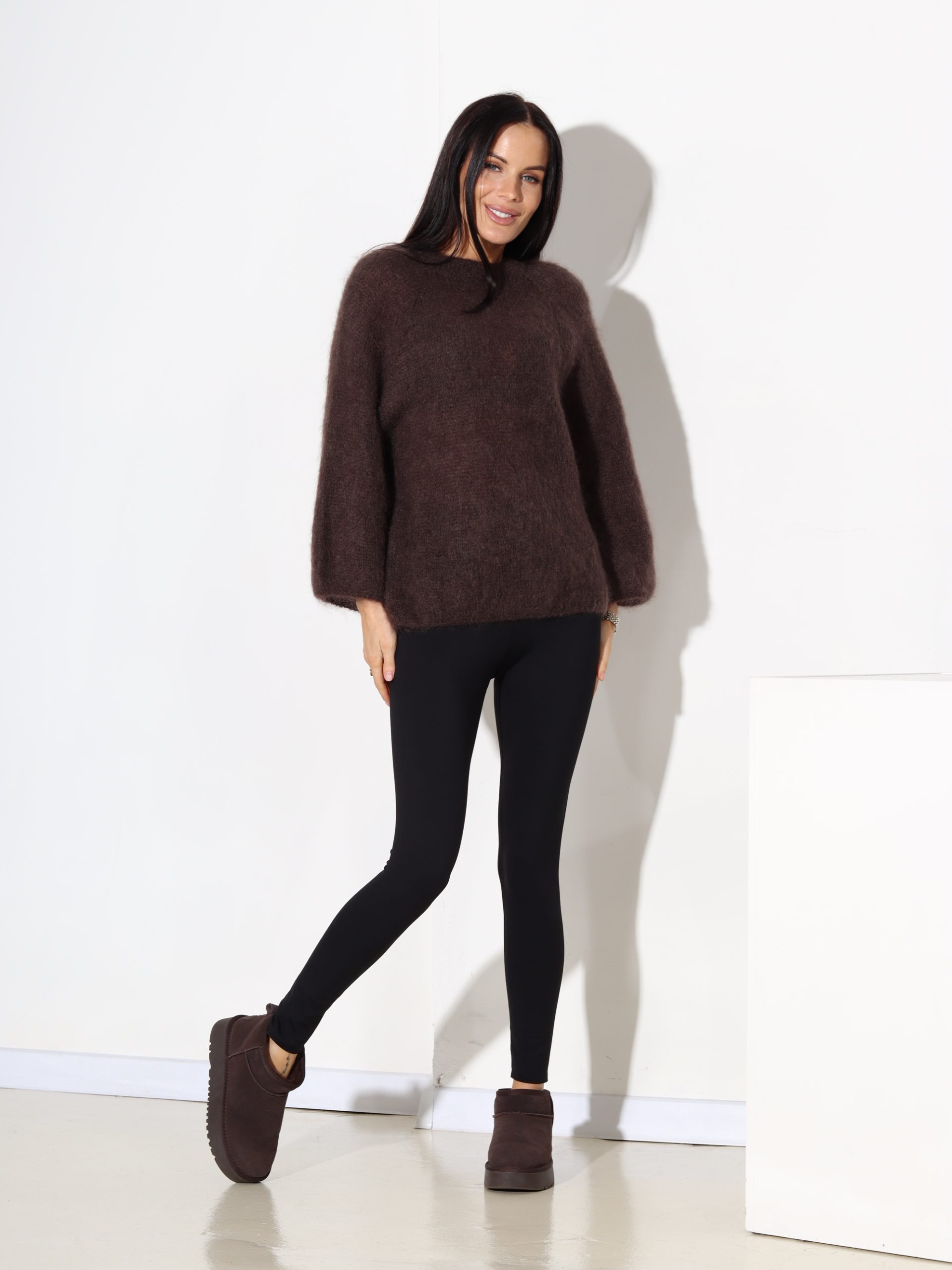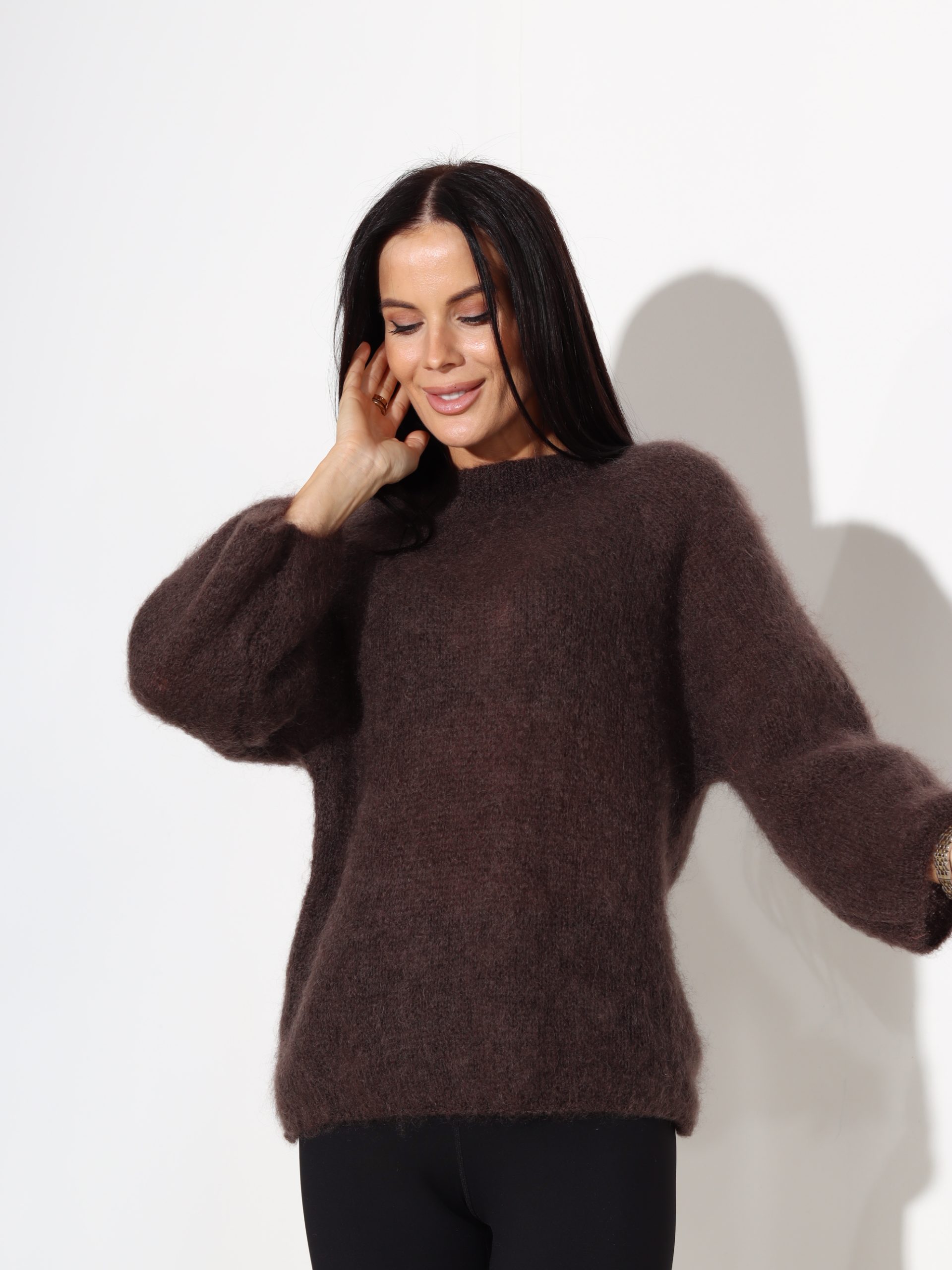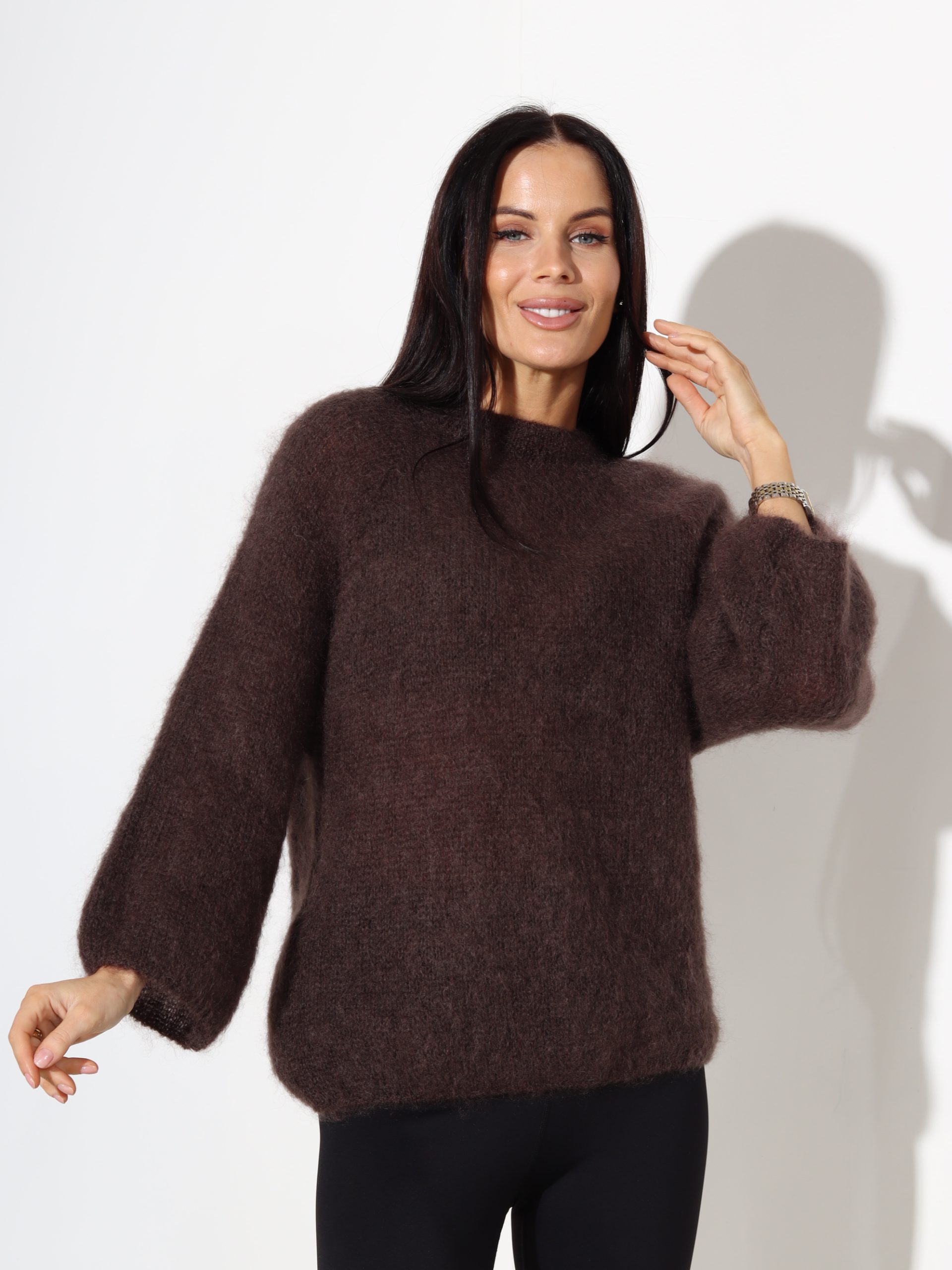 T.brūns mohēras džemperis ar slīpu plecu daļu – 17707