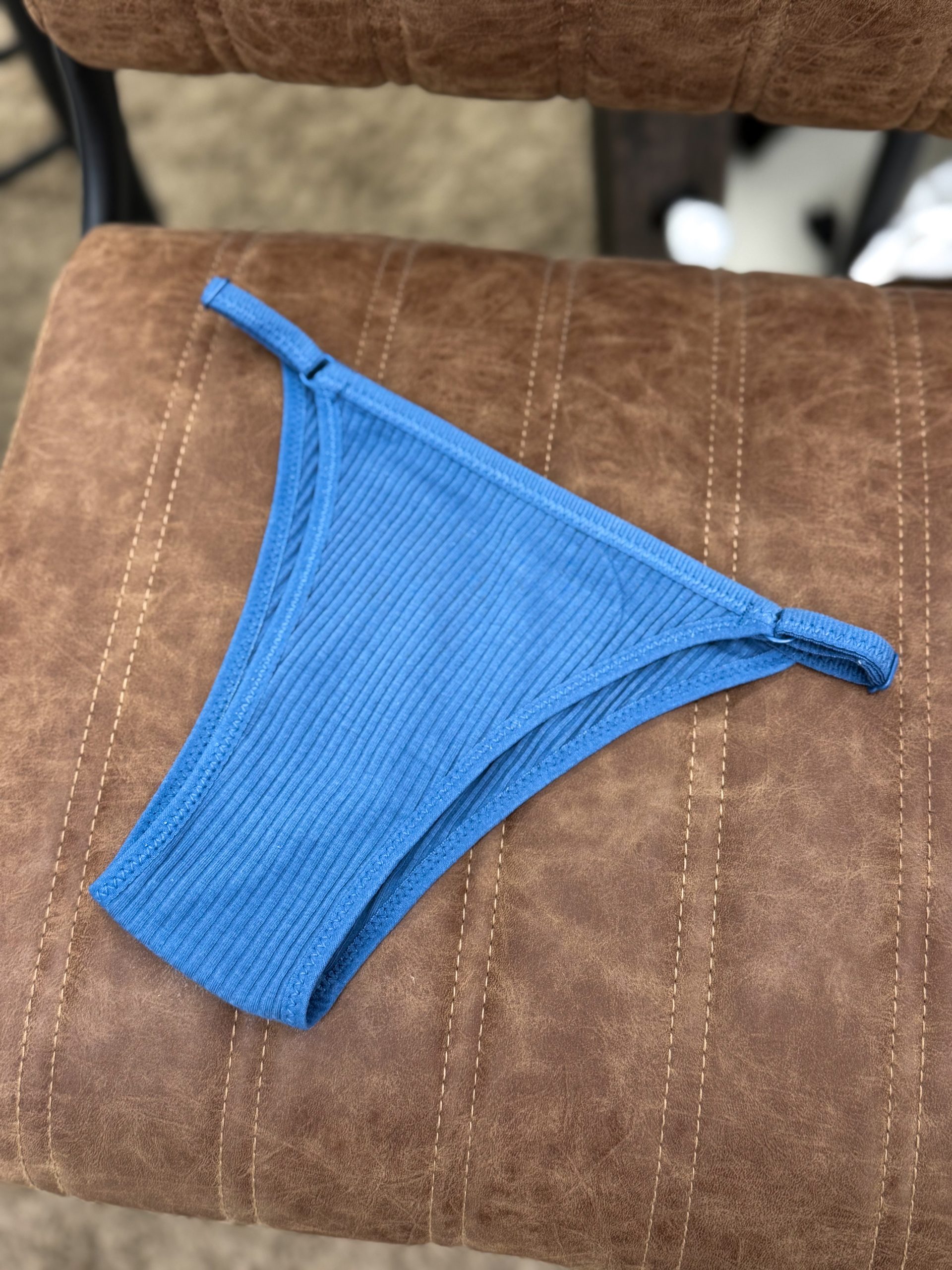 Rievota auduma, brazīļu tipa string biksītes ar sānos iestrādātu daļu, kuru varat regulēt, pielāgojot nepieciešamajam apkārtmēram
