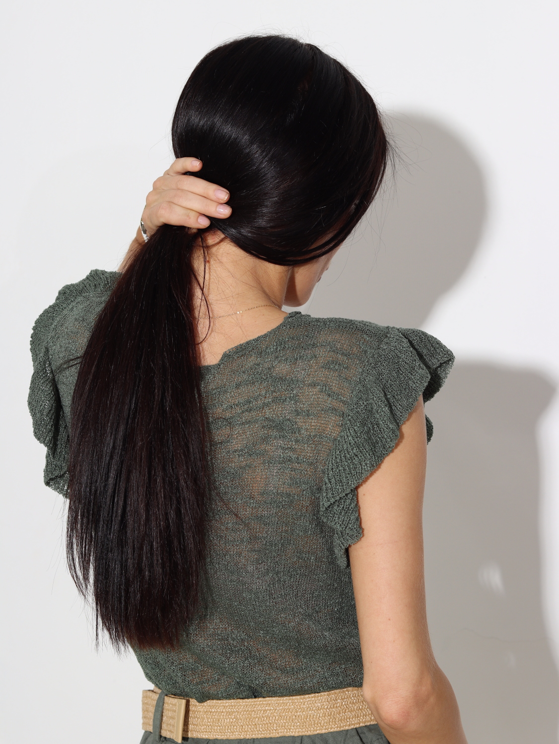 Brīva adījuma džemperītis/ tops bez piedurknēm, piedurkņu maliņā ieadīta rišiņa