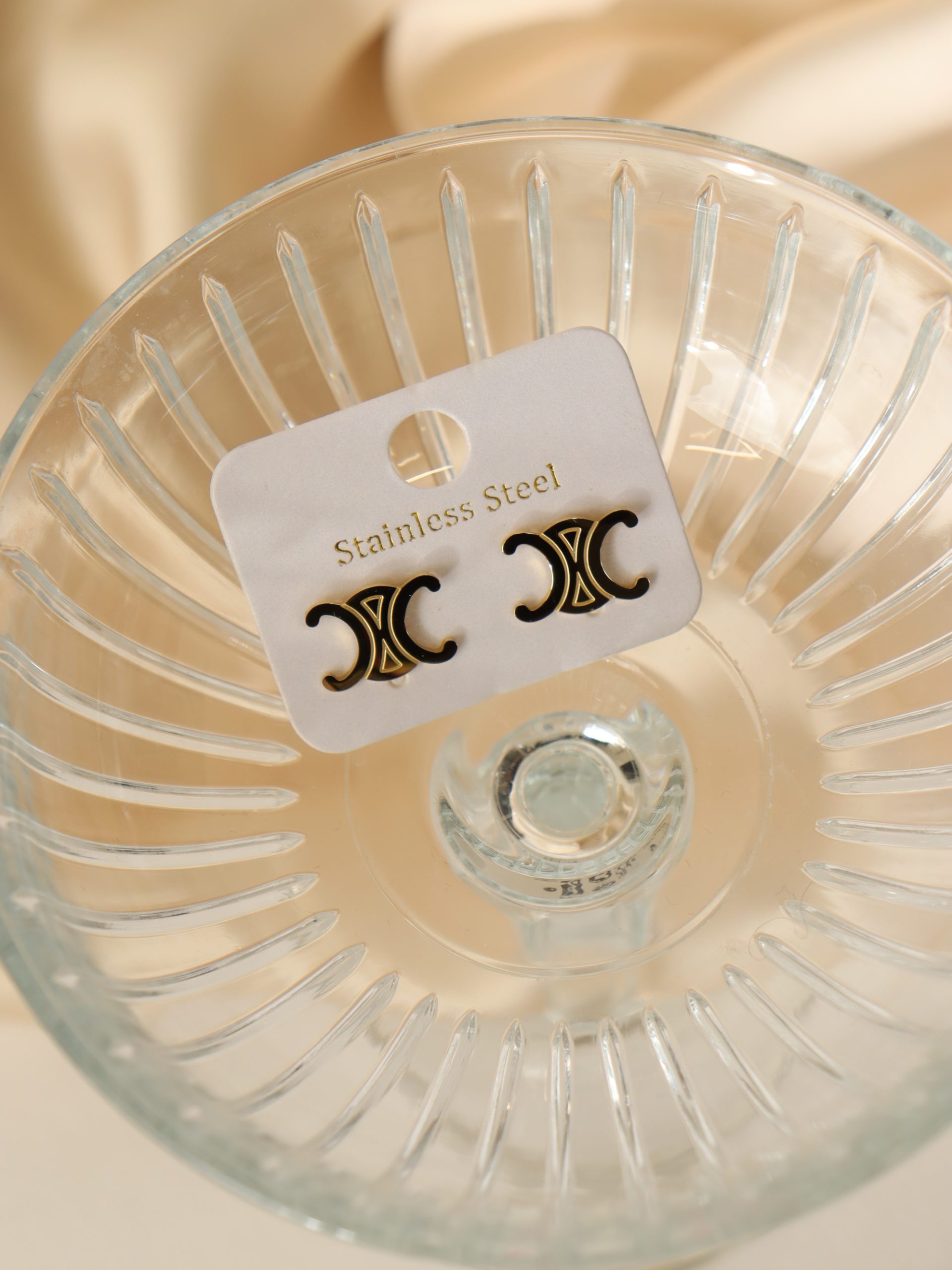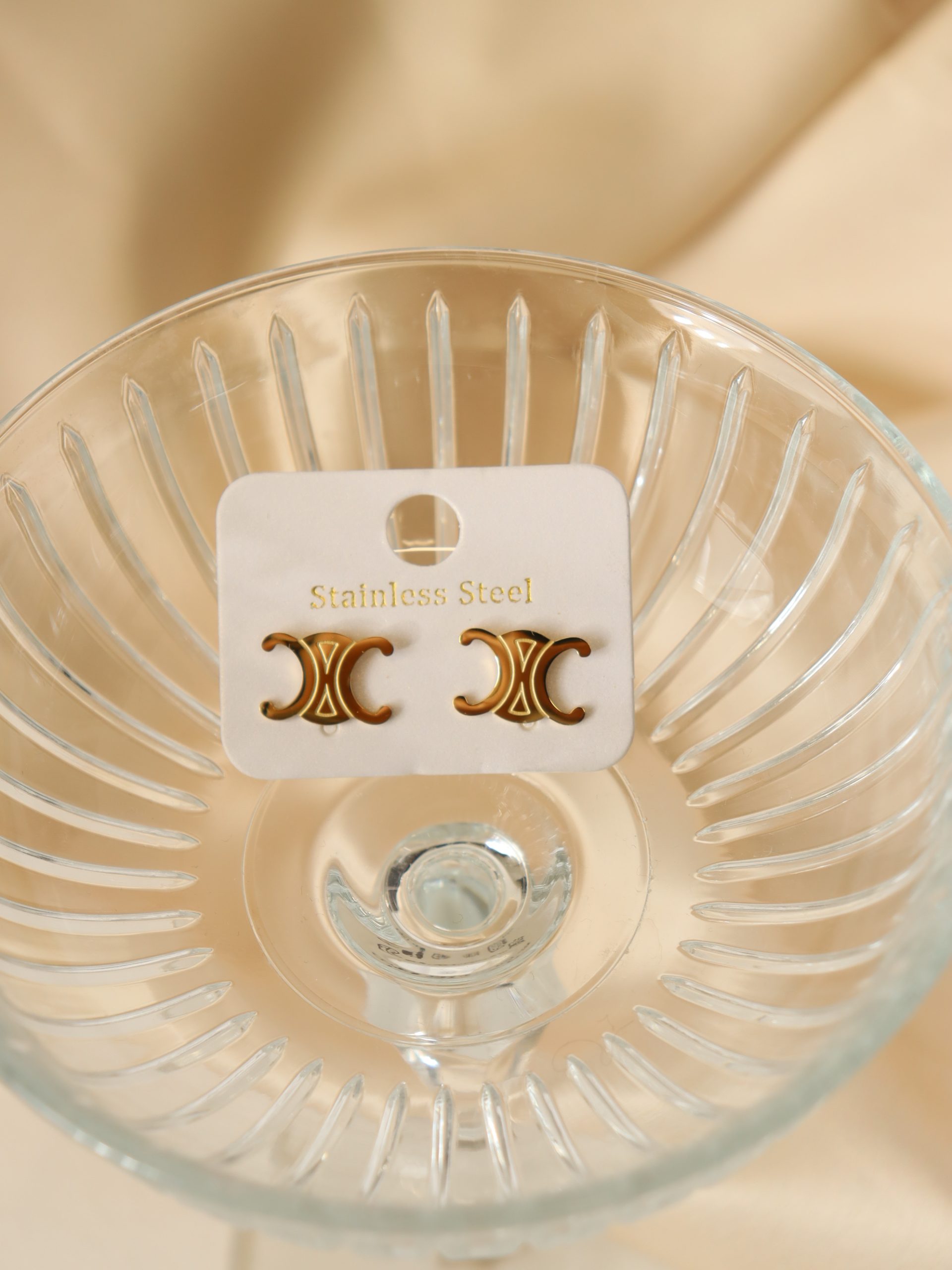 Nagliņas tipa, zelta krāsas auskari ar grāvejumu.