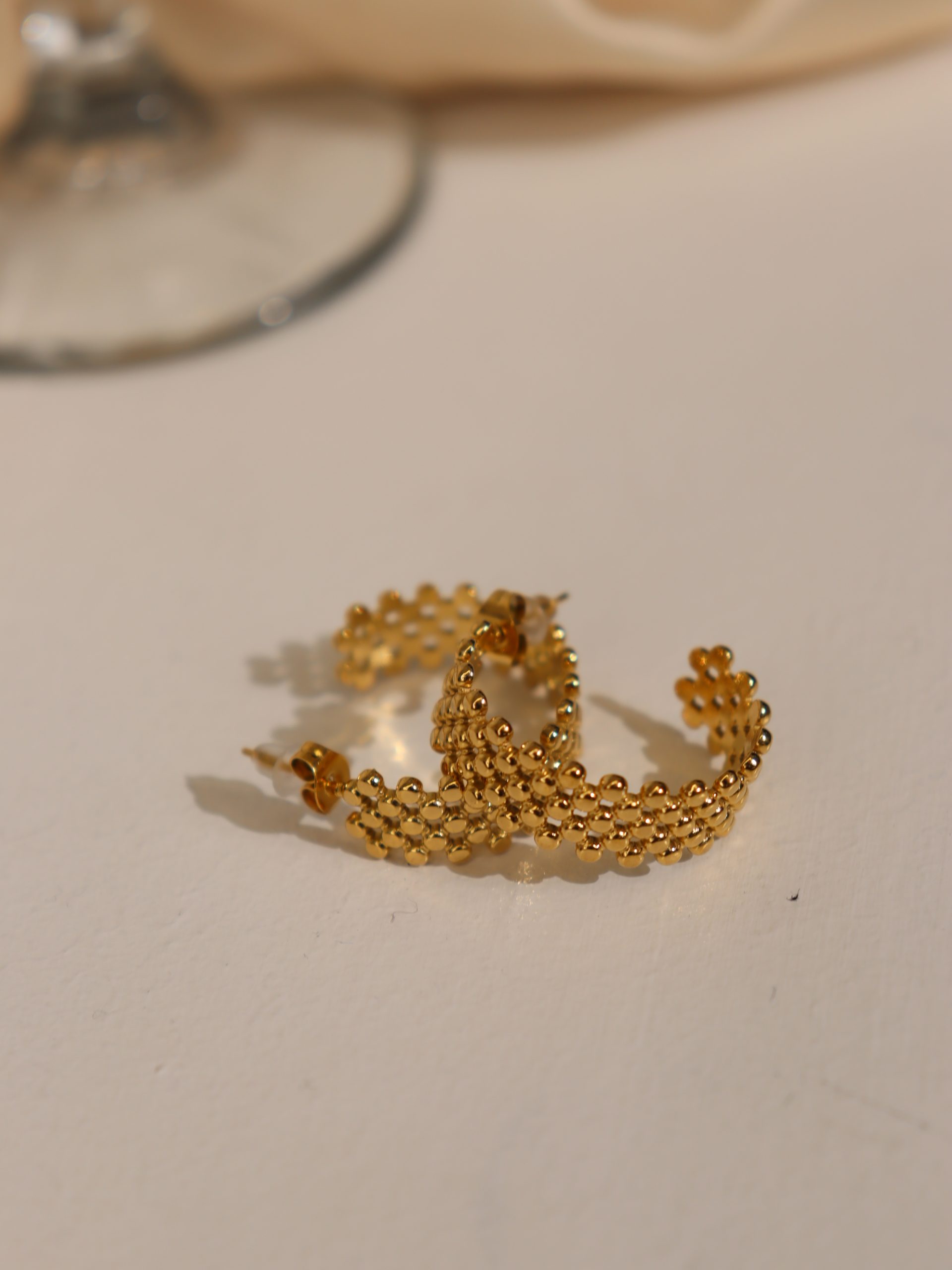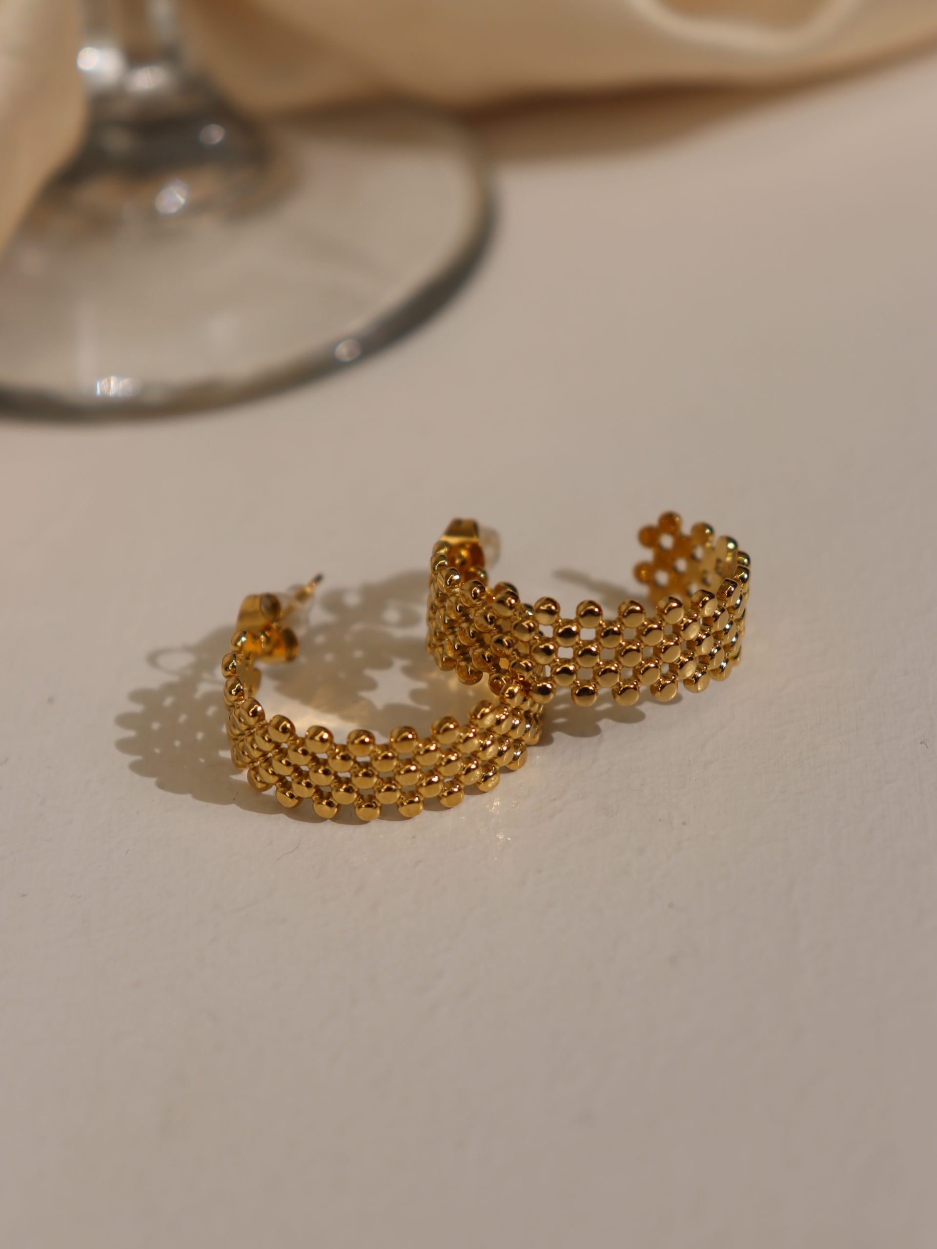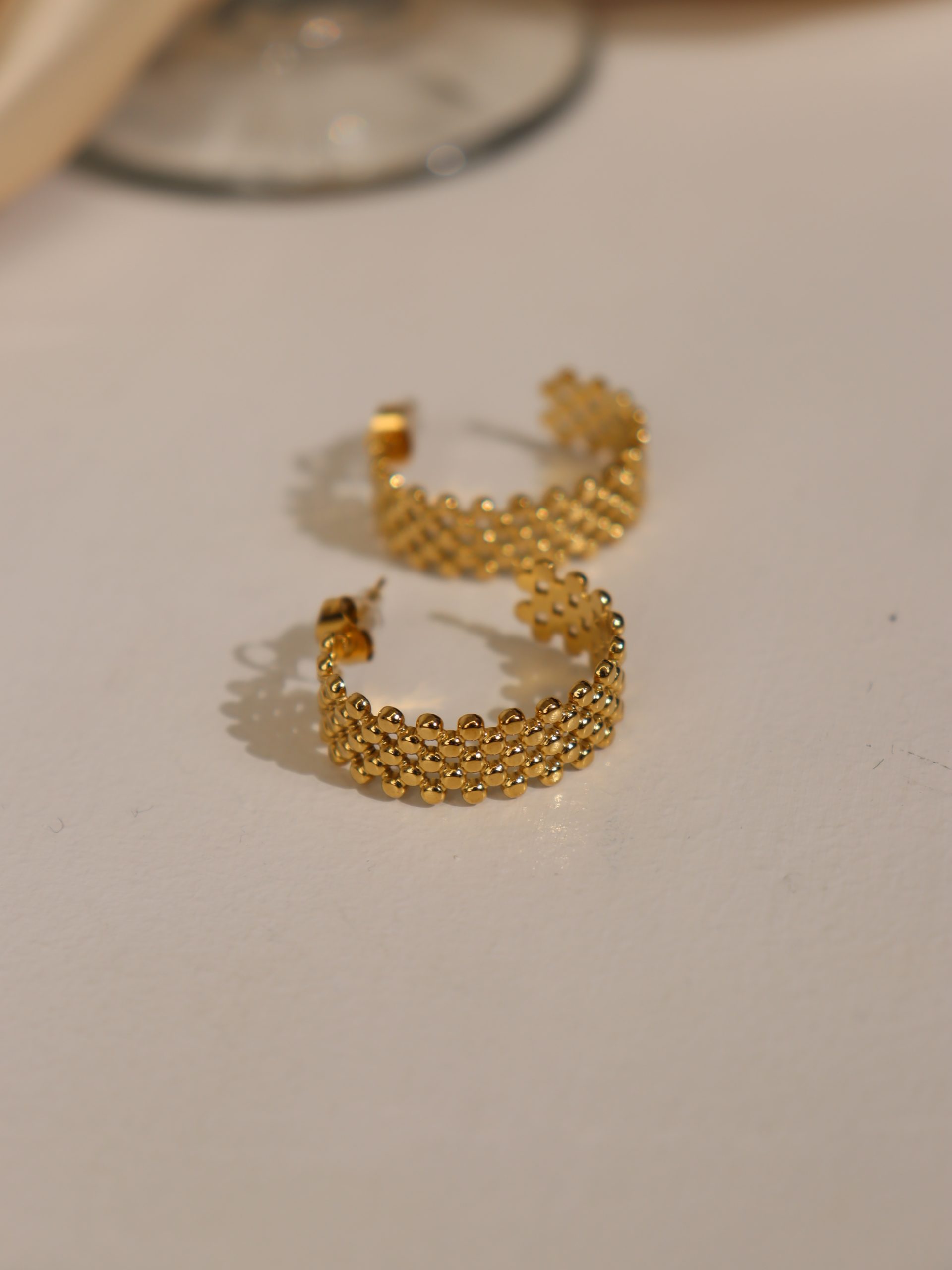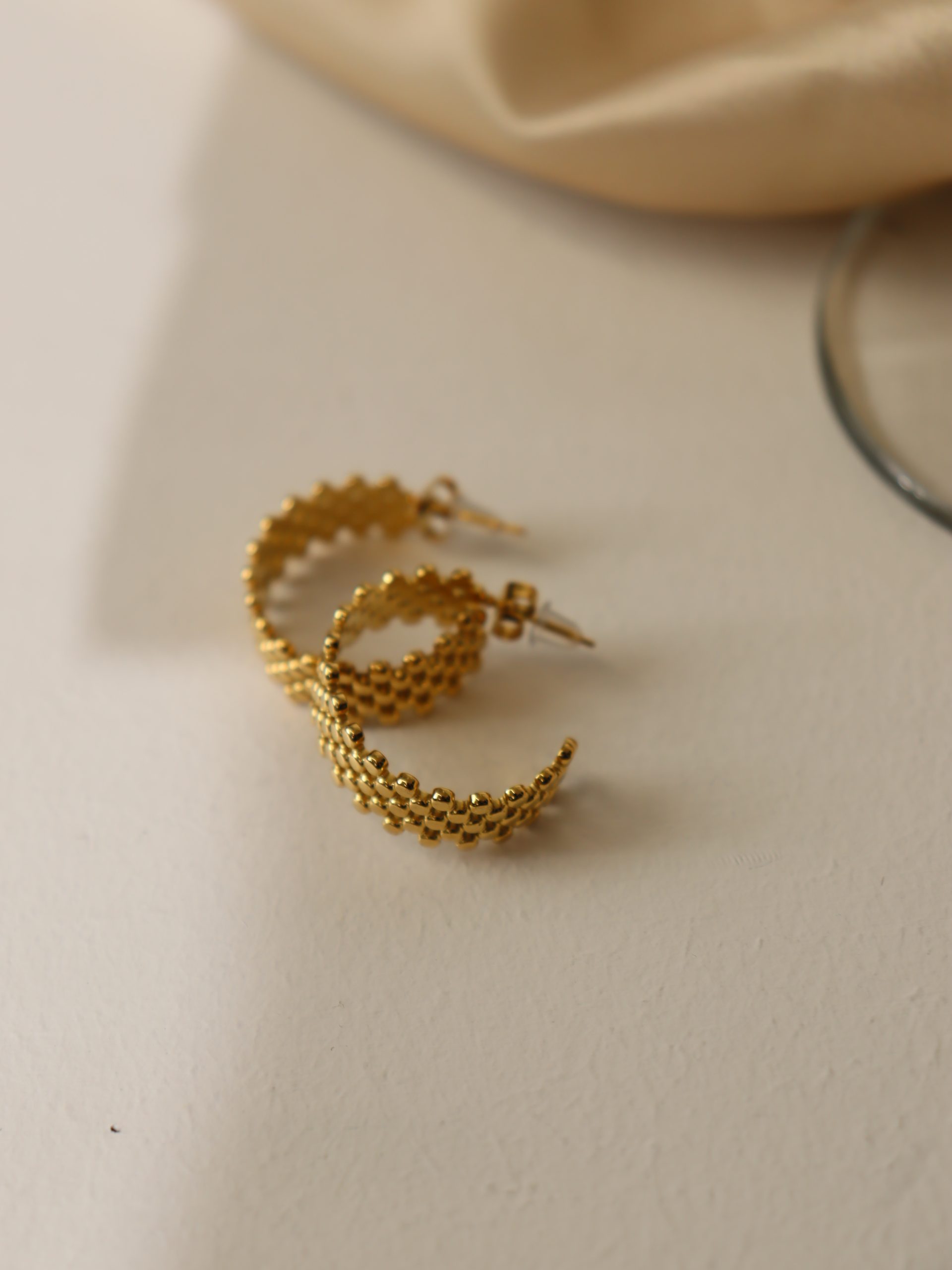 Zelta krāsas riņķu auskari ar izteiksmīgi dizainu.