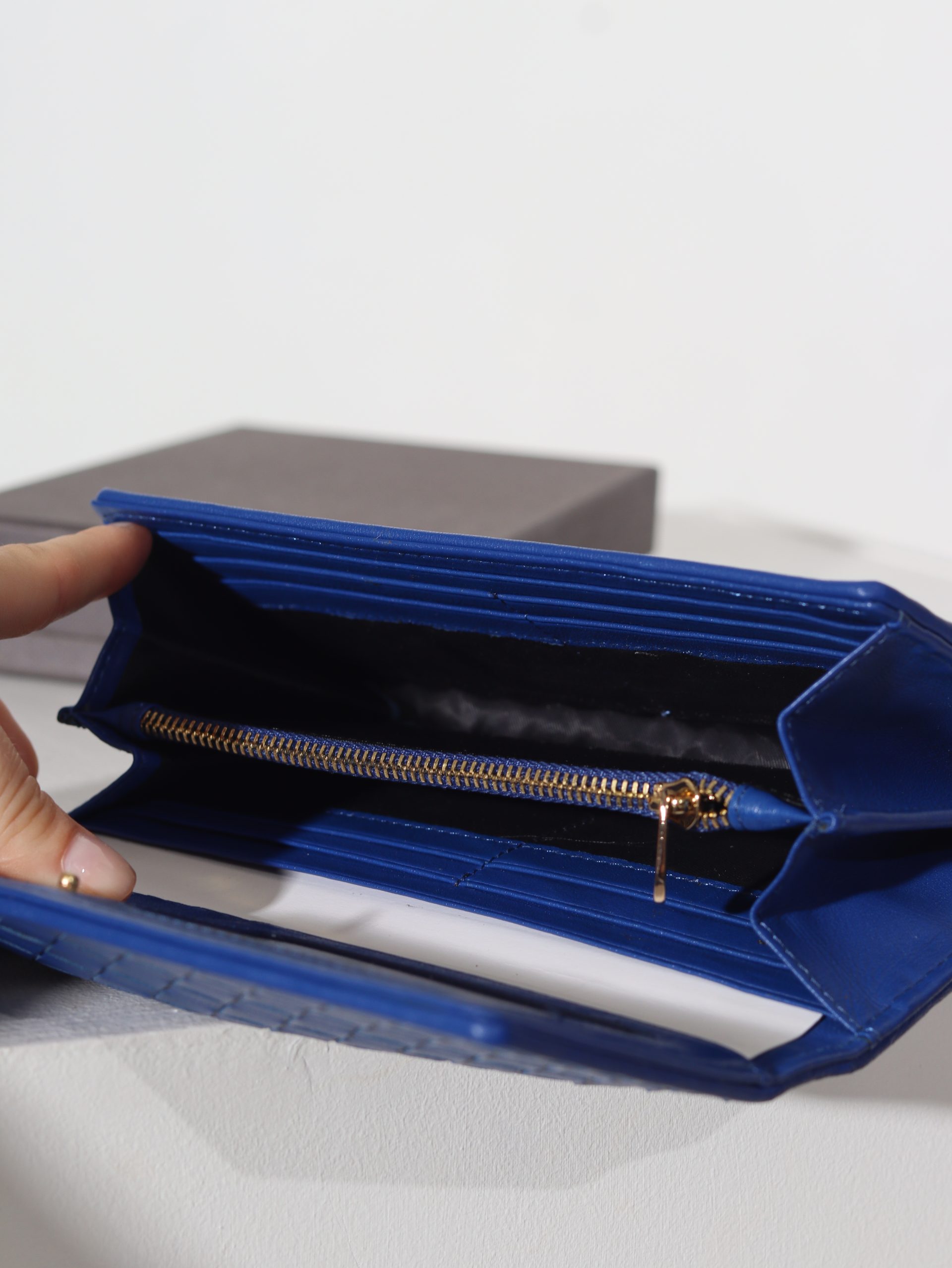 Iekšpusē ir trīs nodalījumi un viens ar rāvējslēdzēju aizverams nodalījums monētām. Sānos ir iestrādāti nodalījumi kartēm, kā arī iekšpusē ir viena caurspīdīgs nodalījums.
